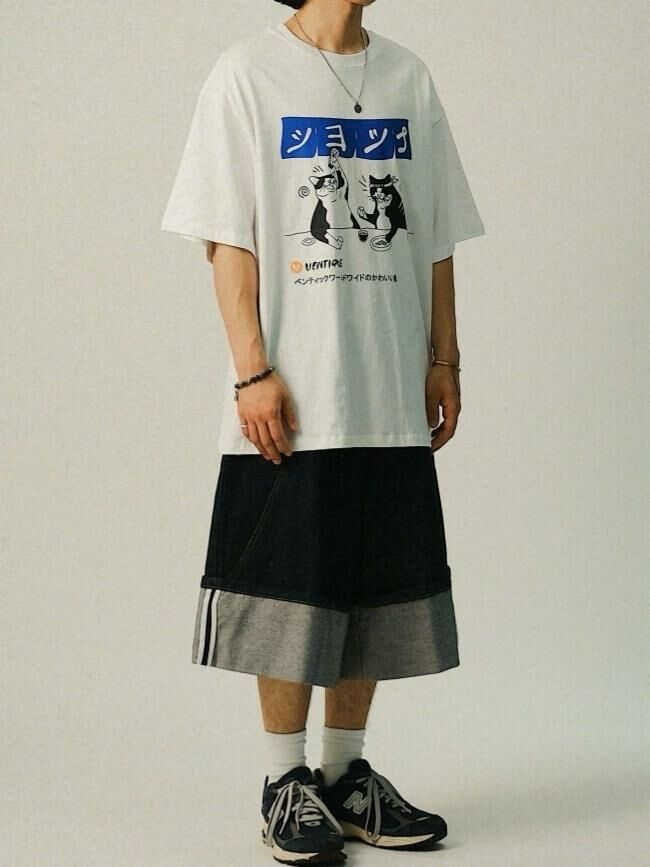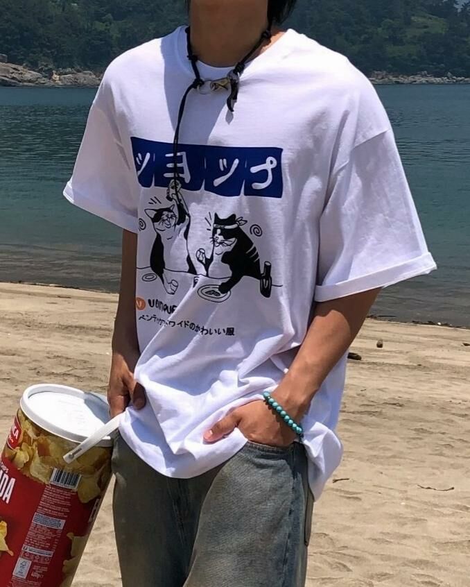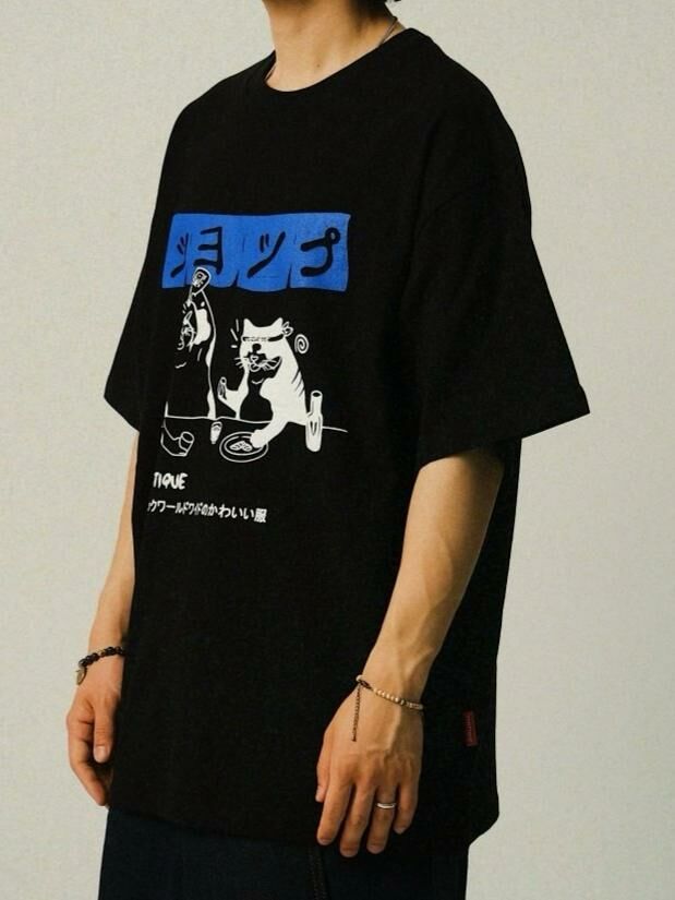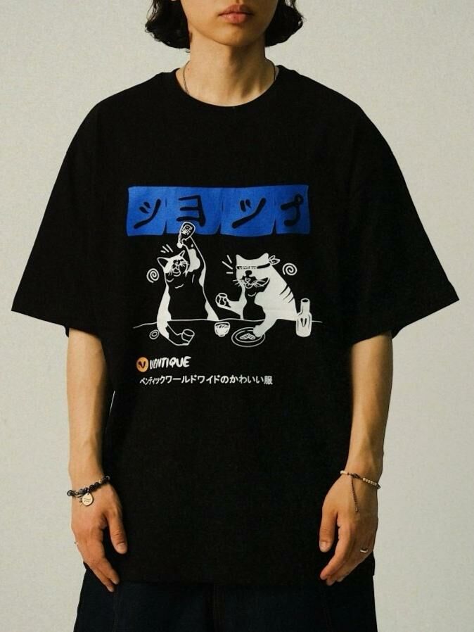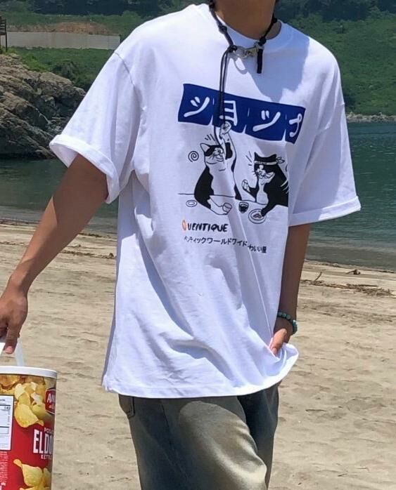 貓仔圖案英文字短袖Tee VENTIQUE-050T