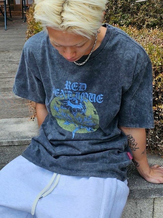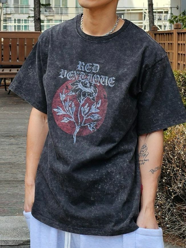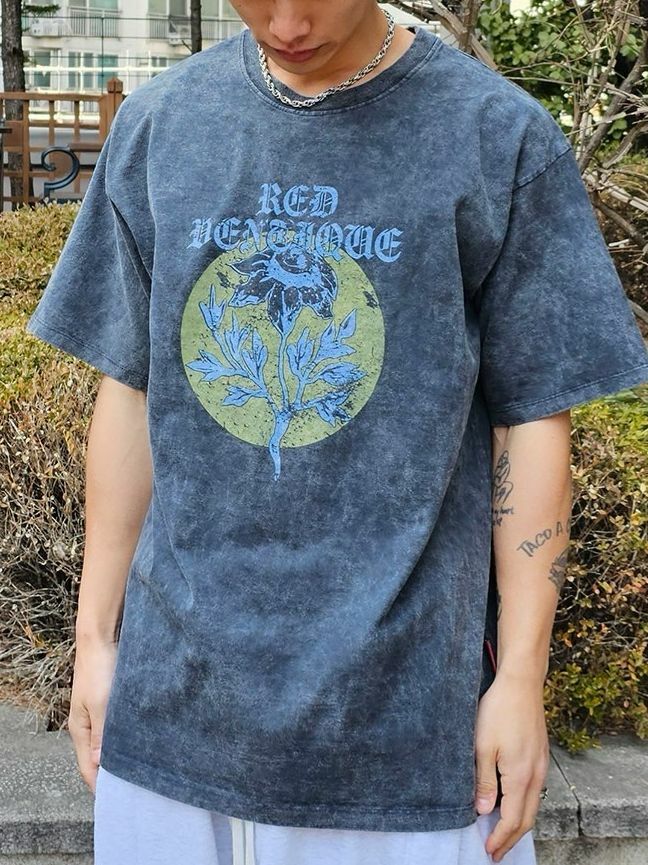 洗水英文字圖案短袖Tee VENTIQUE-055T