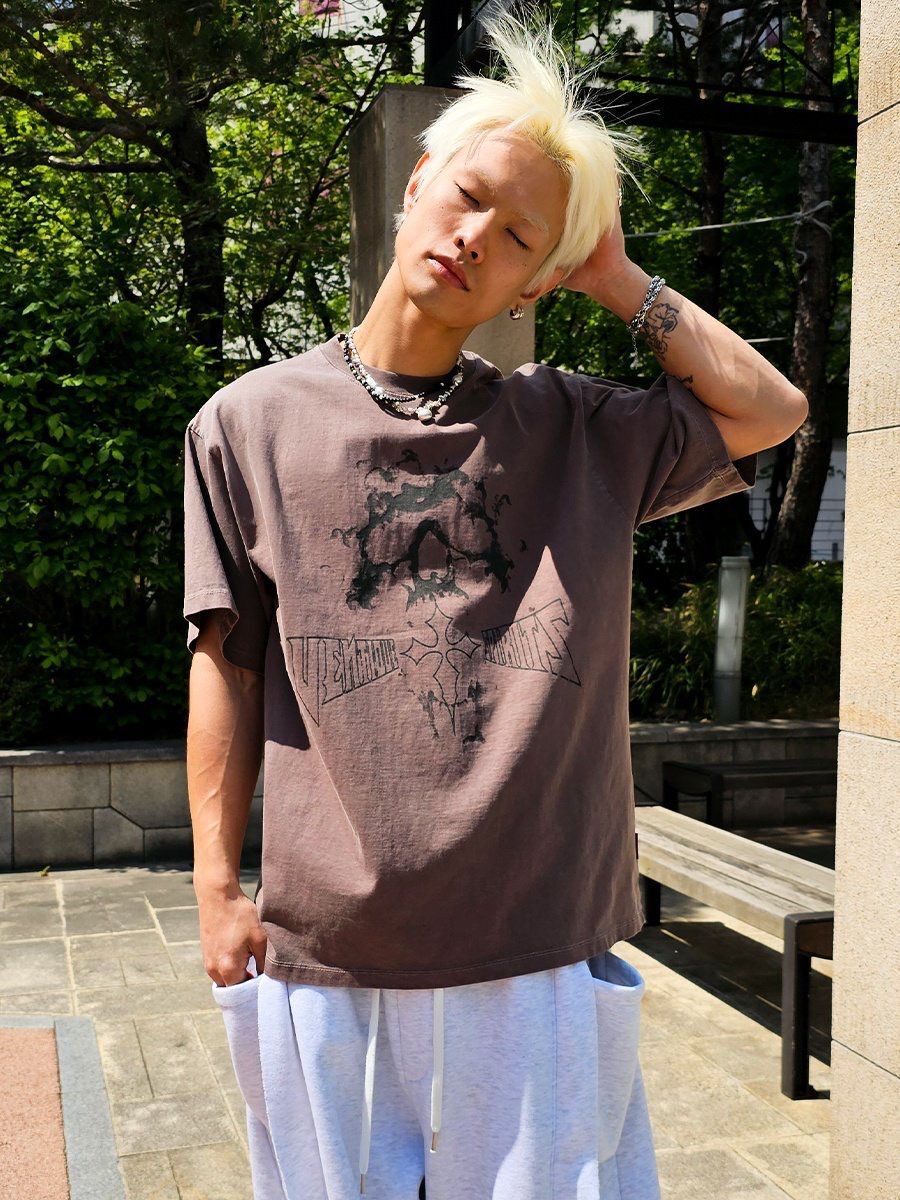 洗水英文字圖案短袖Tee VENTIQUE-057T