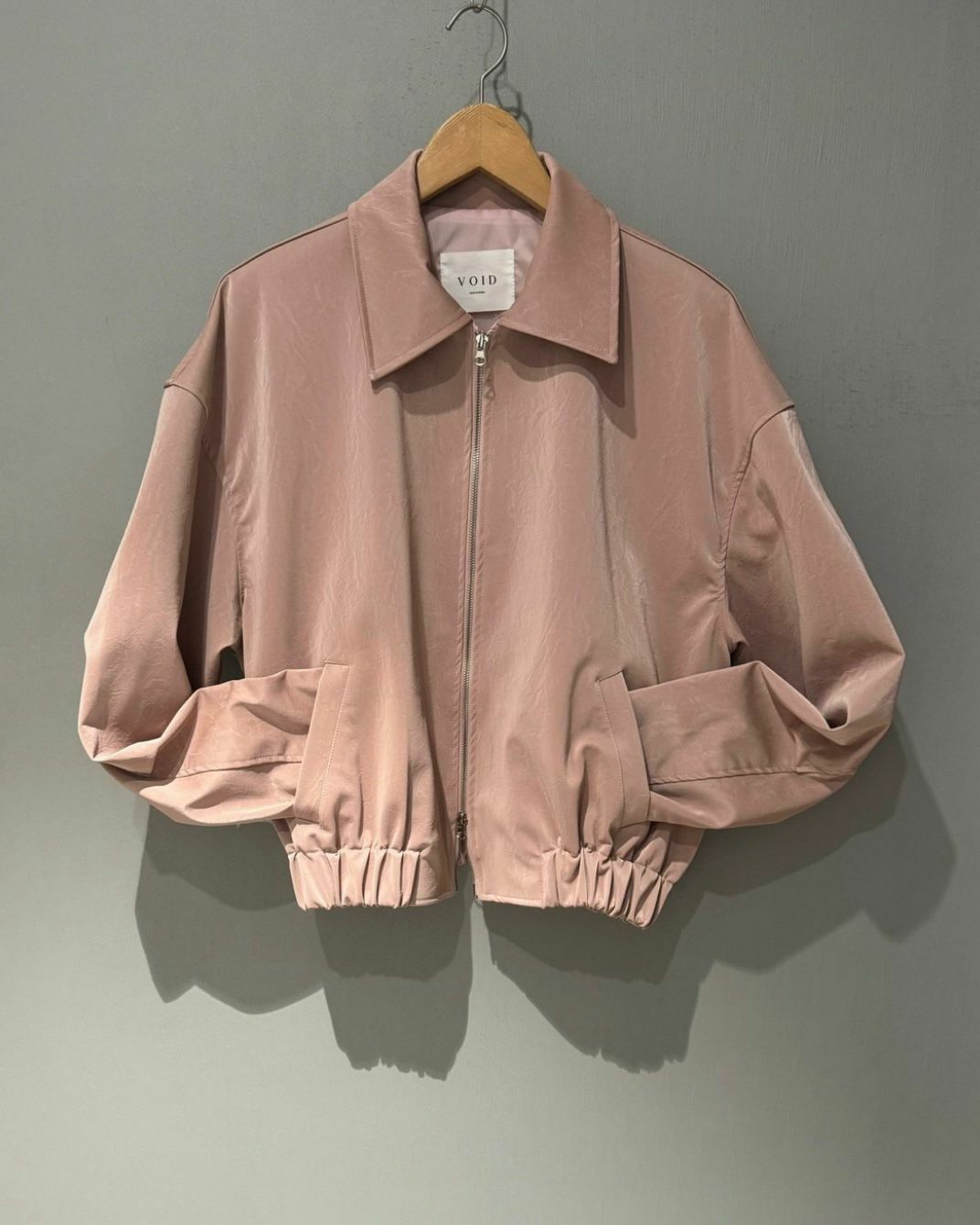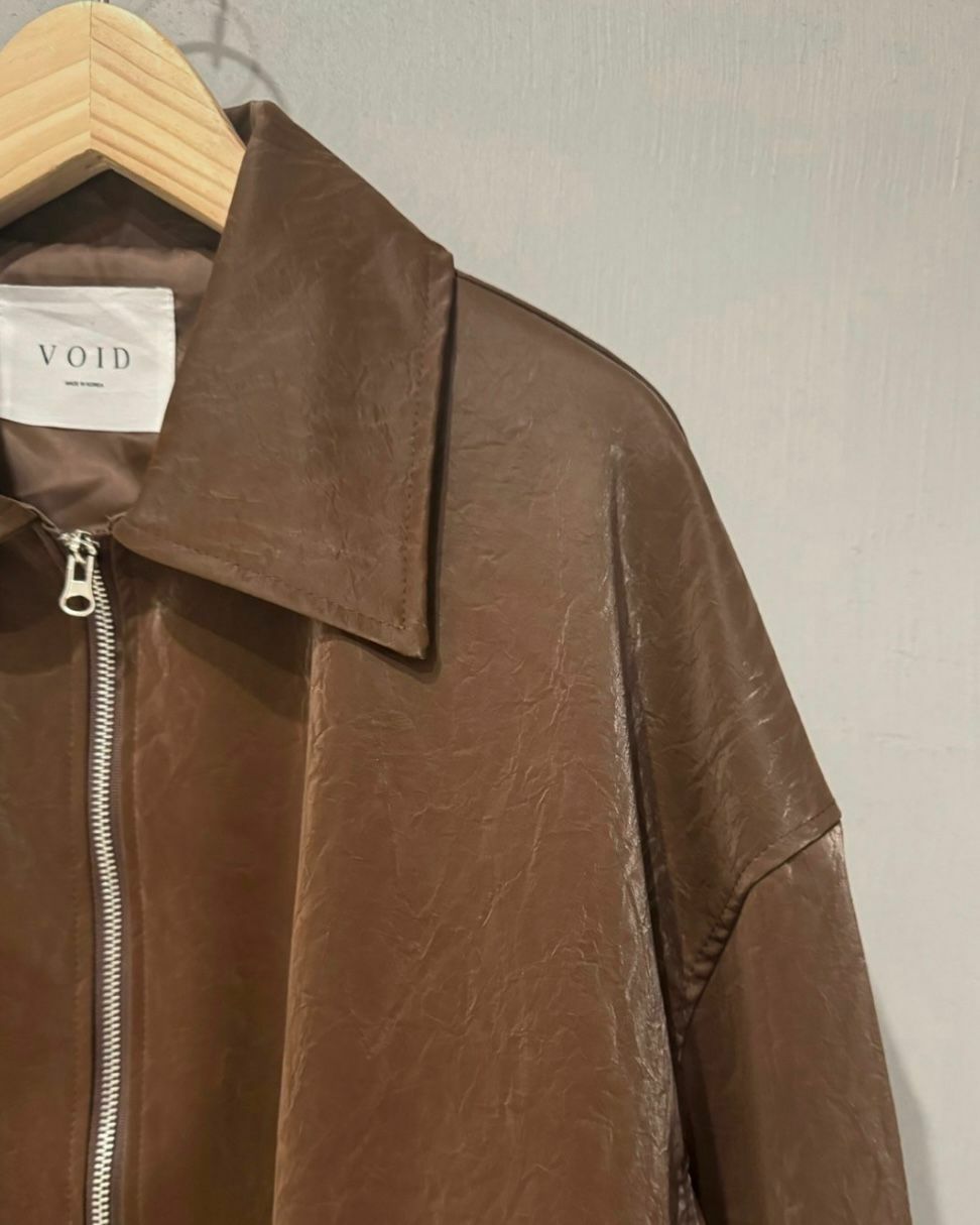 反領拉鍊合成皮褸 VOID-013JK