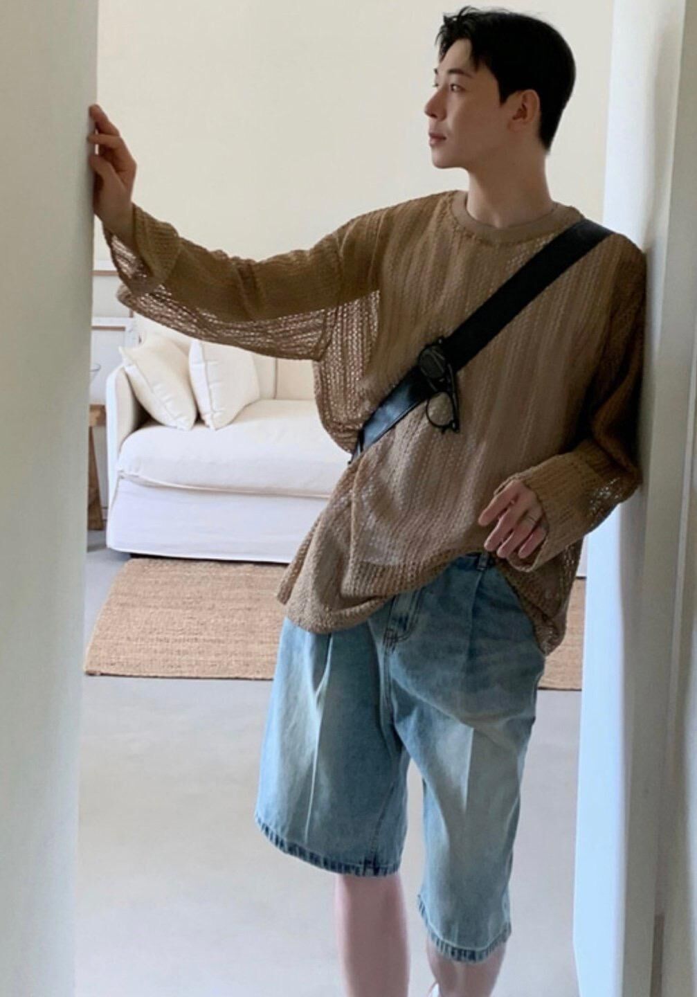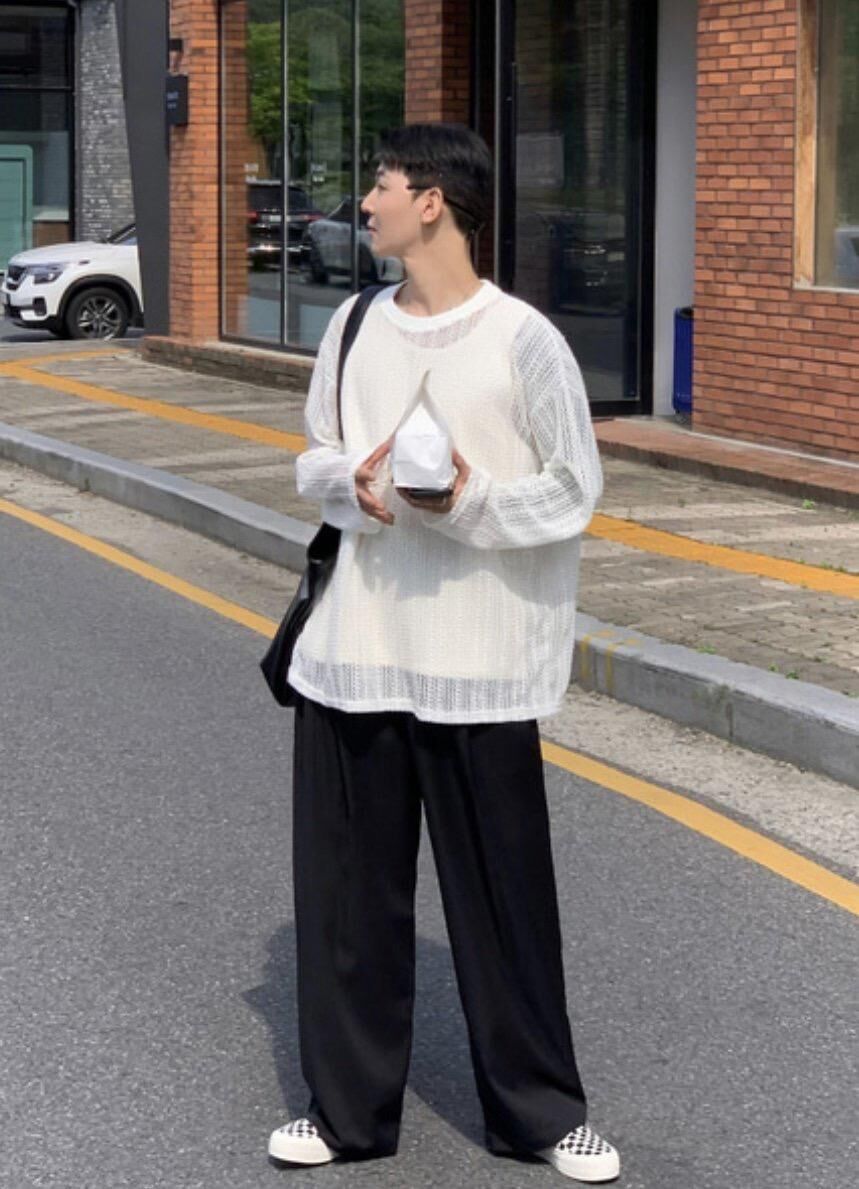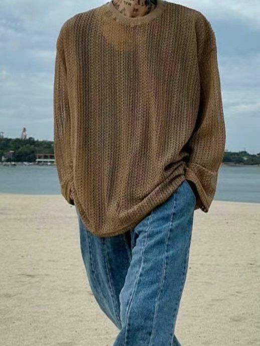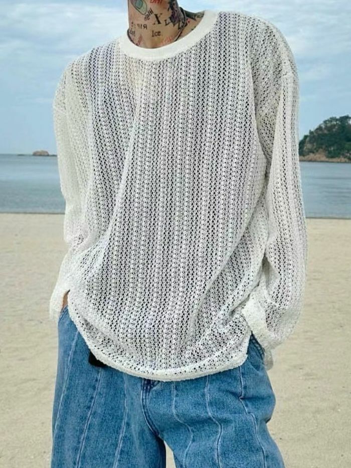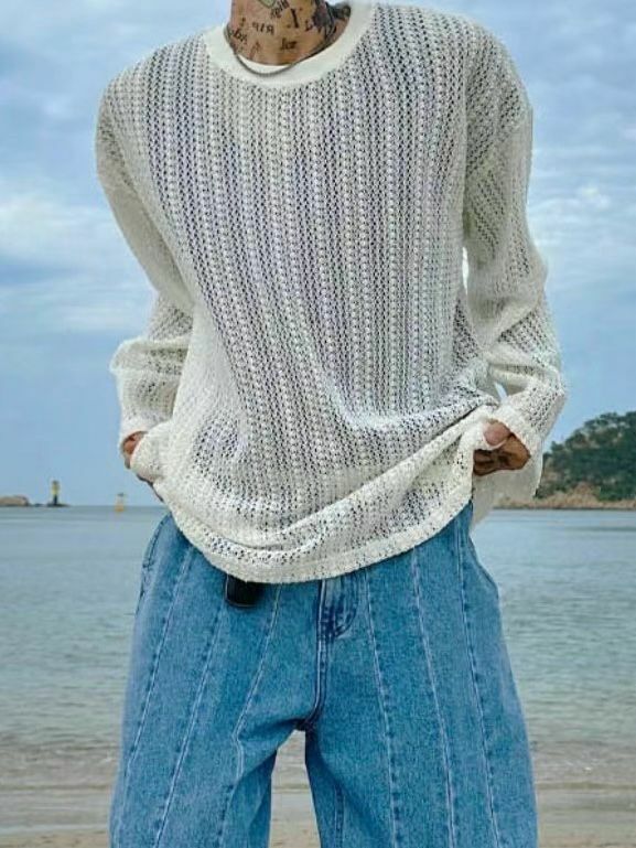 淨色網紋長袖衫 VOID-036T