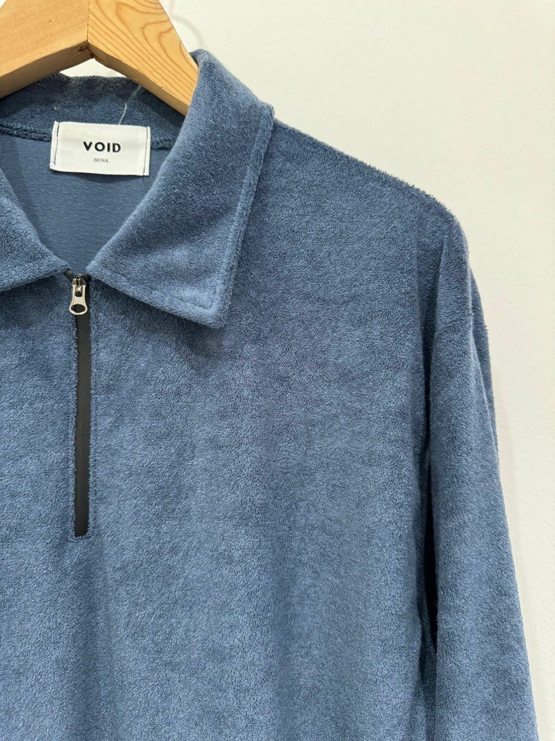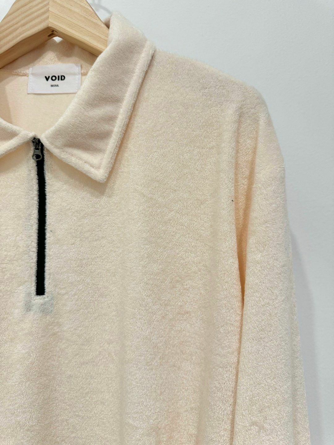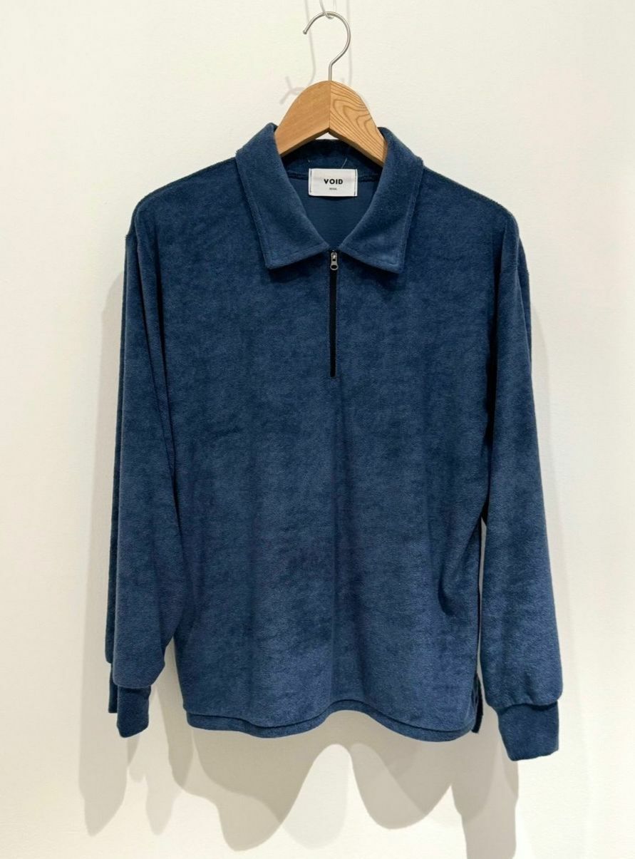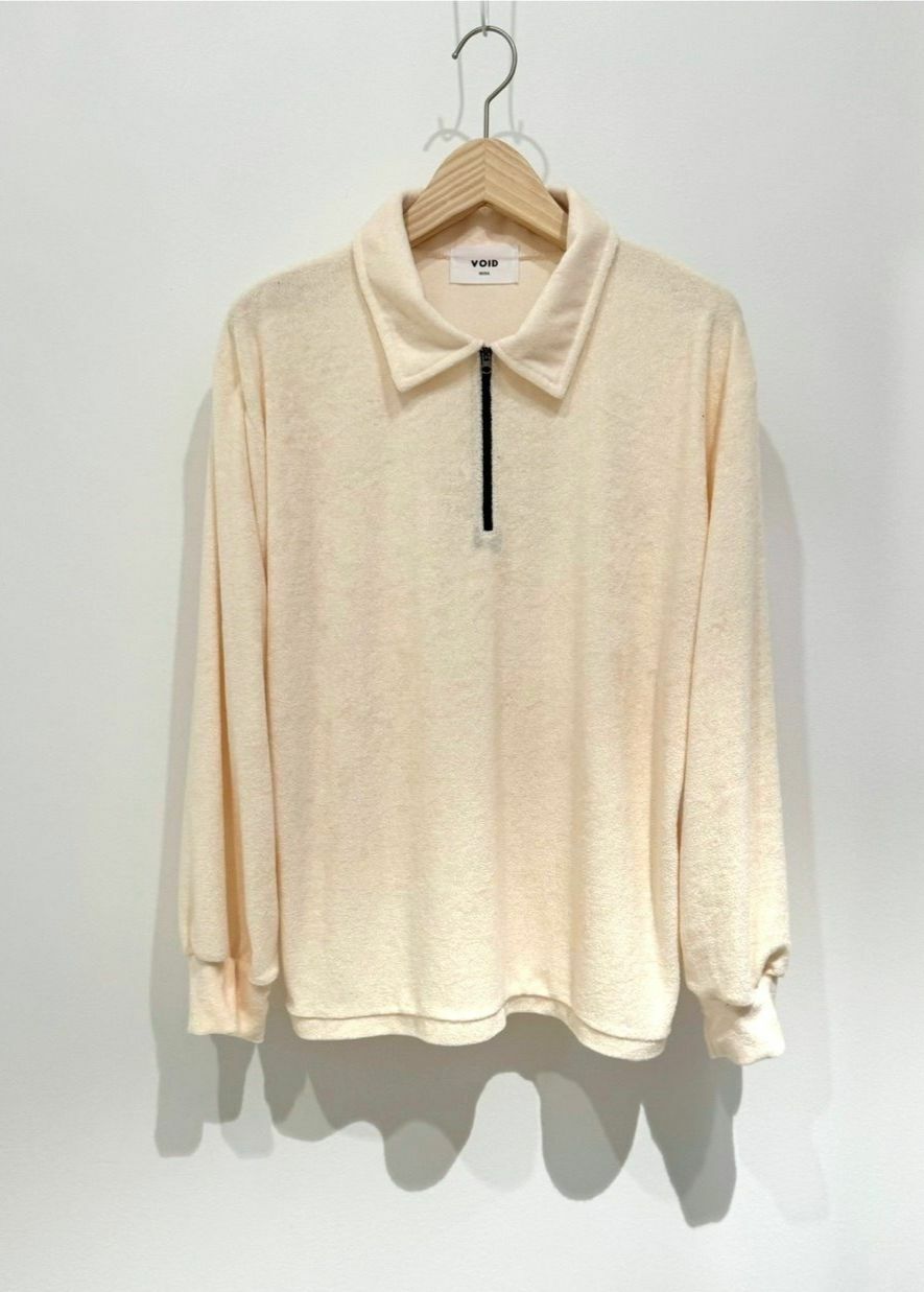 淨色反領拉鍊毛巾質地長袖衫 VOID-043T