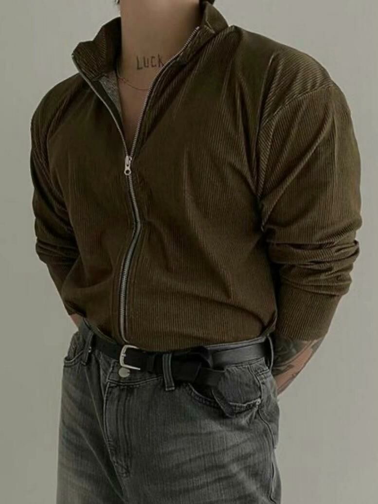 企領暗直紋連帽拉鍊外套 VOID-046JK