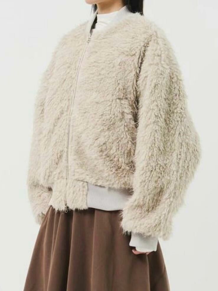 淨色拉鍊毛毛外套 VOID-074JK