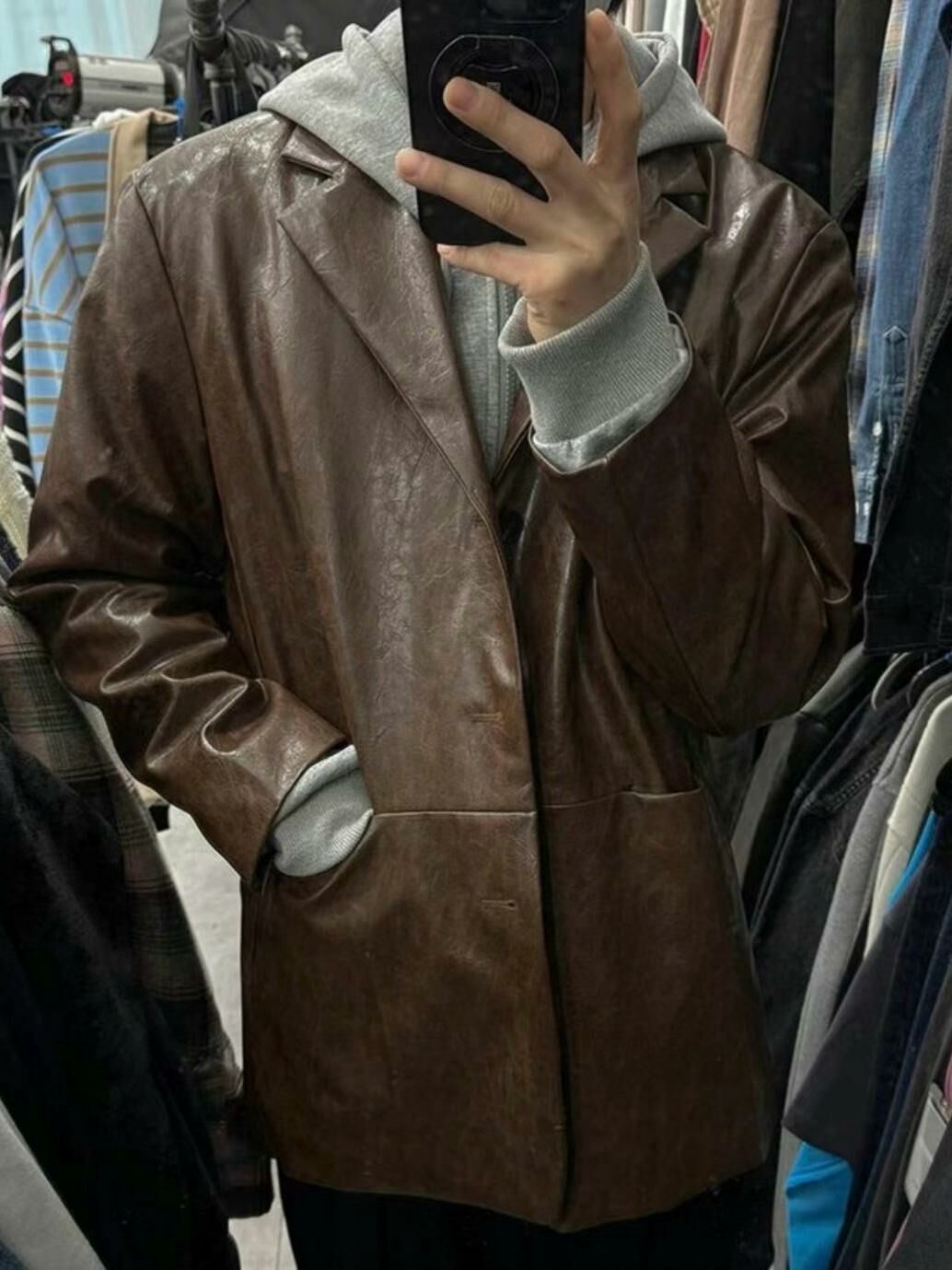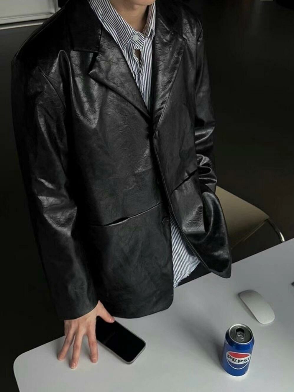 淨色合成皮西裝褸 VOID-093JK