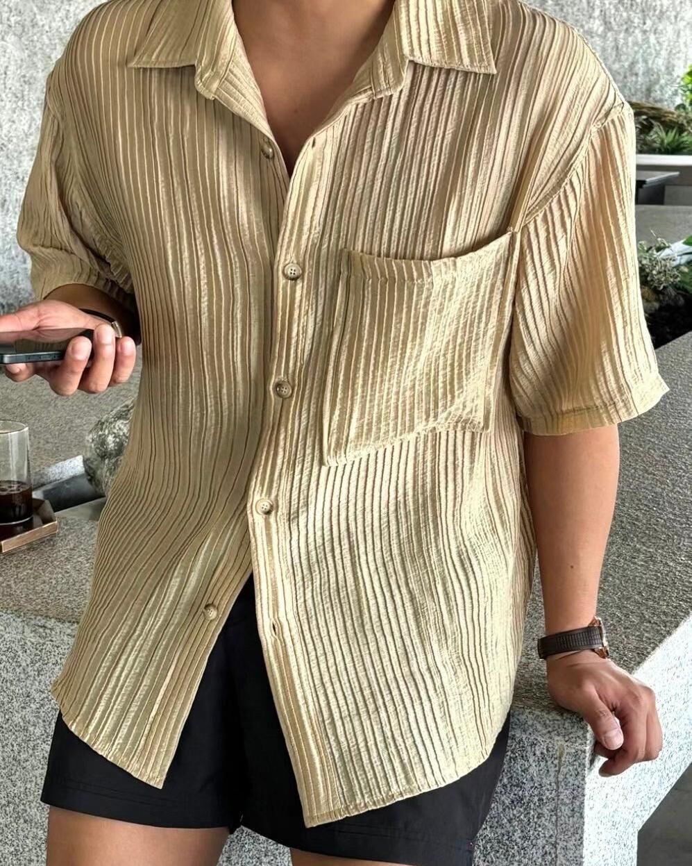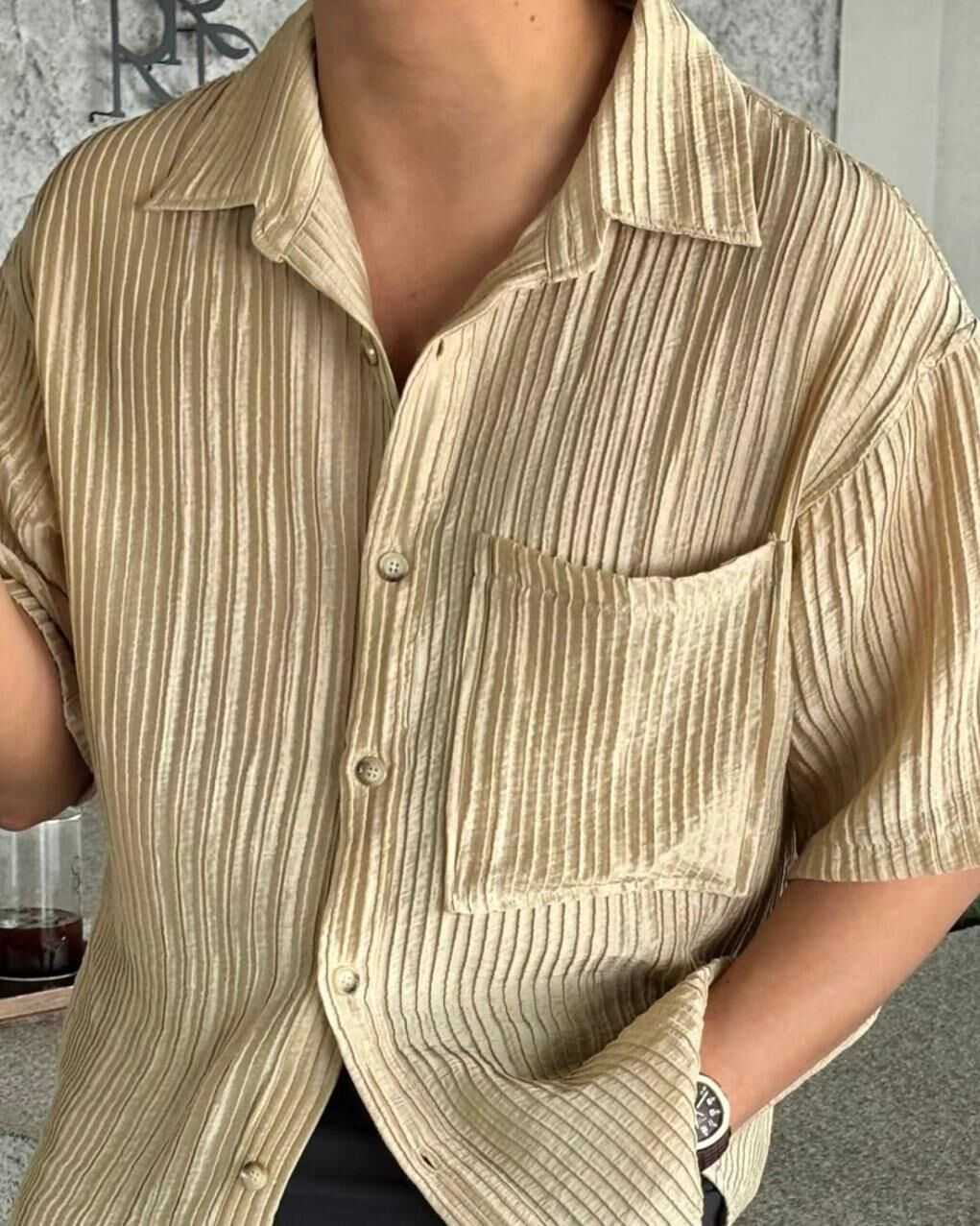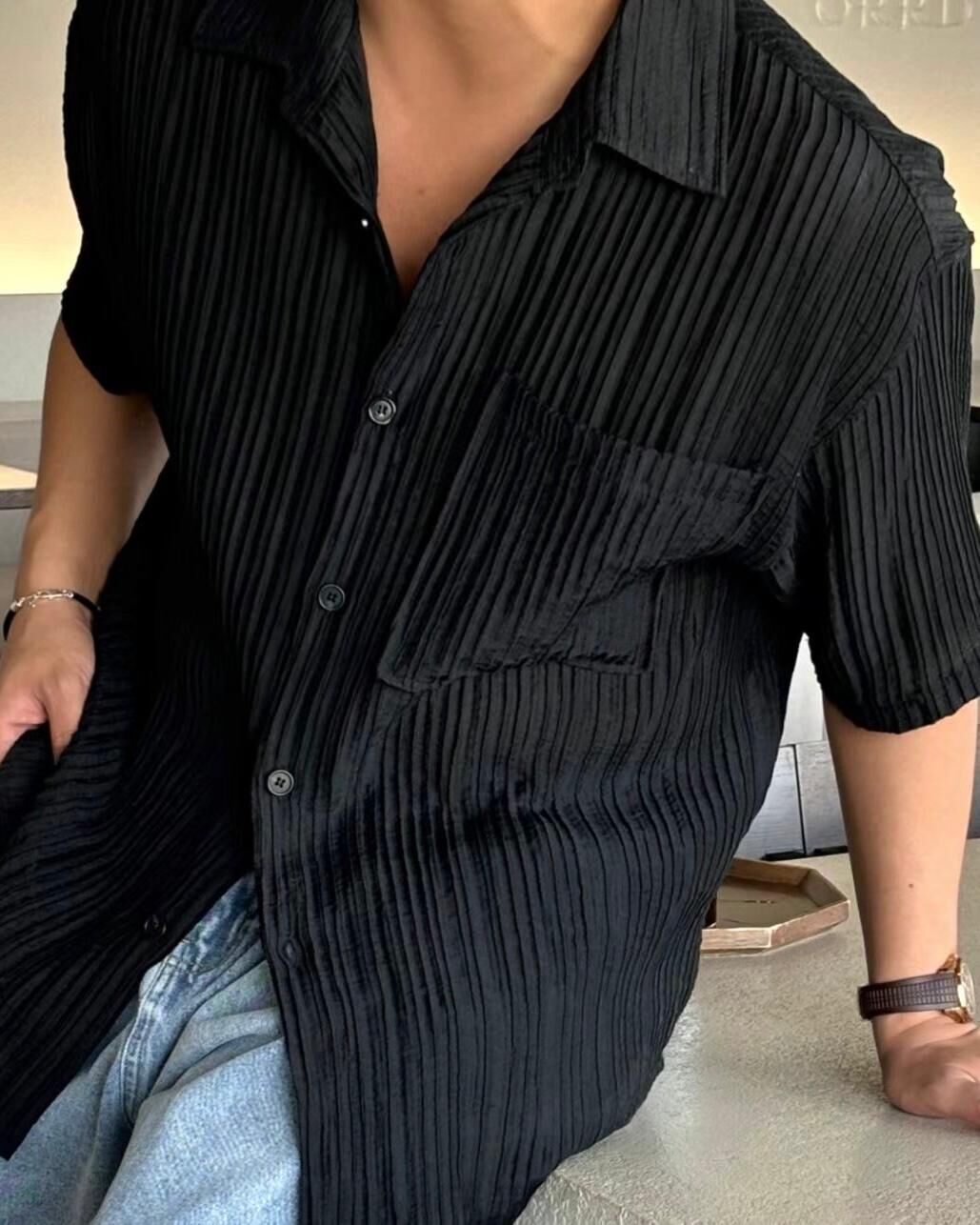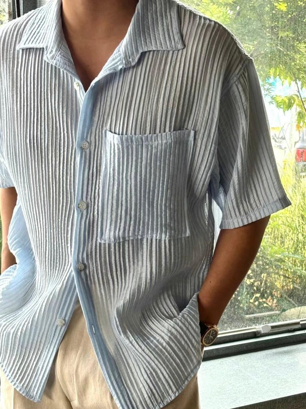 淨色直紋短袖恤衫 VOID-105S