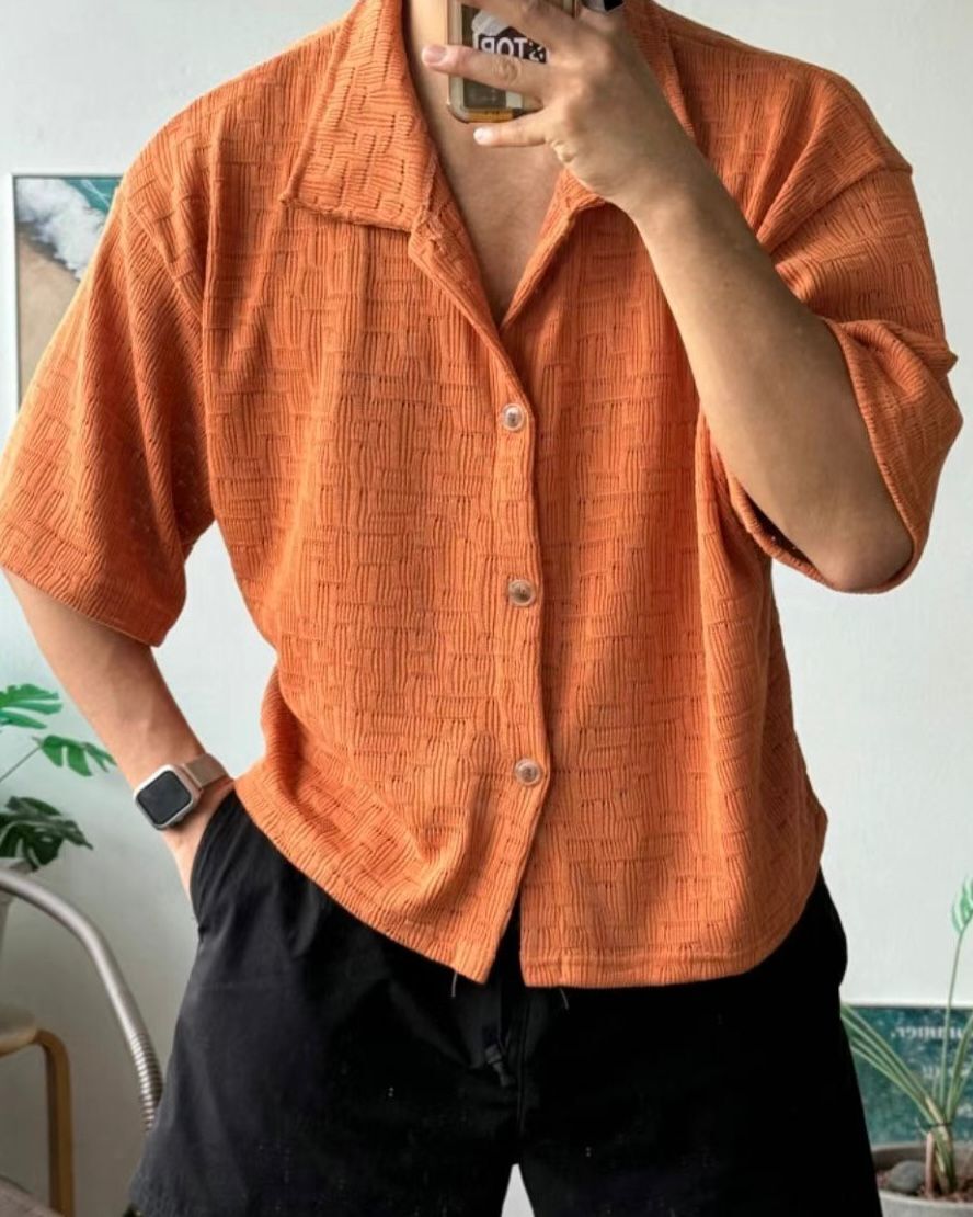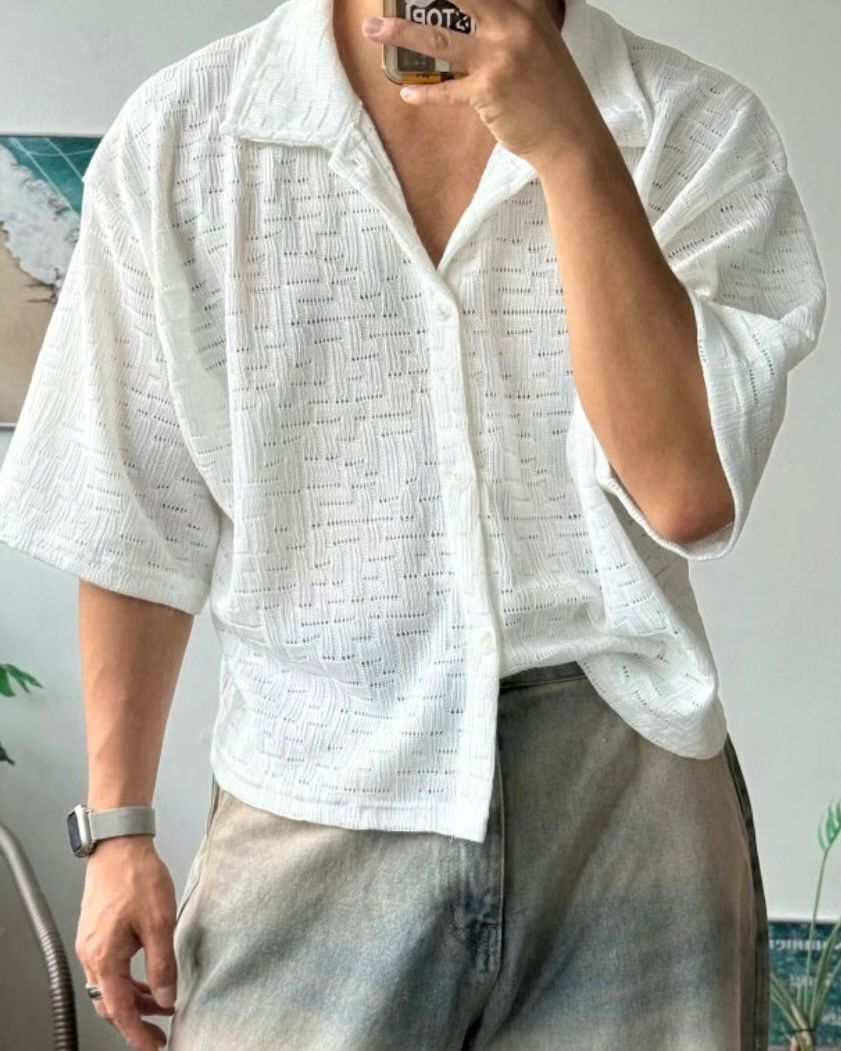 淨色格紋短袖恤衫 VOID-108S