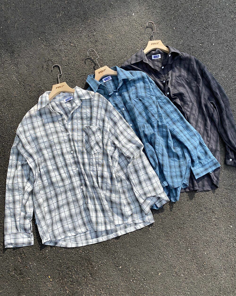 格仔長袖恤衫 VOLT-059S