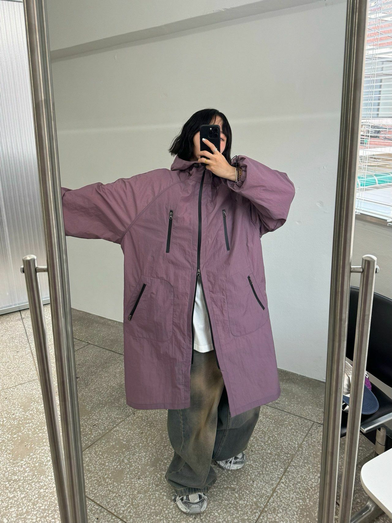 淨色連帽拉鍊長褸 Votus-042JK