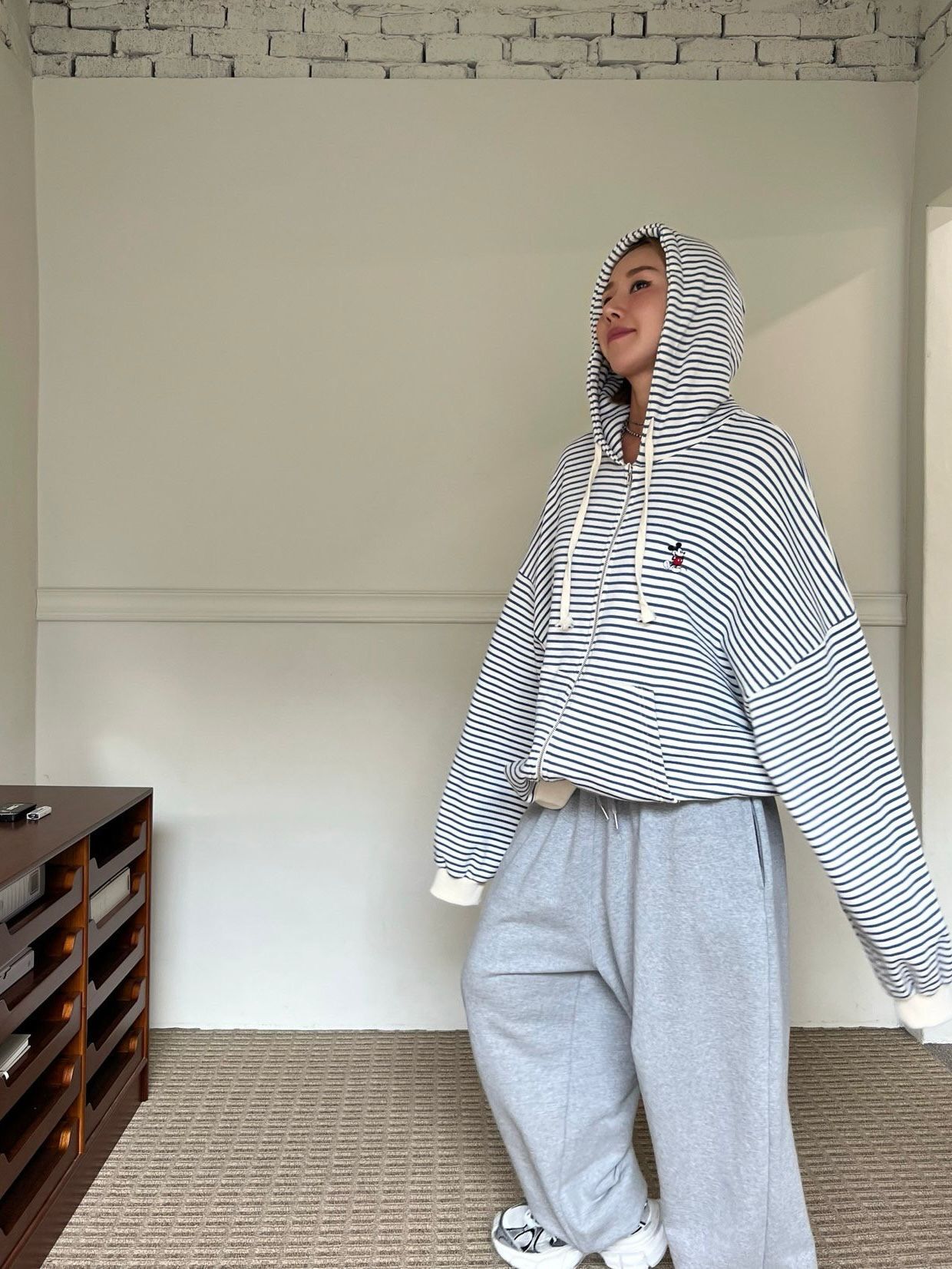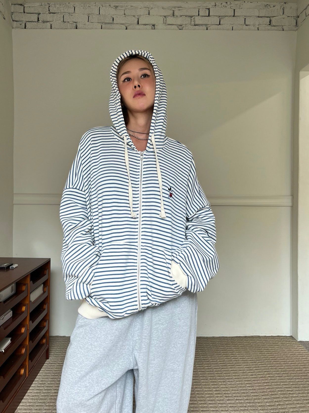橫間卡通連帽拉鍊針織外套 Votus-159JK