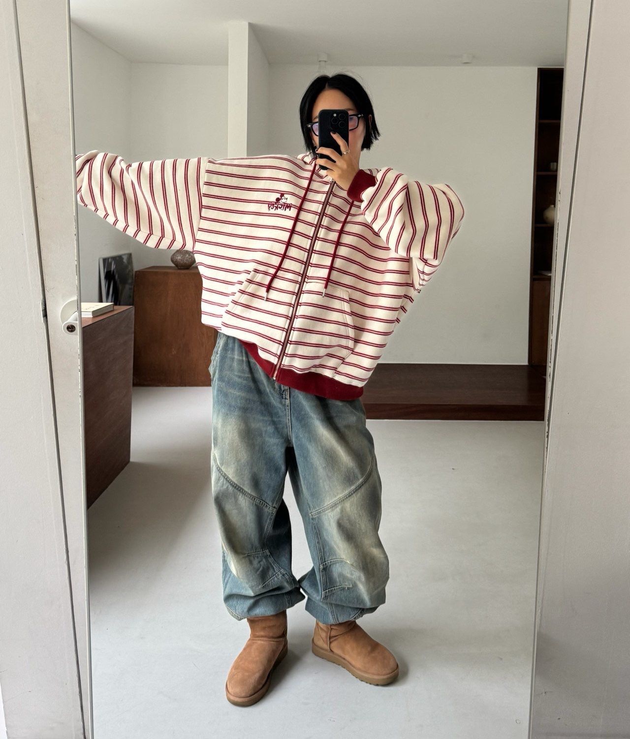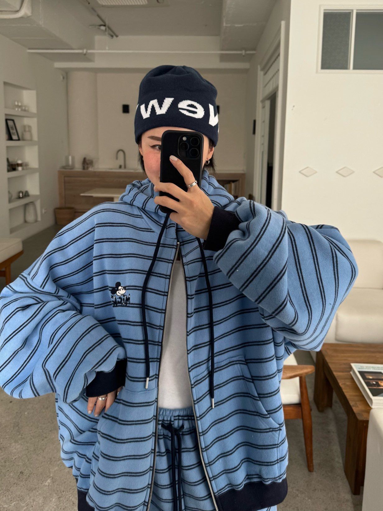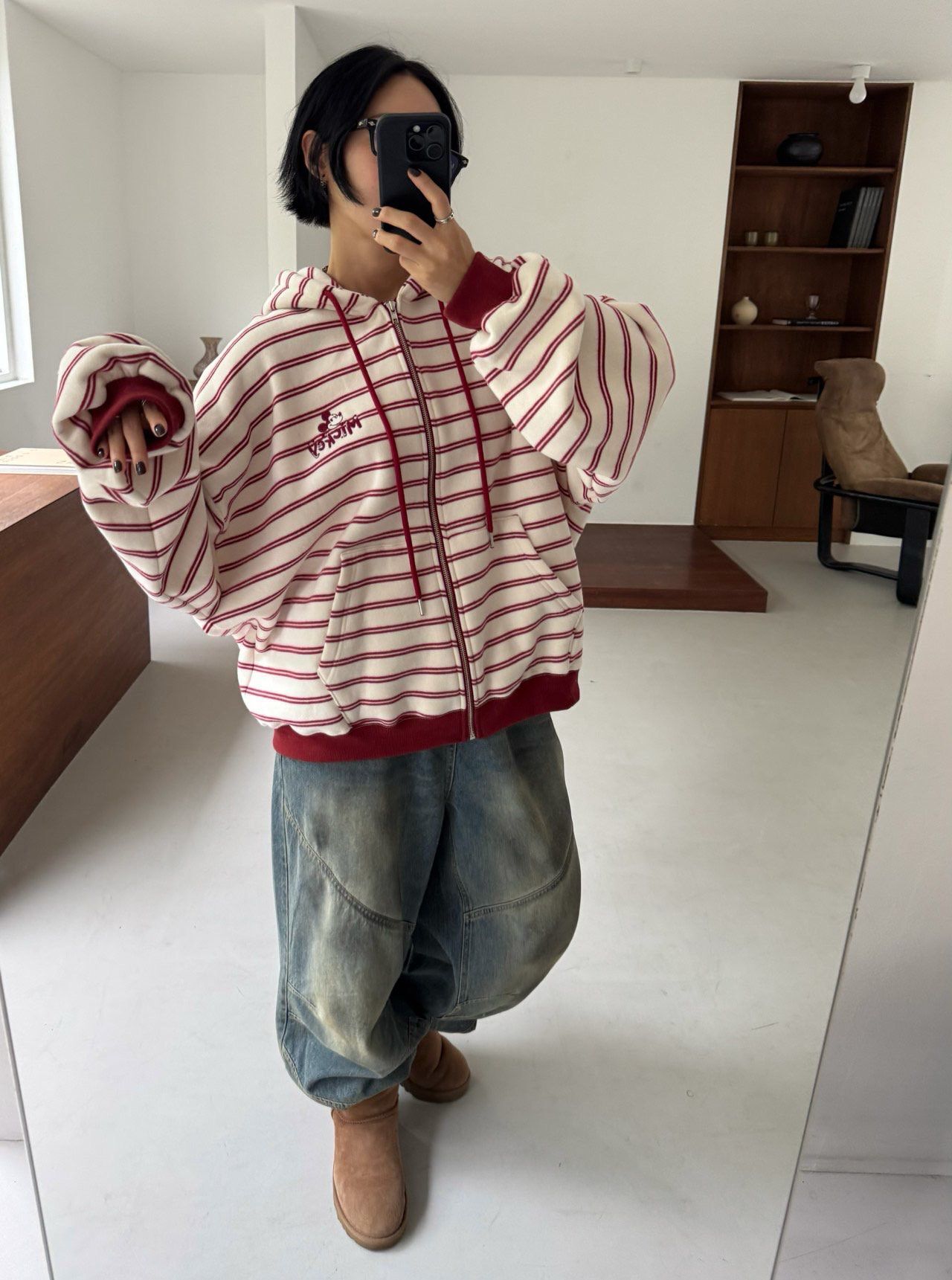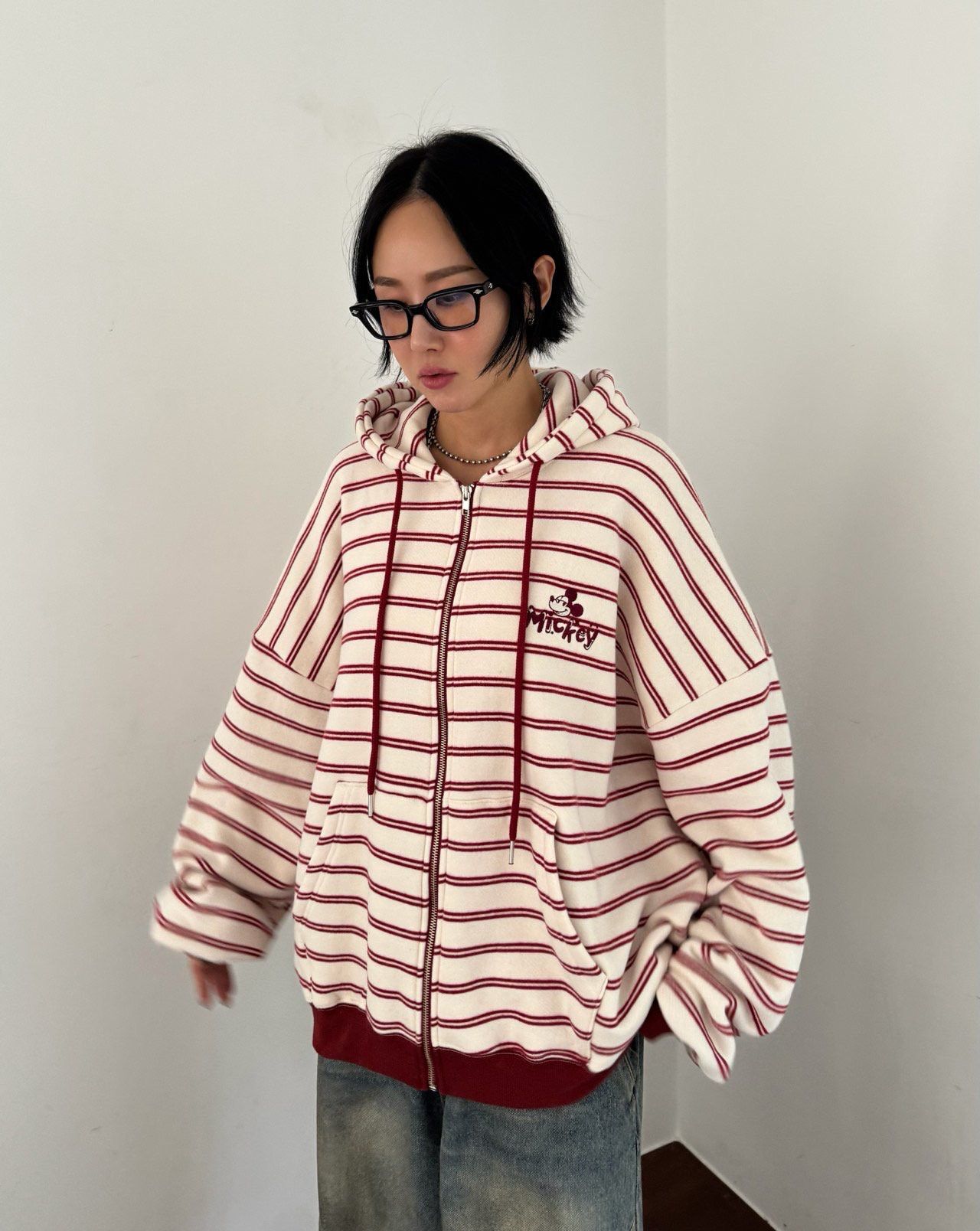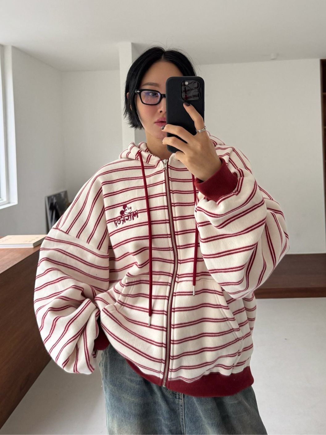 橫間卡通連帽拉鍊外套(薄抓毛底) Votus-185JK