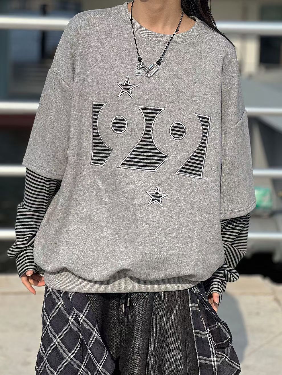 數字假兩件衛衣 Weather-001T