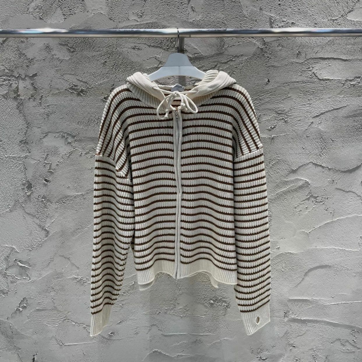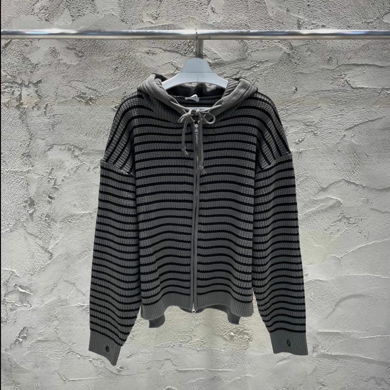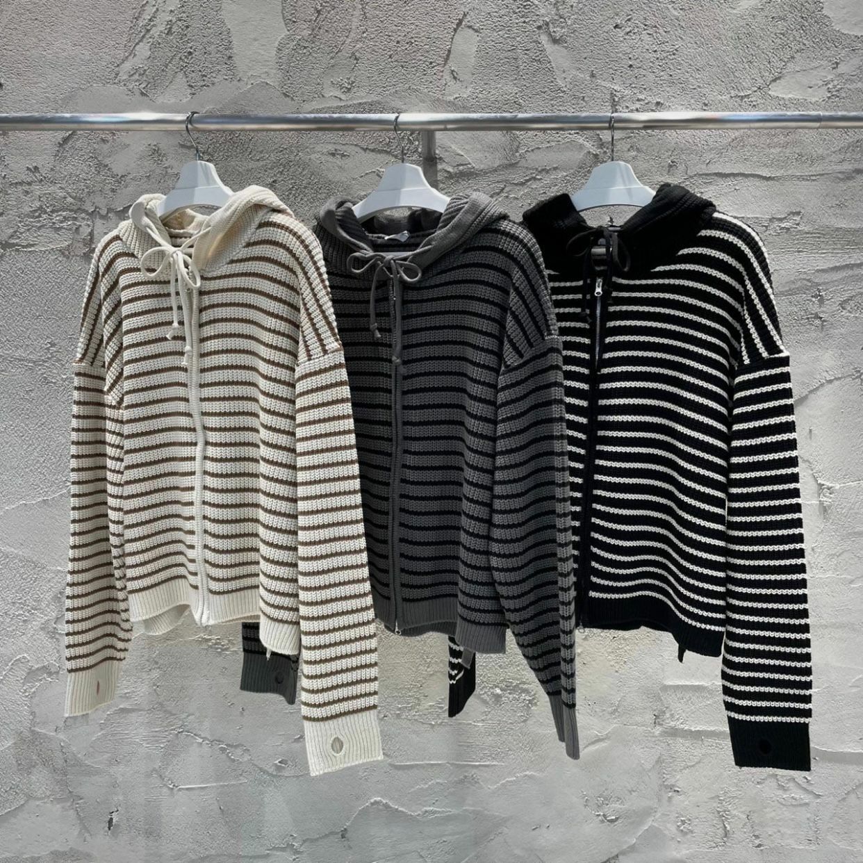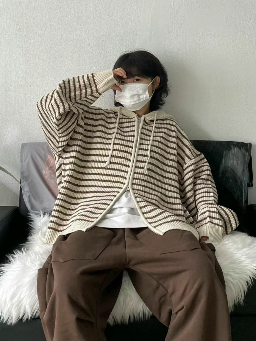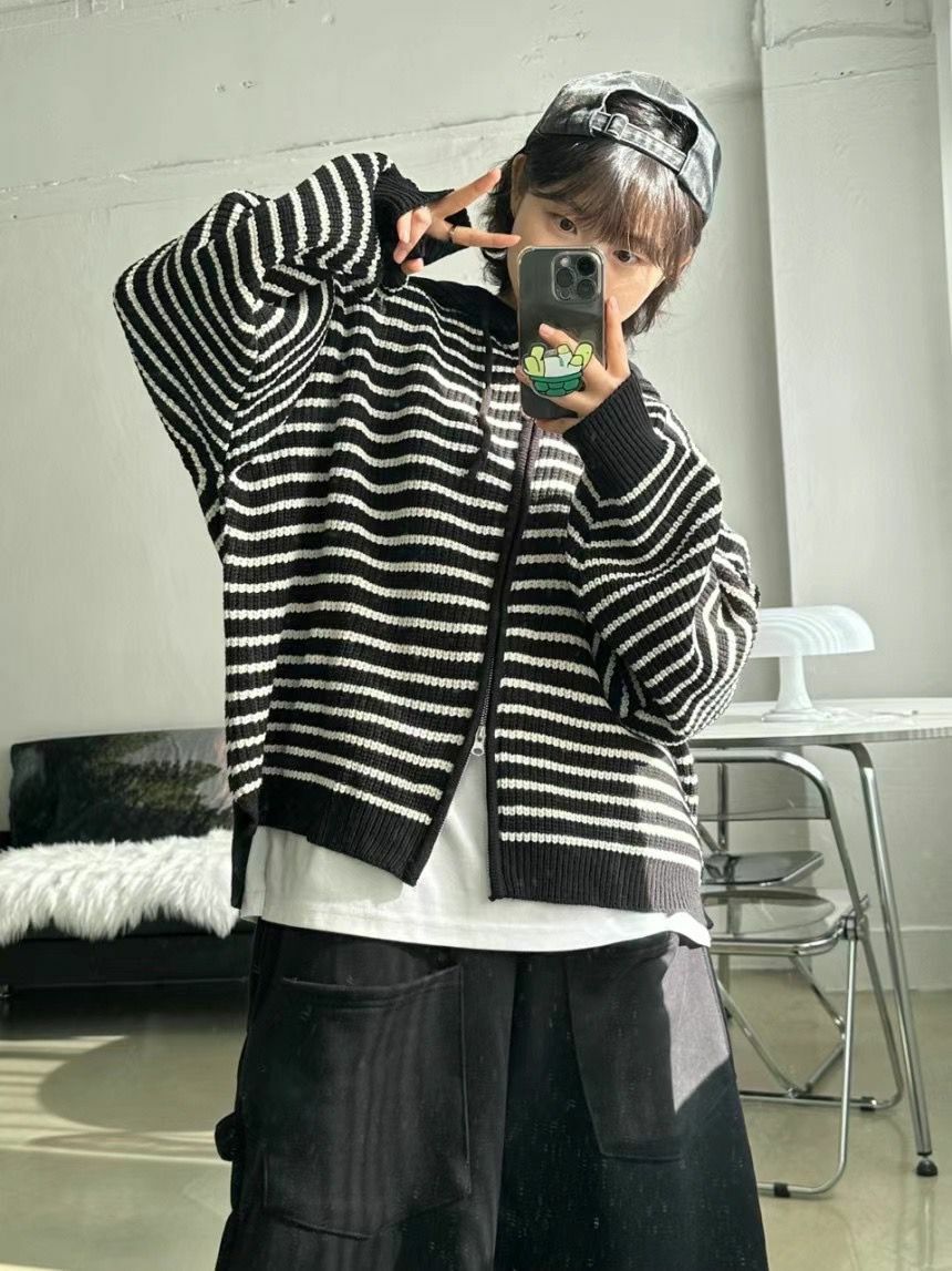 橫紋連帽拉鍊針織外套 WEEKEND-017JK