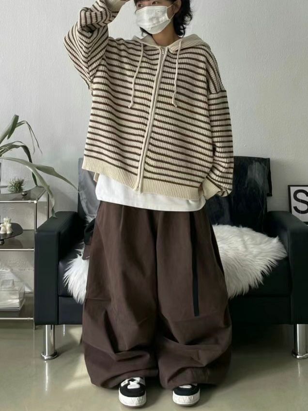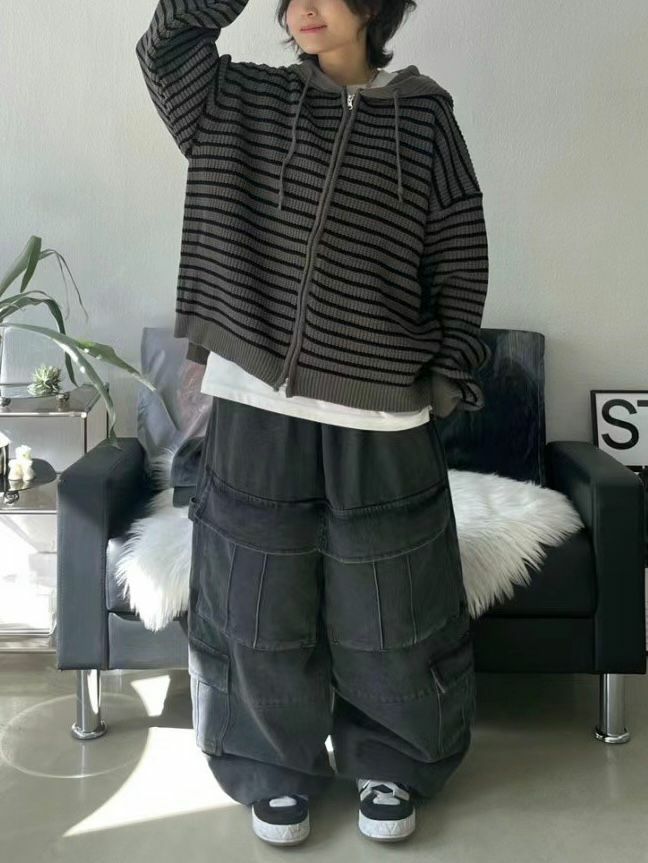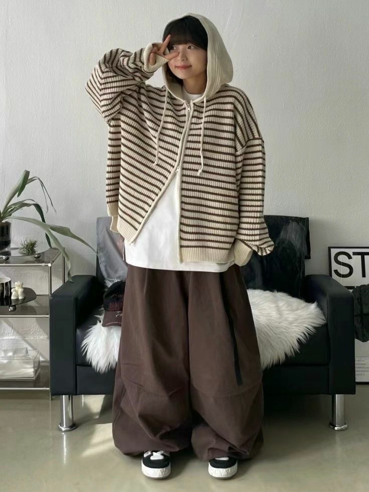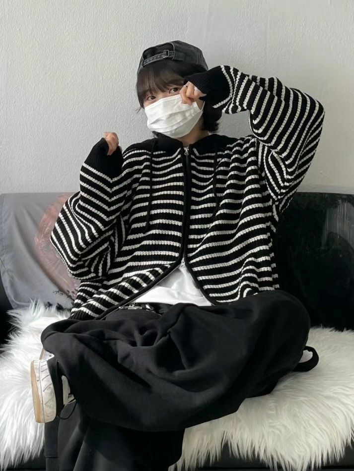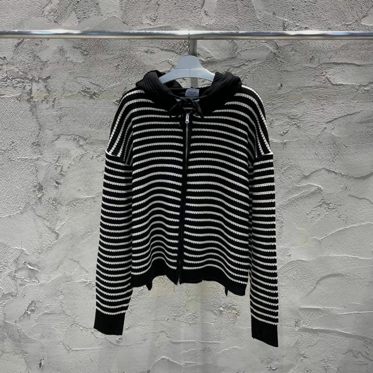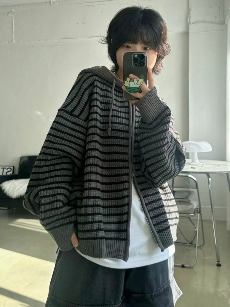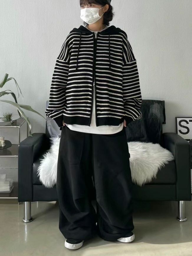 橫紋連帽拉鍊針織外套 WEEKEND-017JK