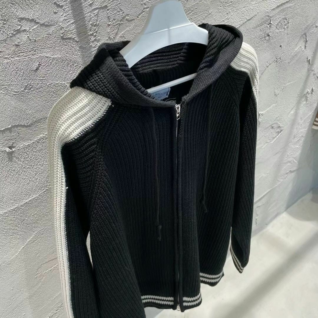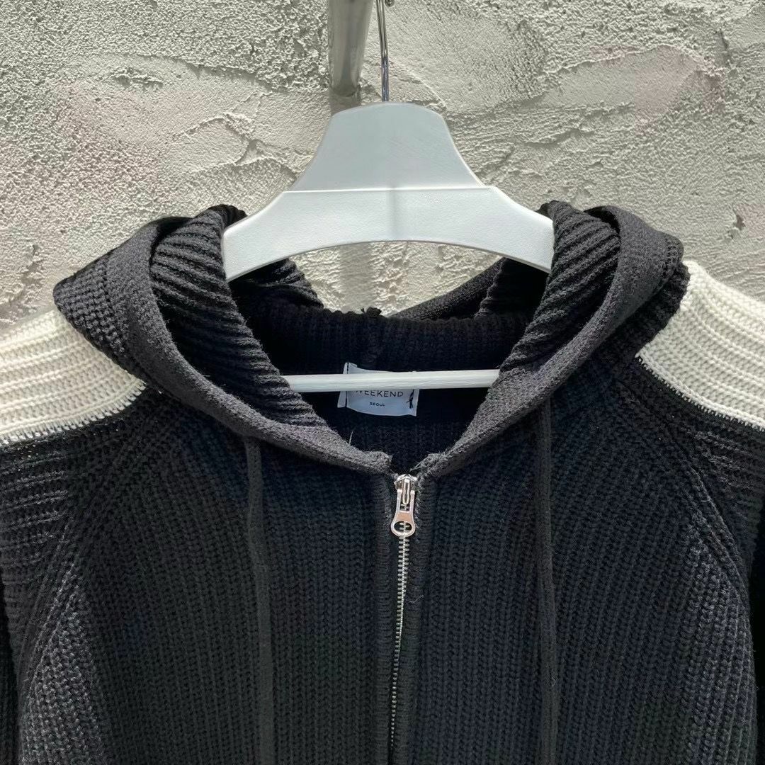 拼色連帽拉鍊針織外套 WEEKEND-020JK