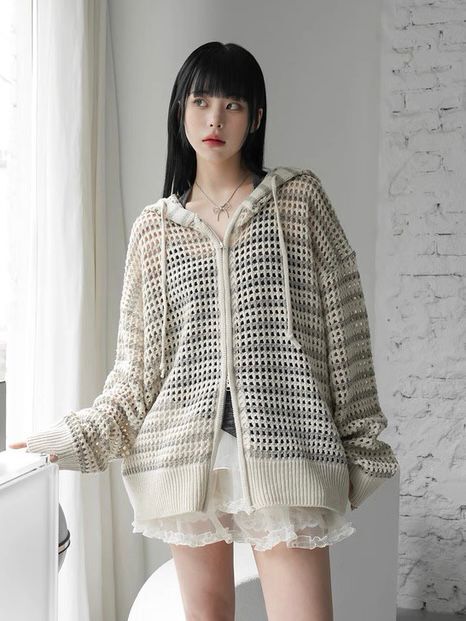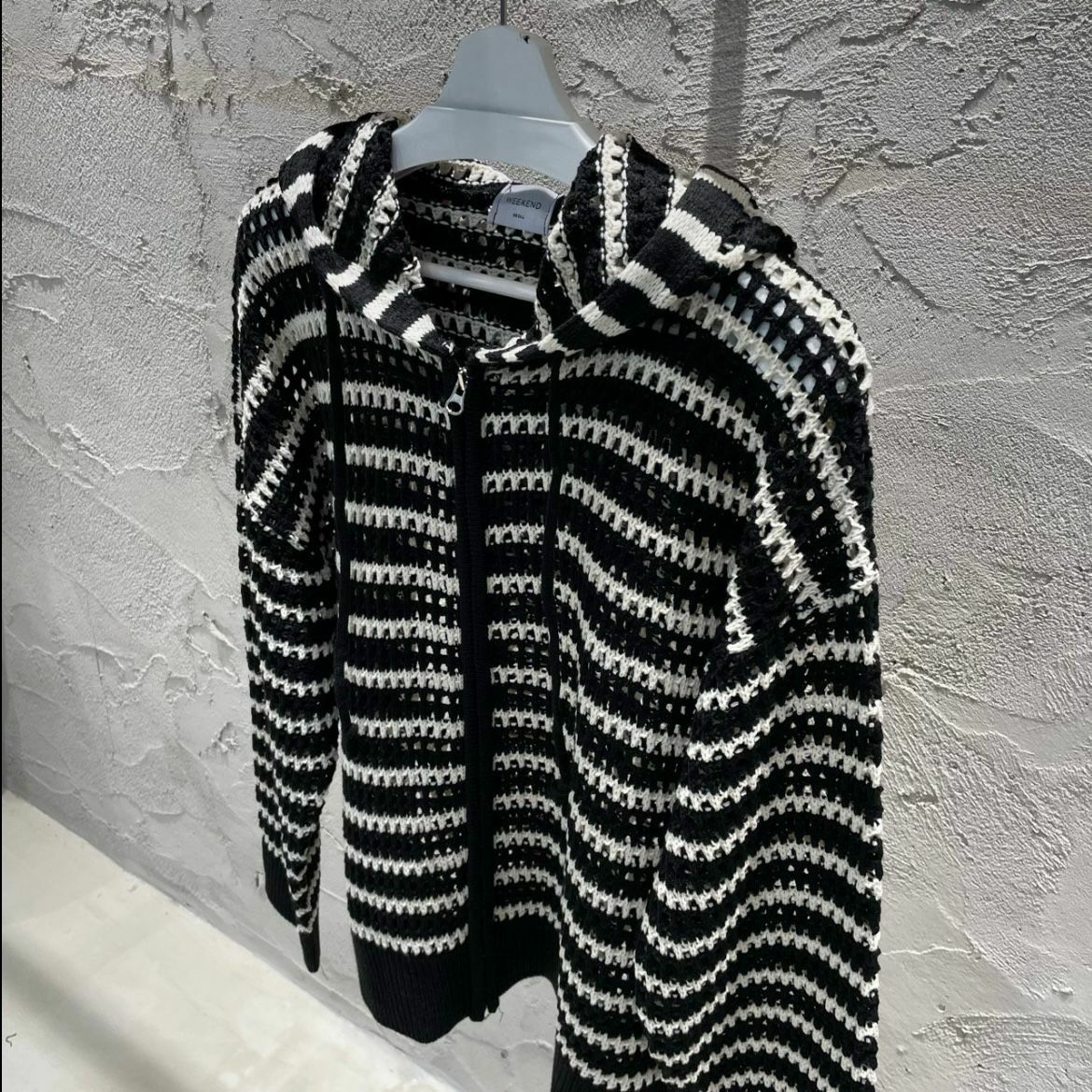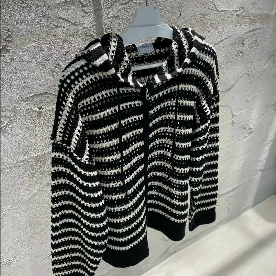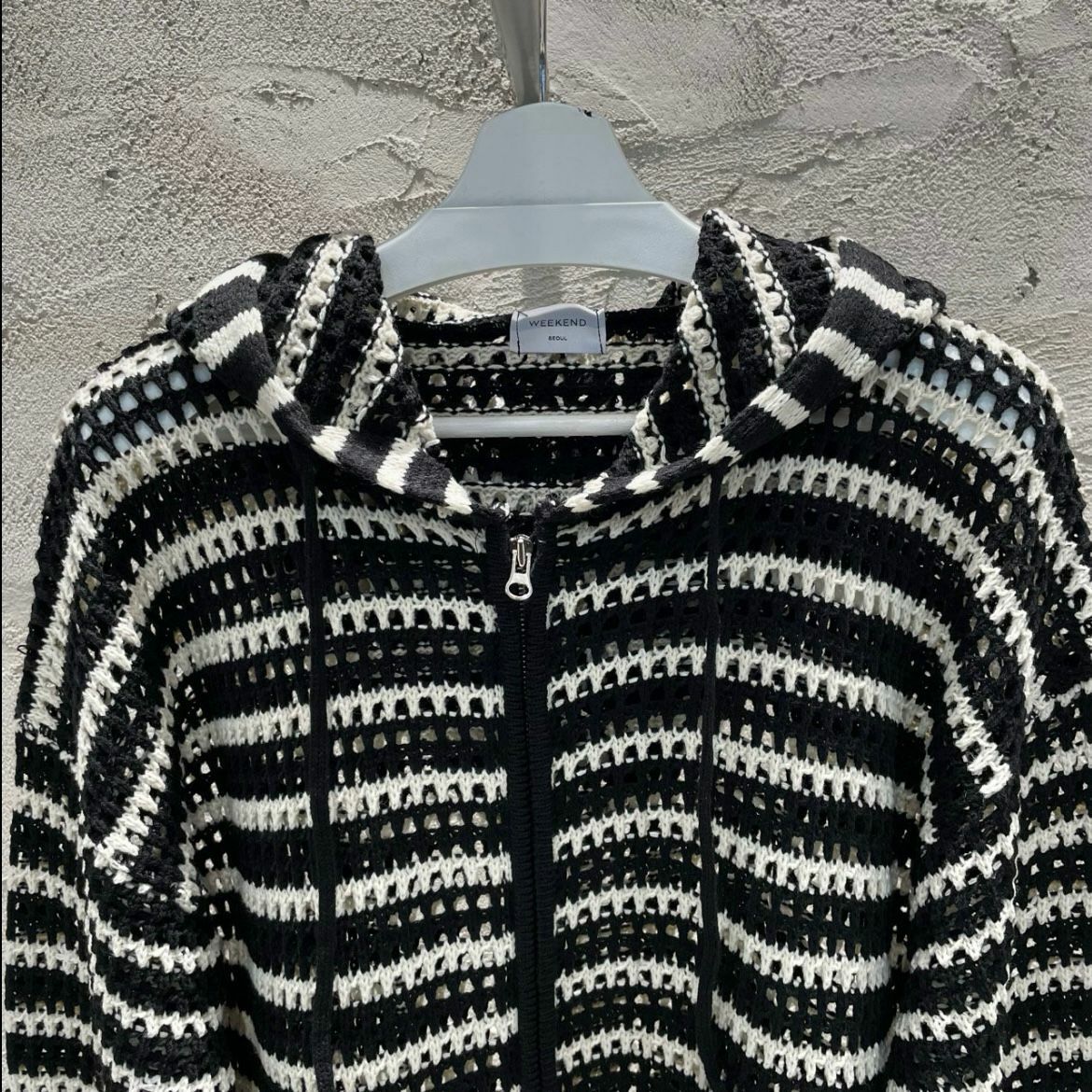 橫間連帽拉鍊針織外套 WEEKEND-032JK