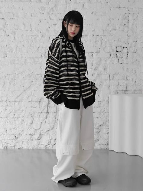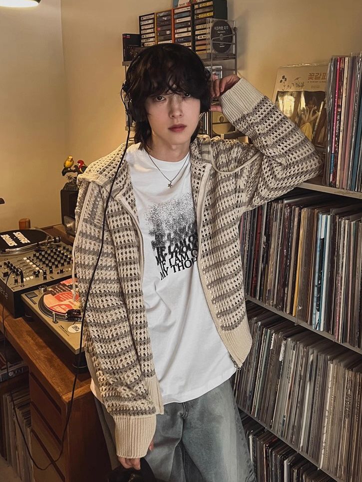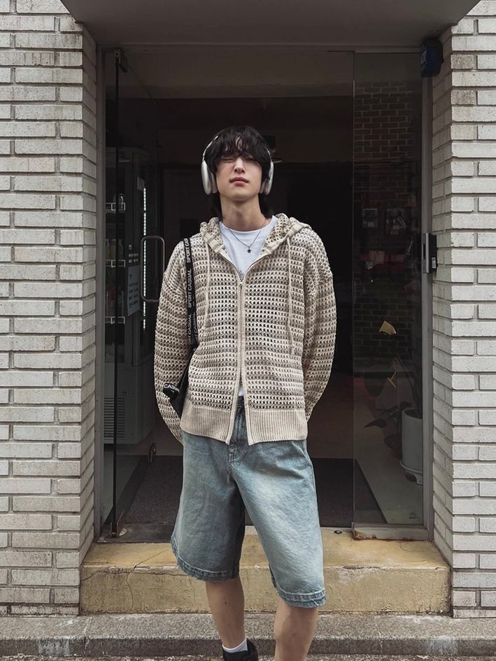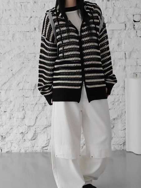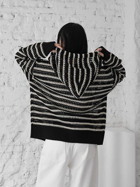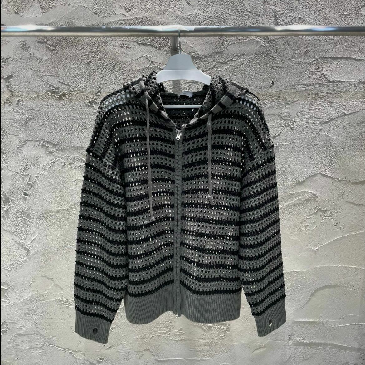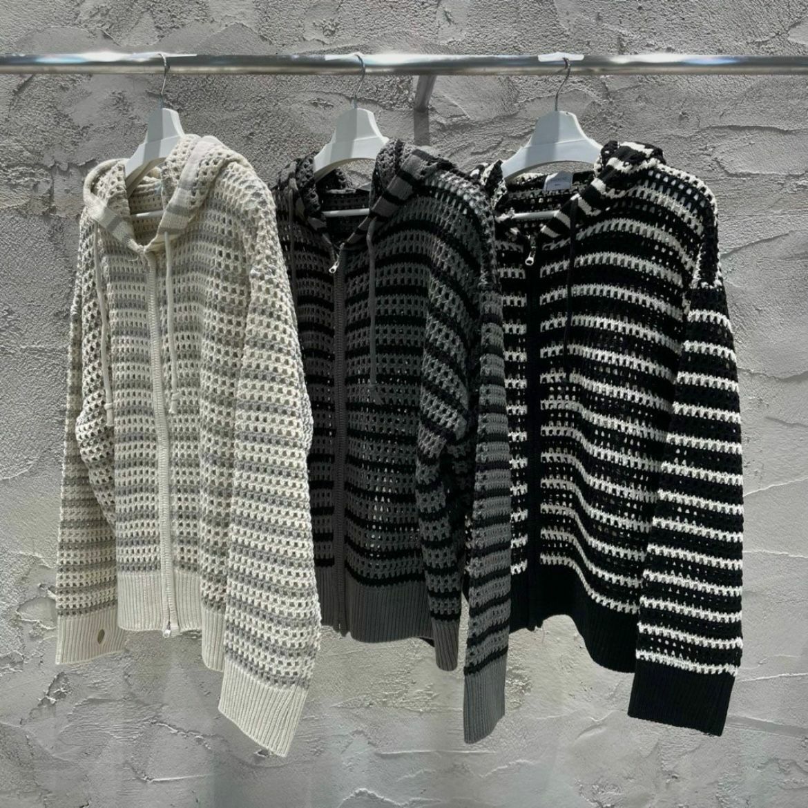 橫間連帽拉鍊針織外套 WEEKEND-032JK