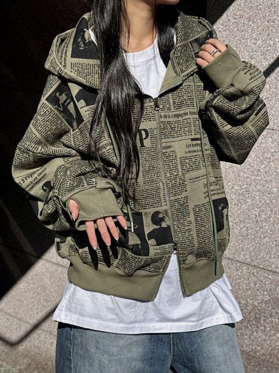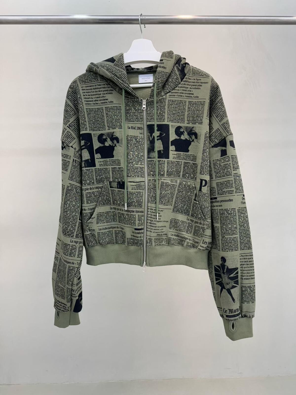 英文字連帽拉鍊外套(薄抓毛底) WEEKEND-046JK