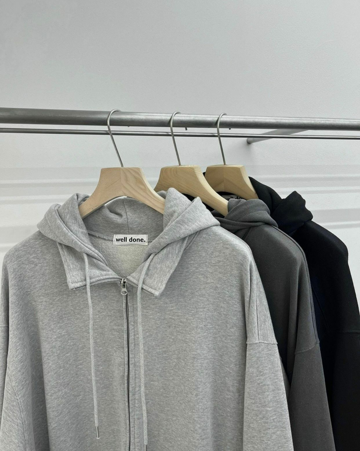 淨色連帽拉鍊外套 WELL DONE-006JK