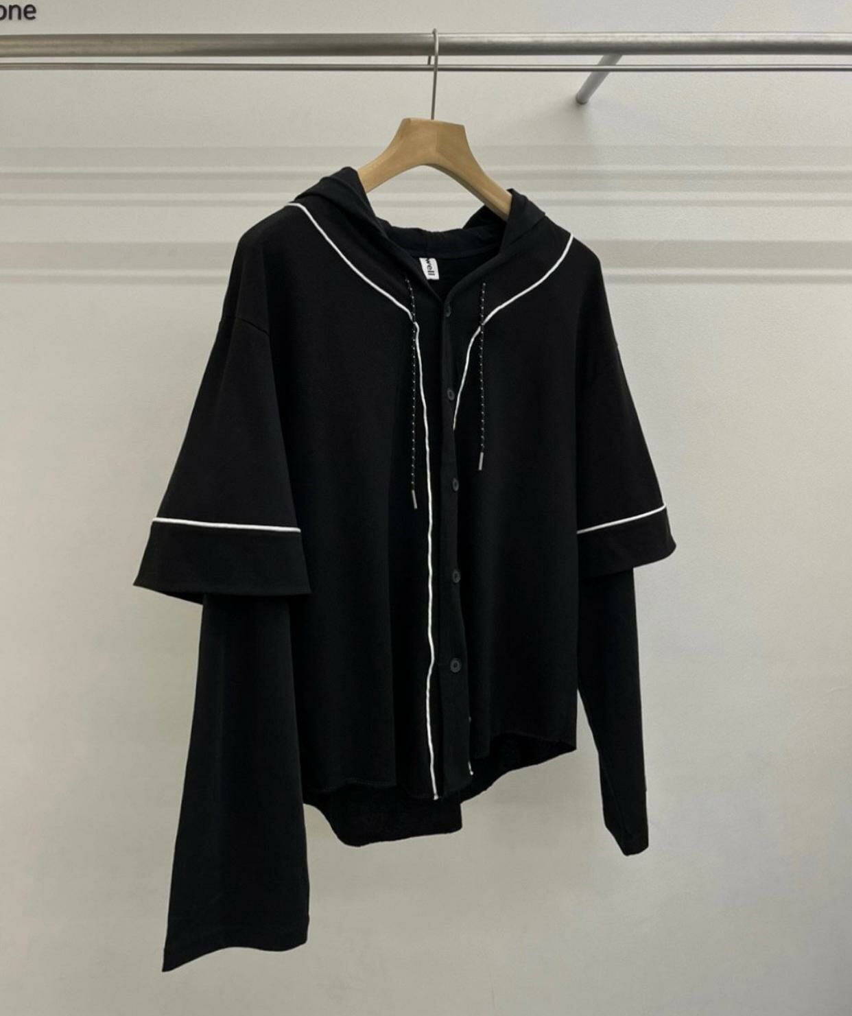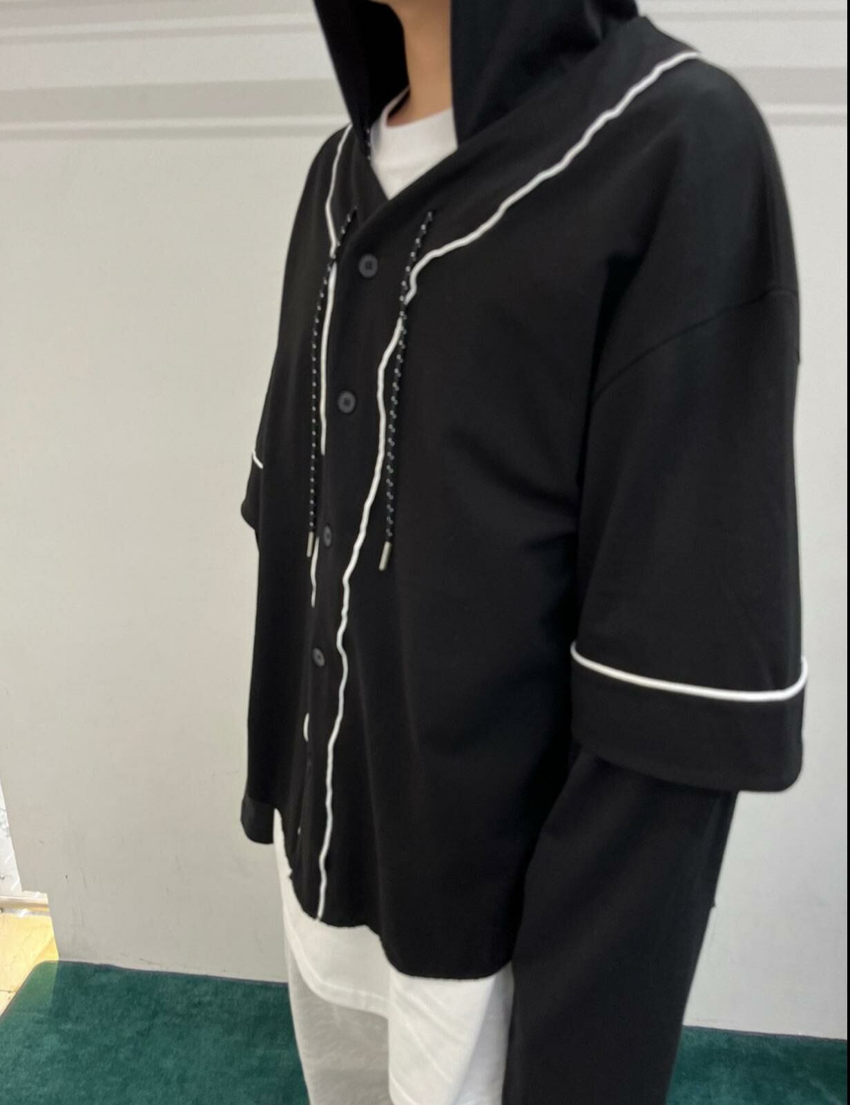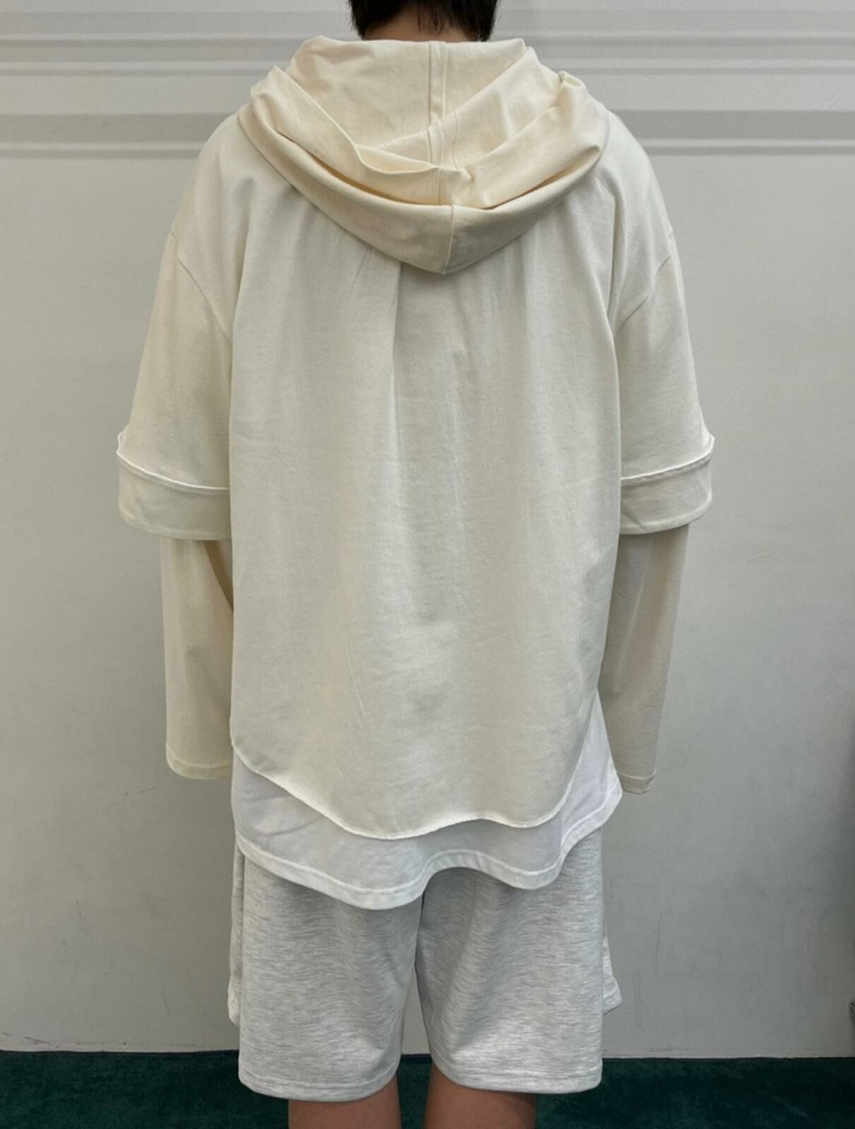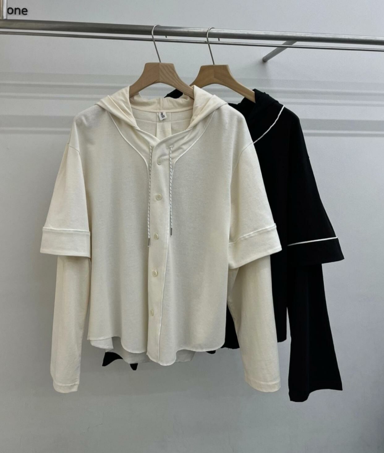 淨色假兩件連帽開胸外套 WELL DONE-007JK