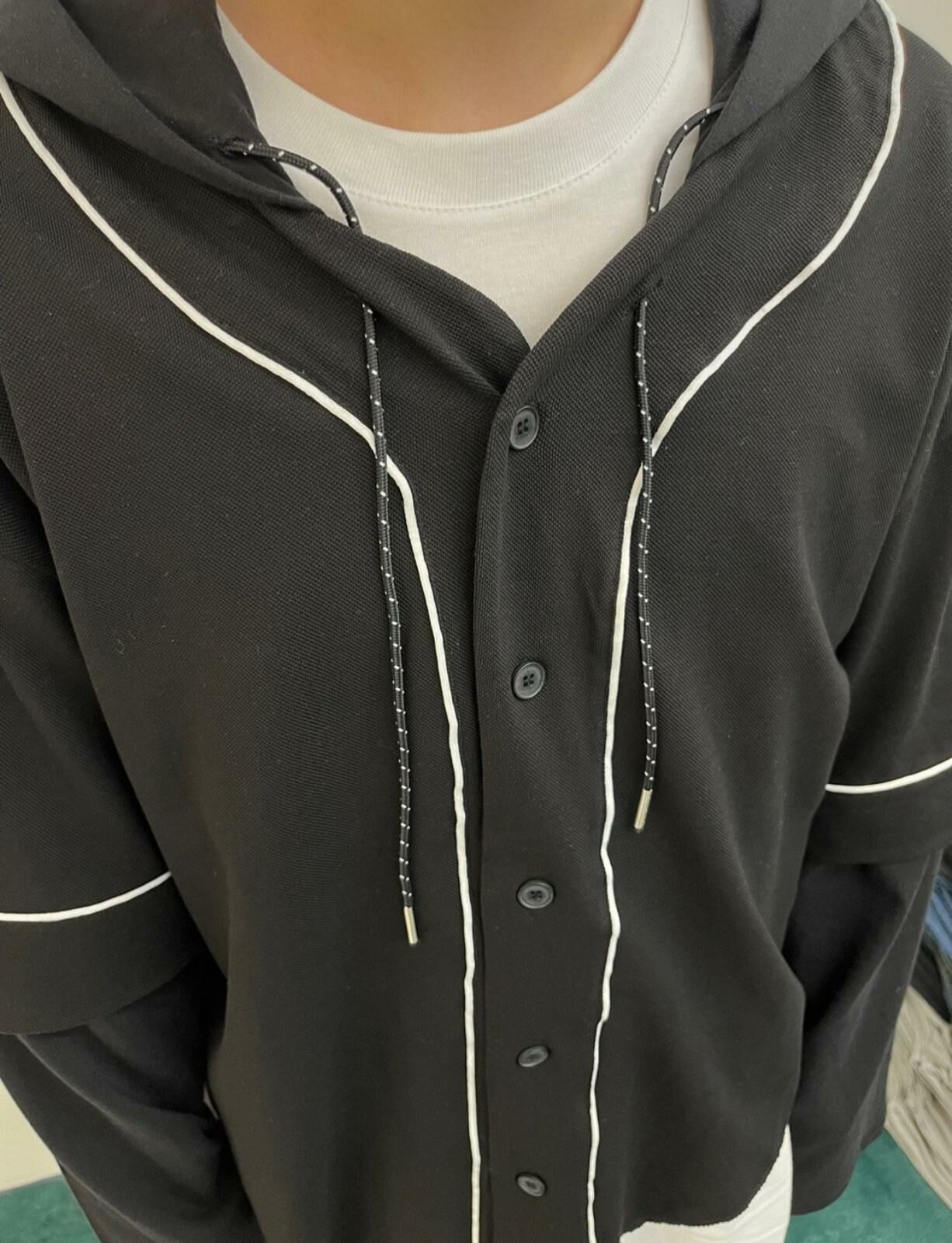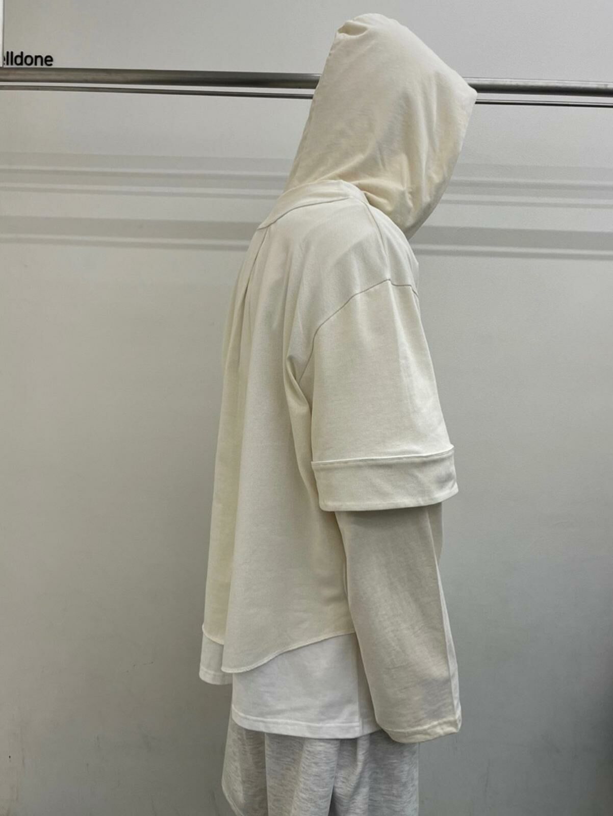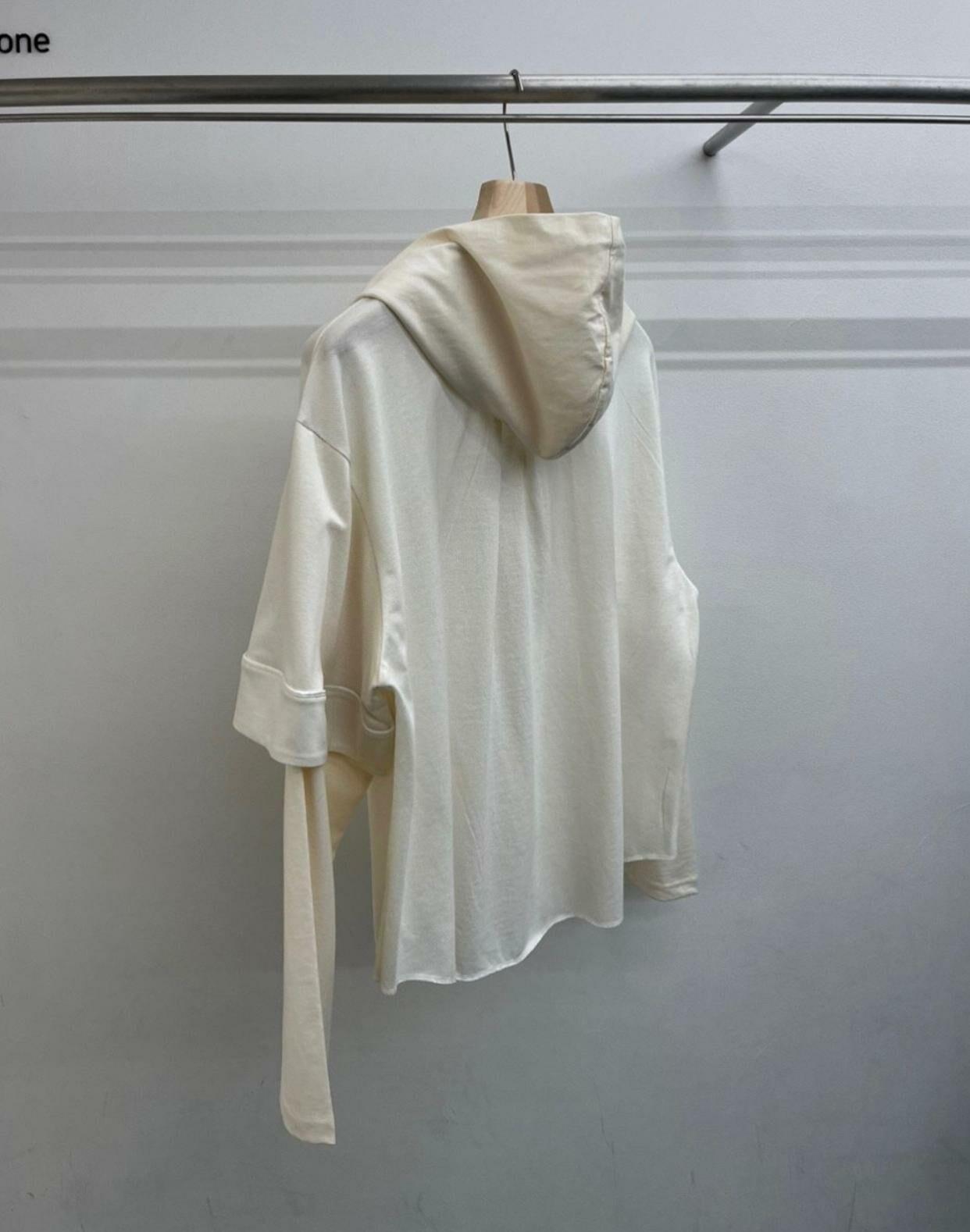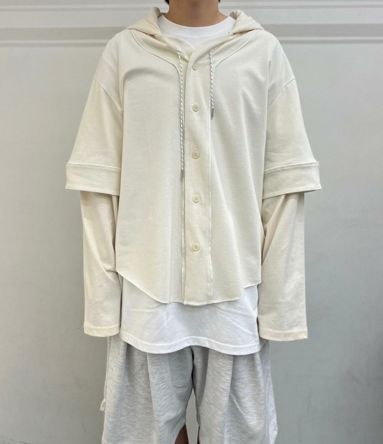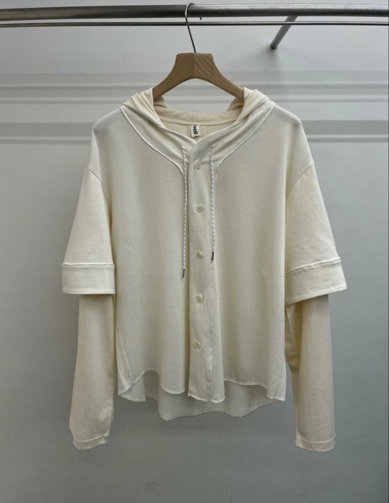 淨色假兩件連帽開胸外套 WELL DONE-007JK