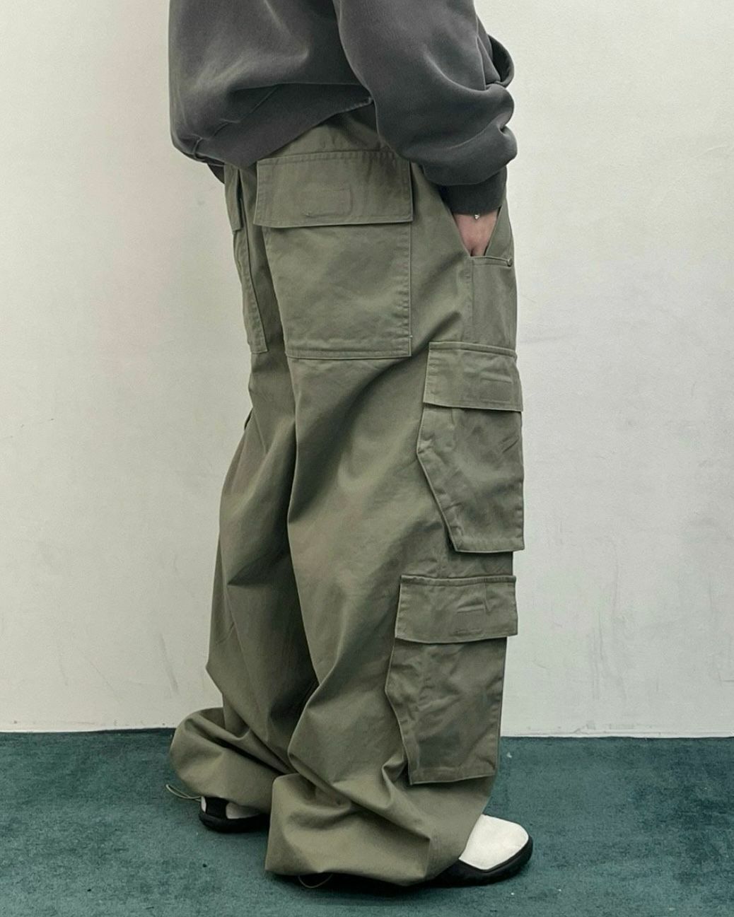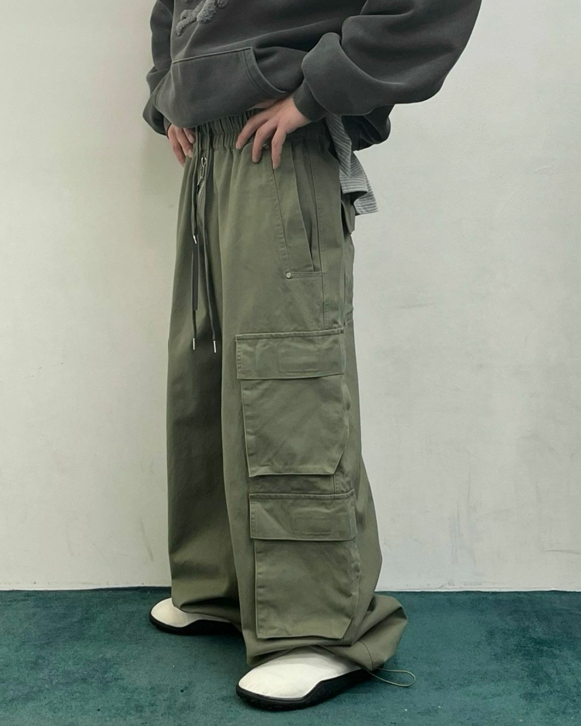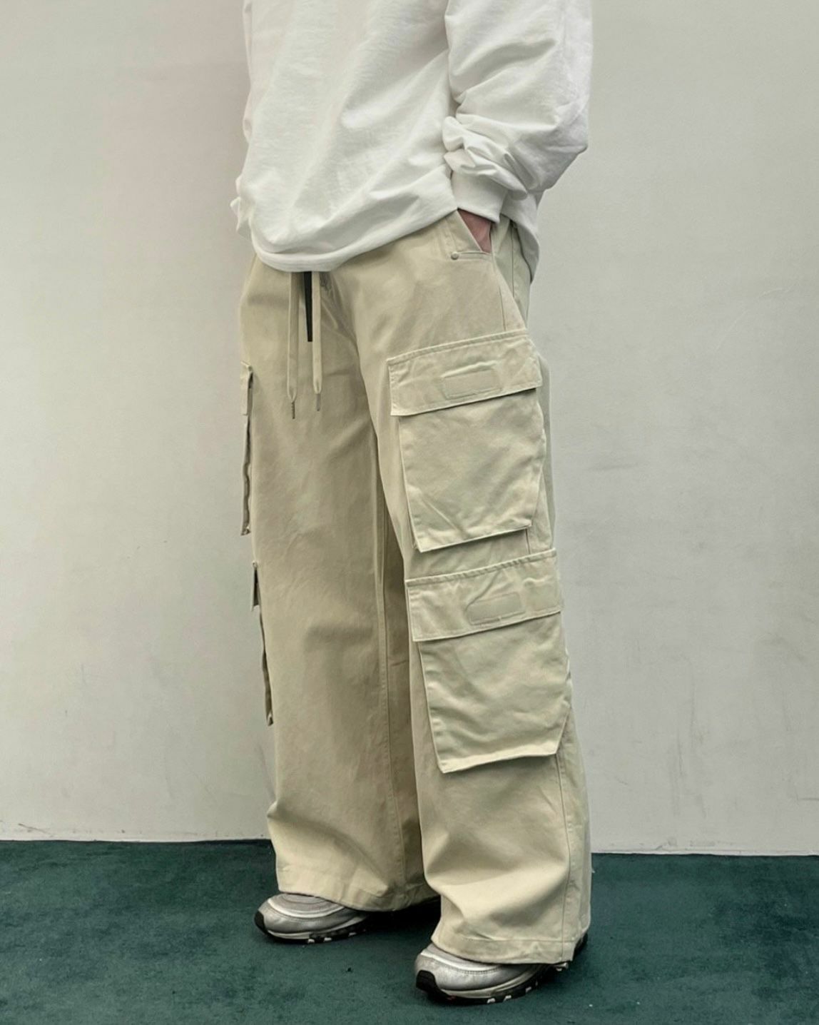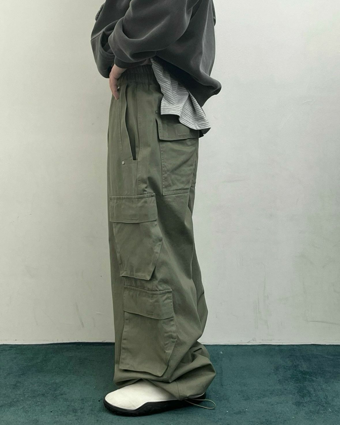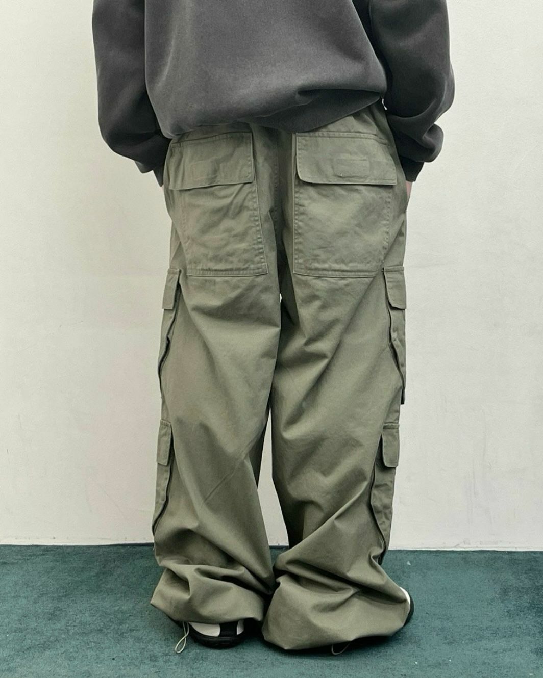 淨色可束腳工裝鬆身褲 WELL DONE-029P