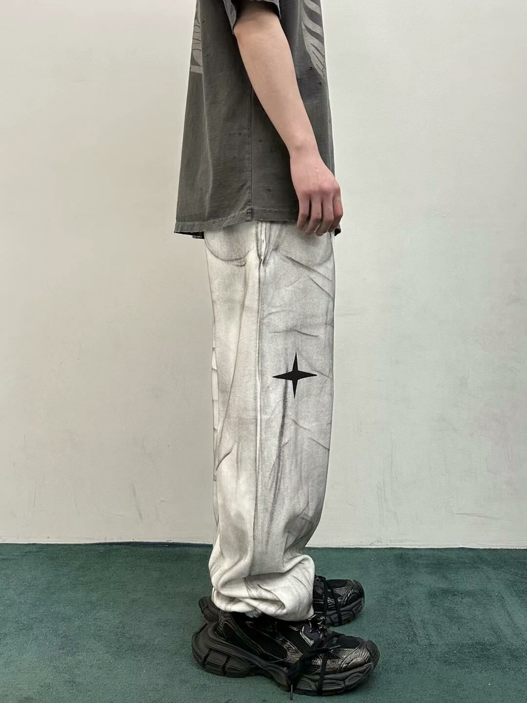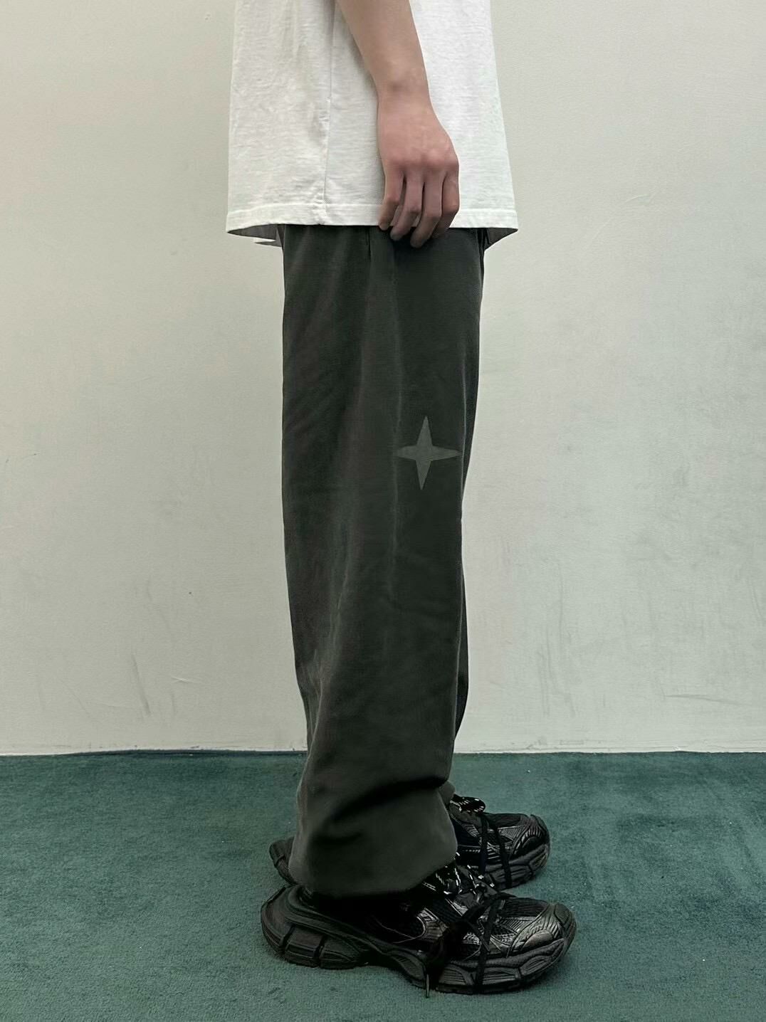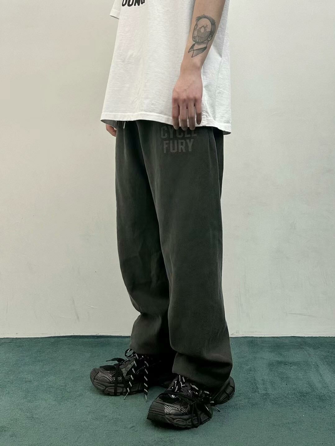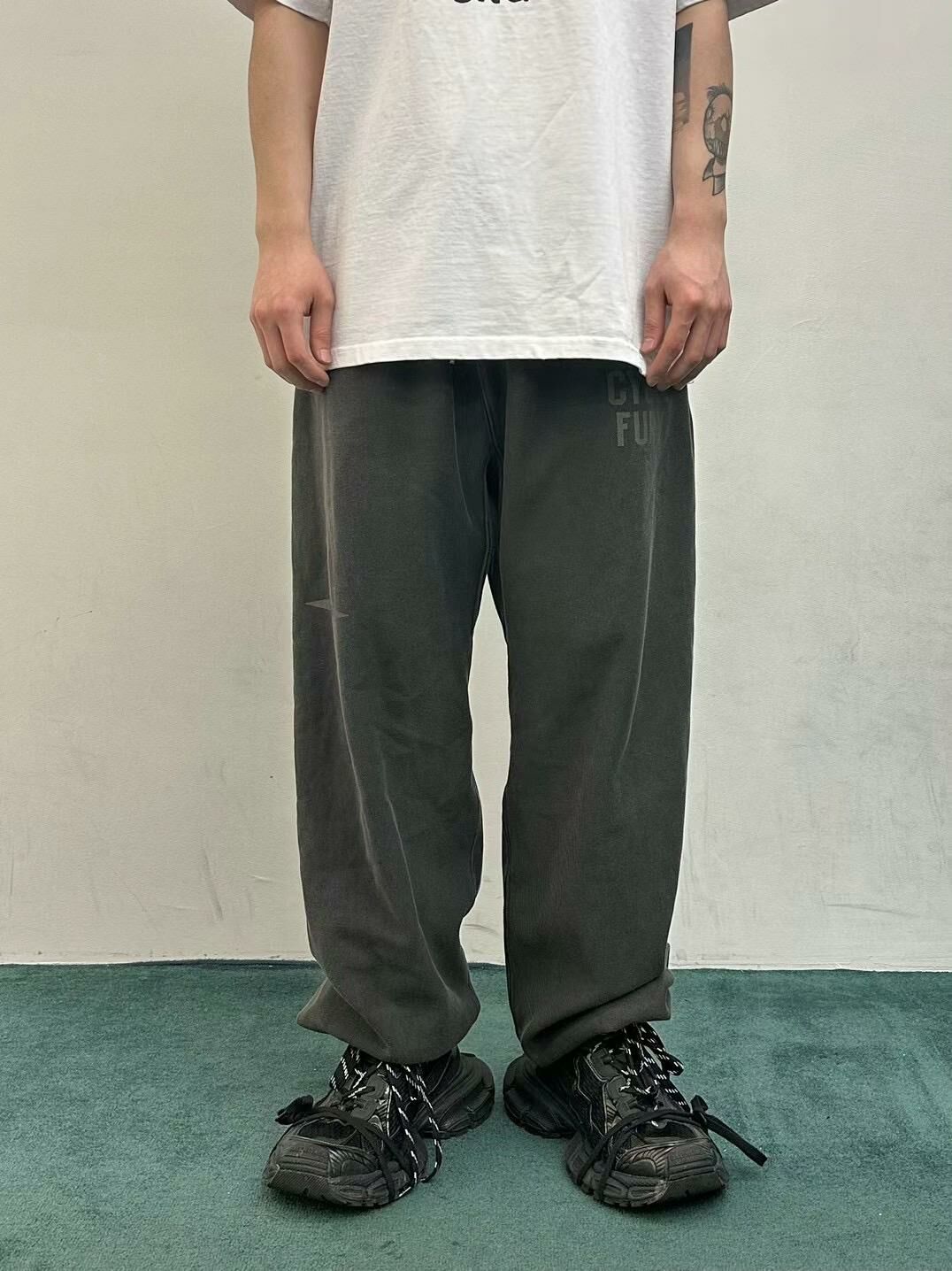 仿污英文字束腳鬆身運動褲 WELL DONE-048P