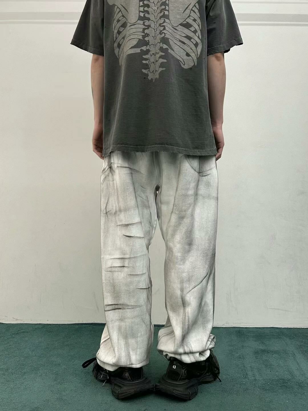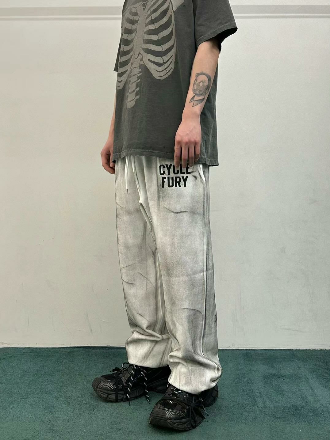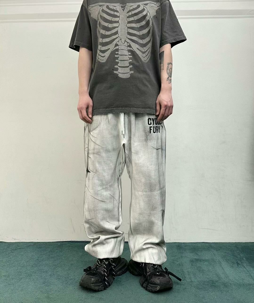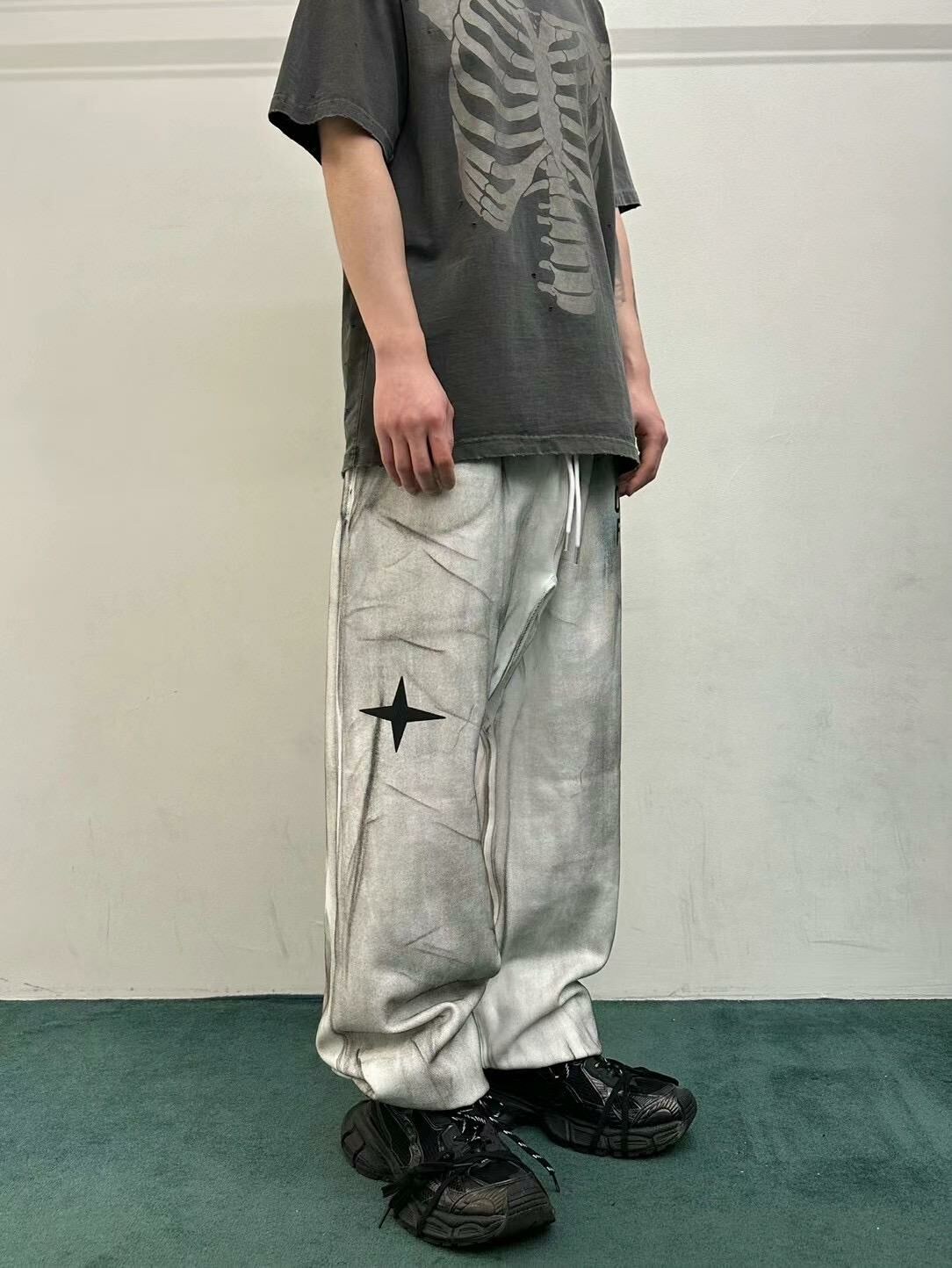 仿污英文字束腳鬆身運動褲 WELL DONE-048P