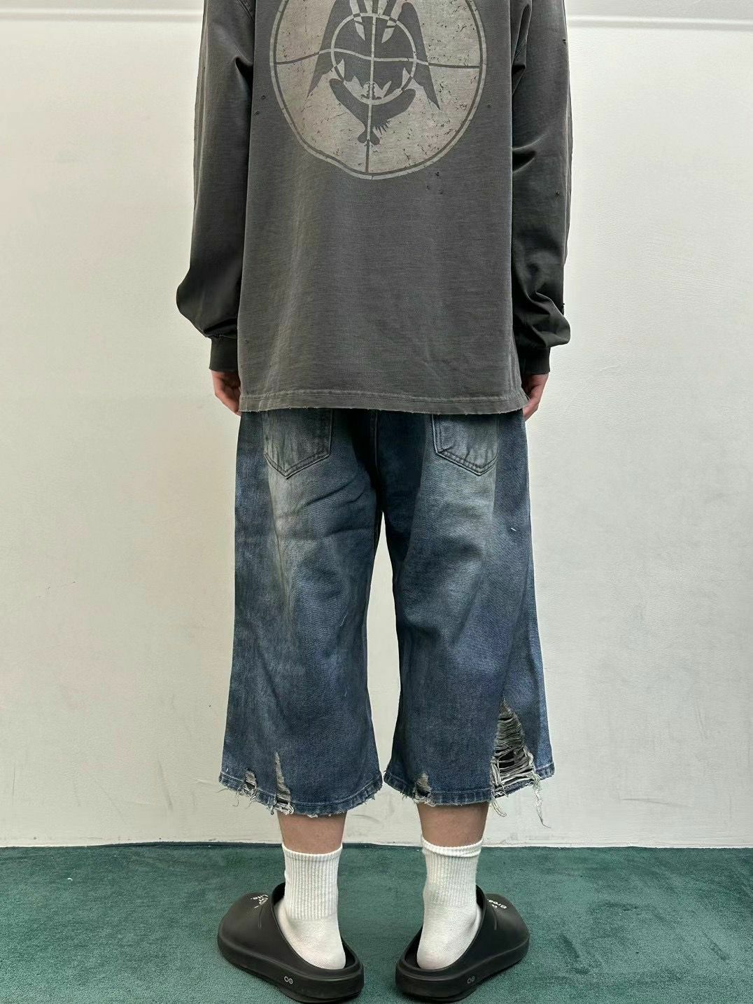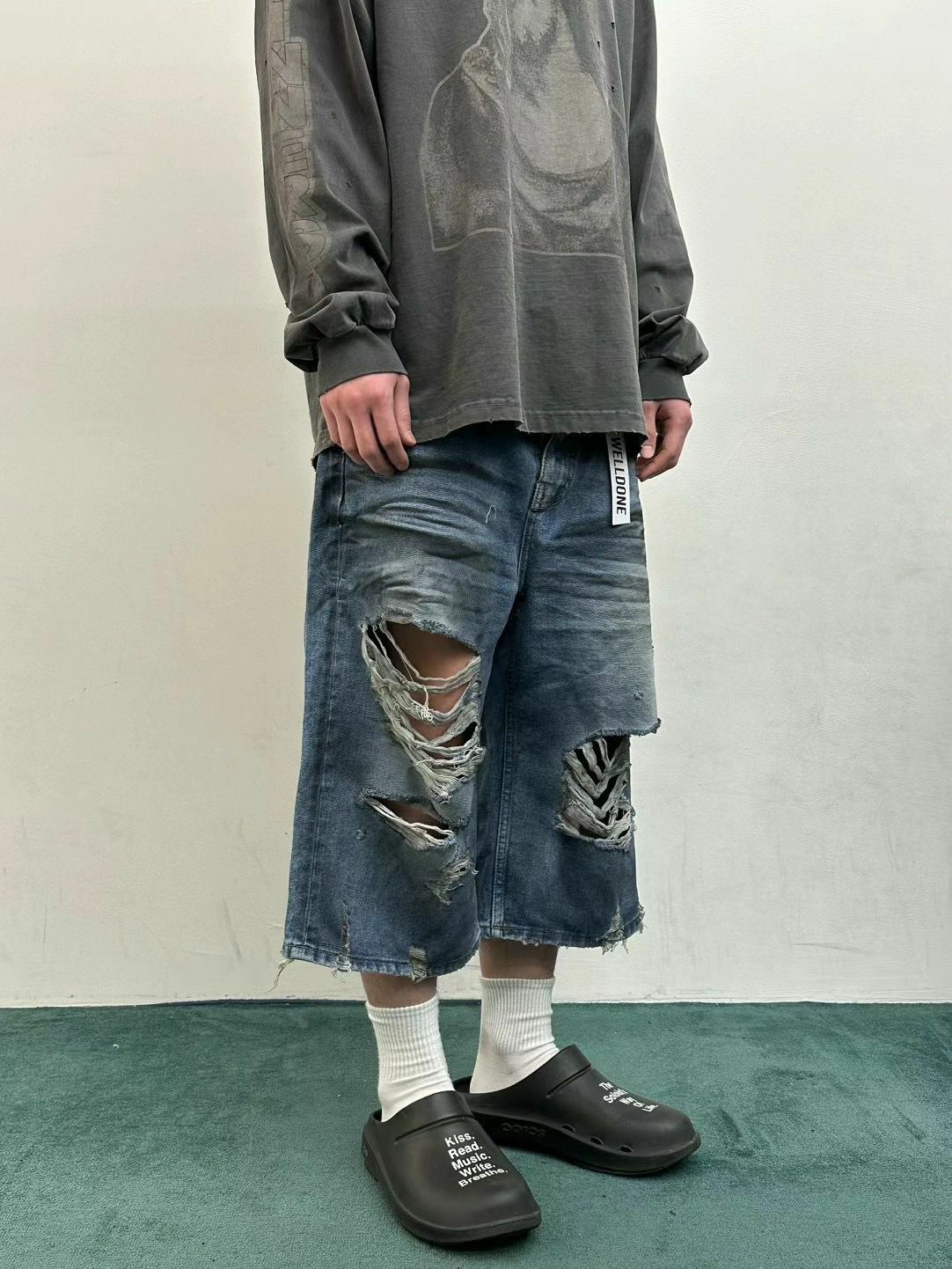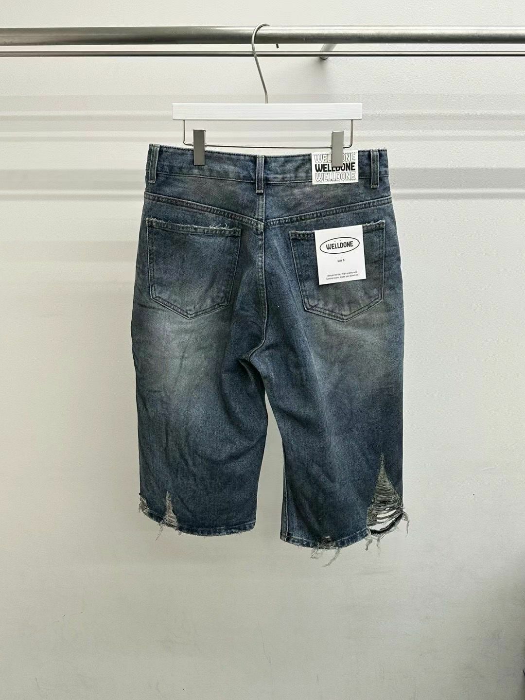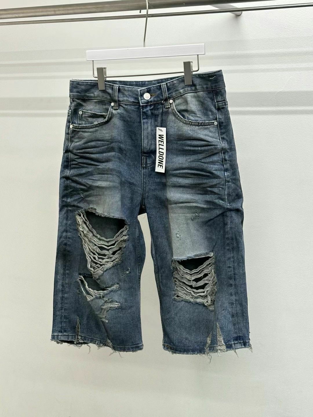 七分洗水破洞牛仔短褲 WELL DONE-049J