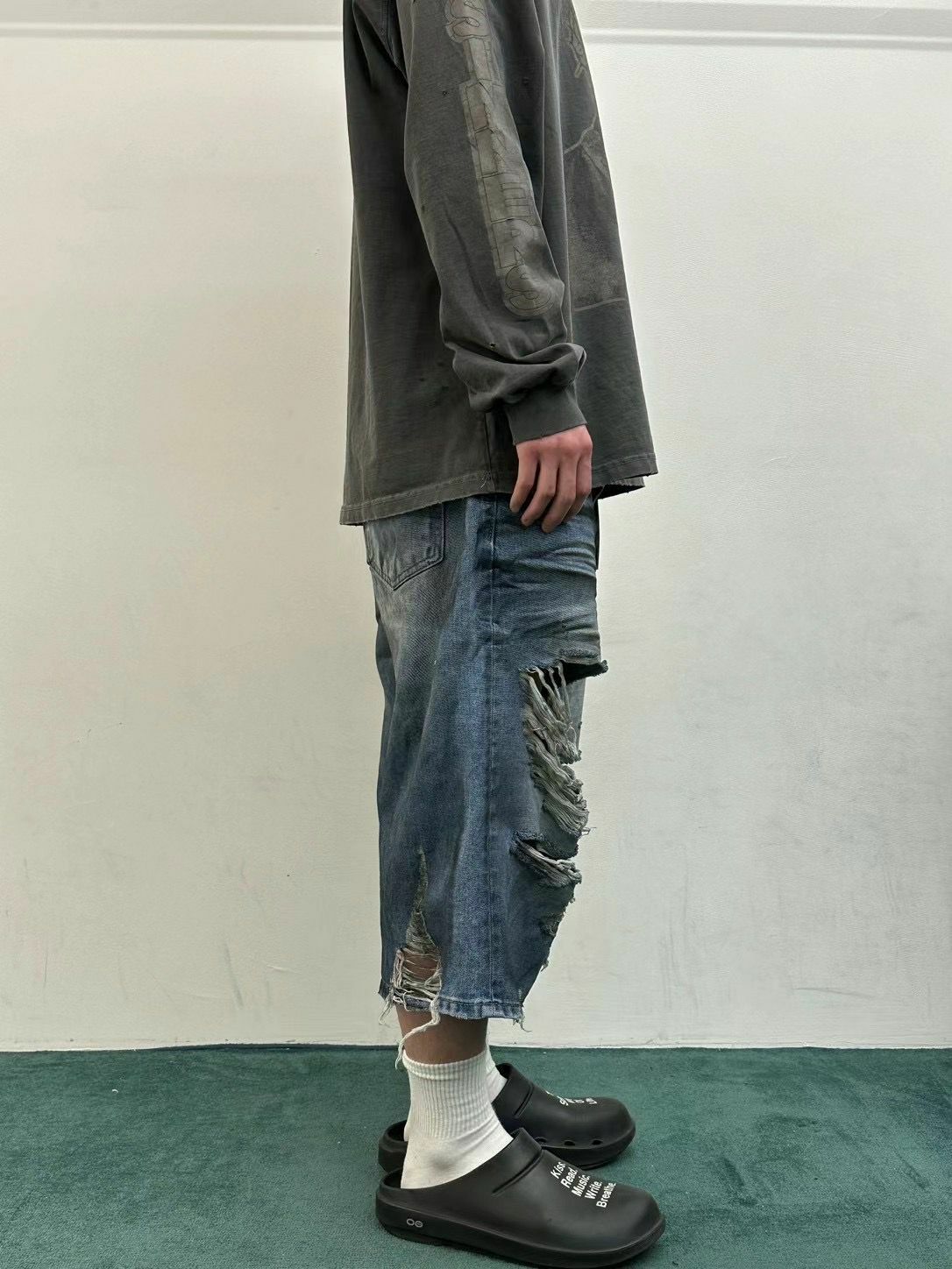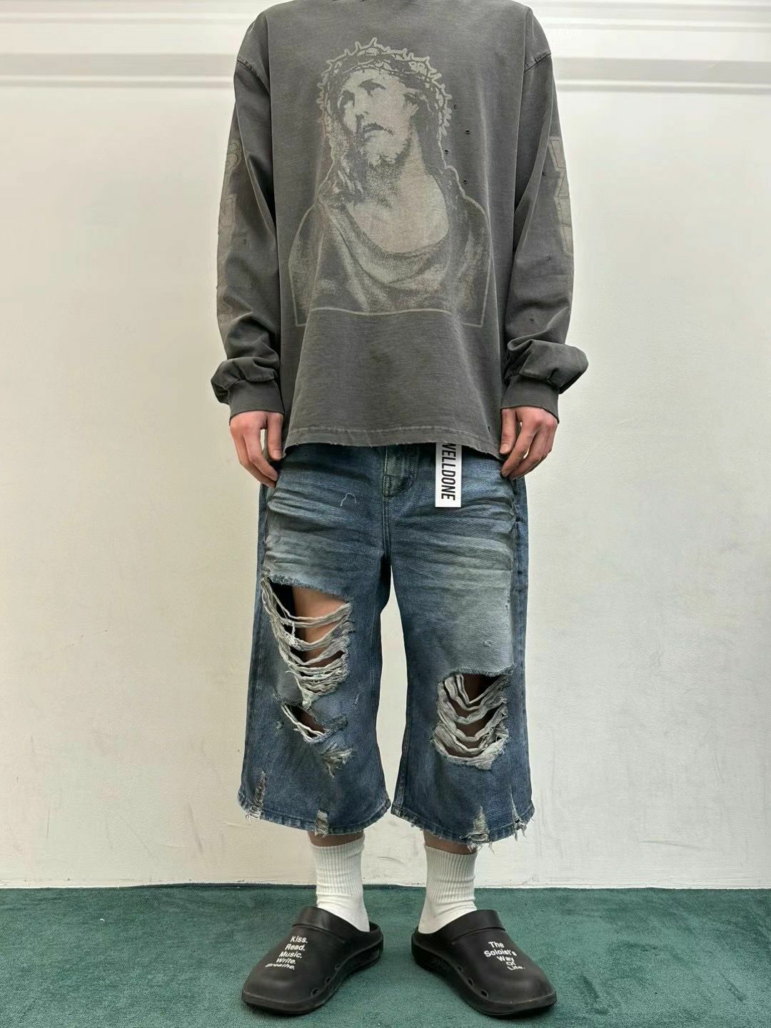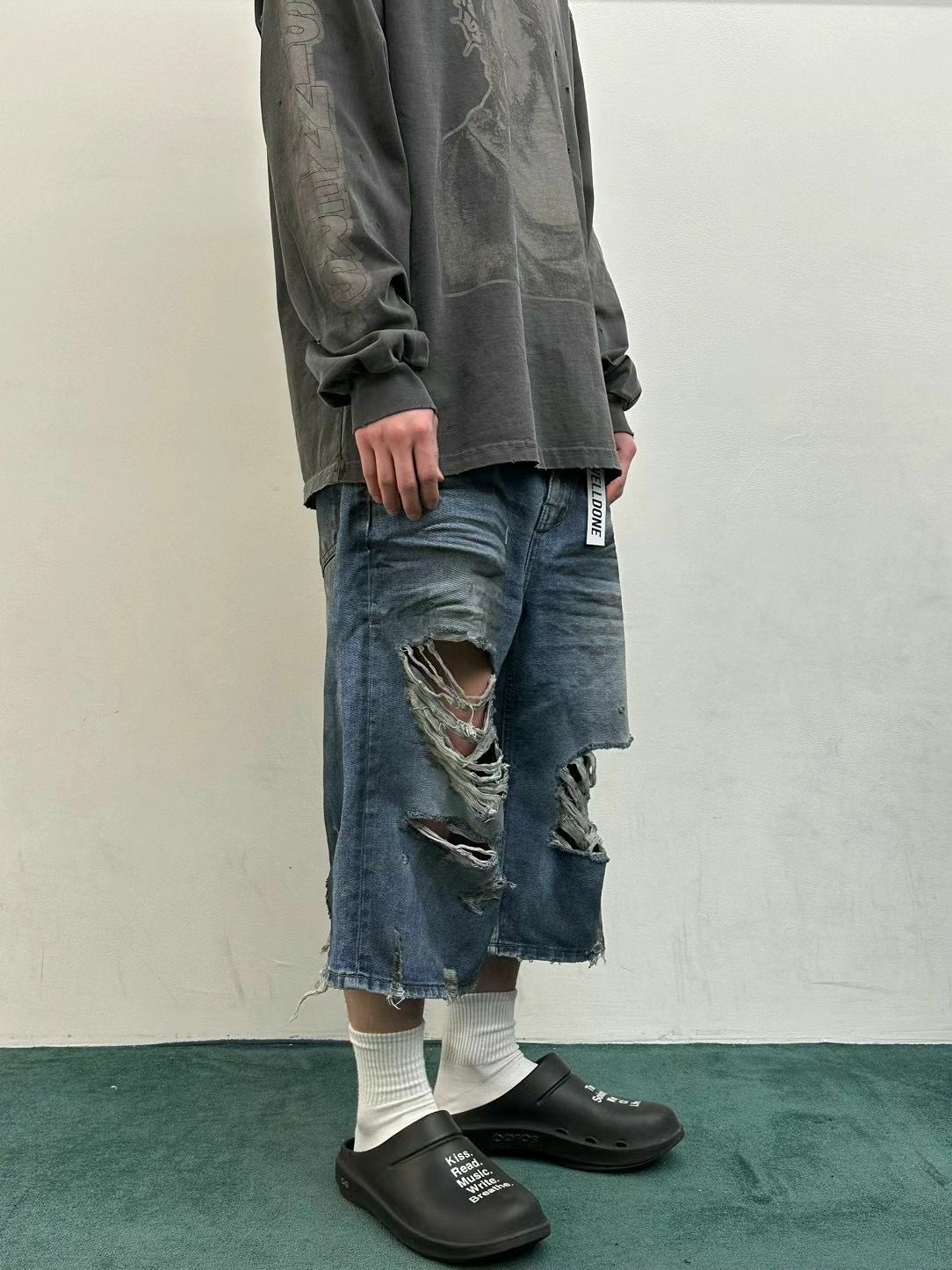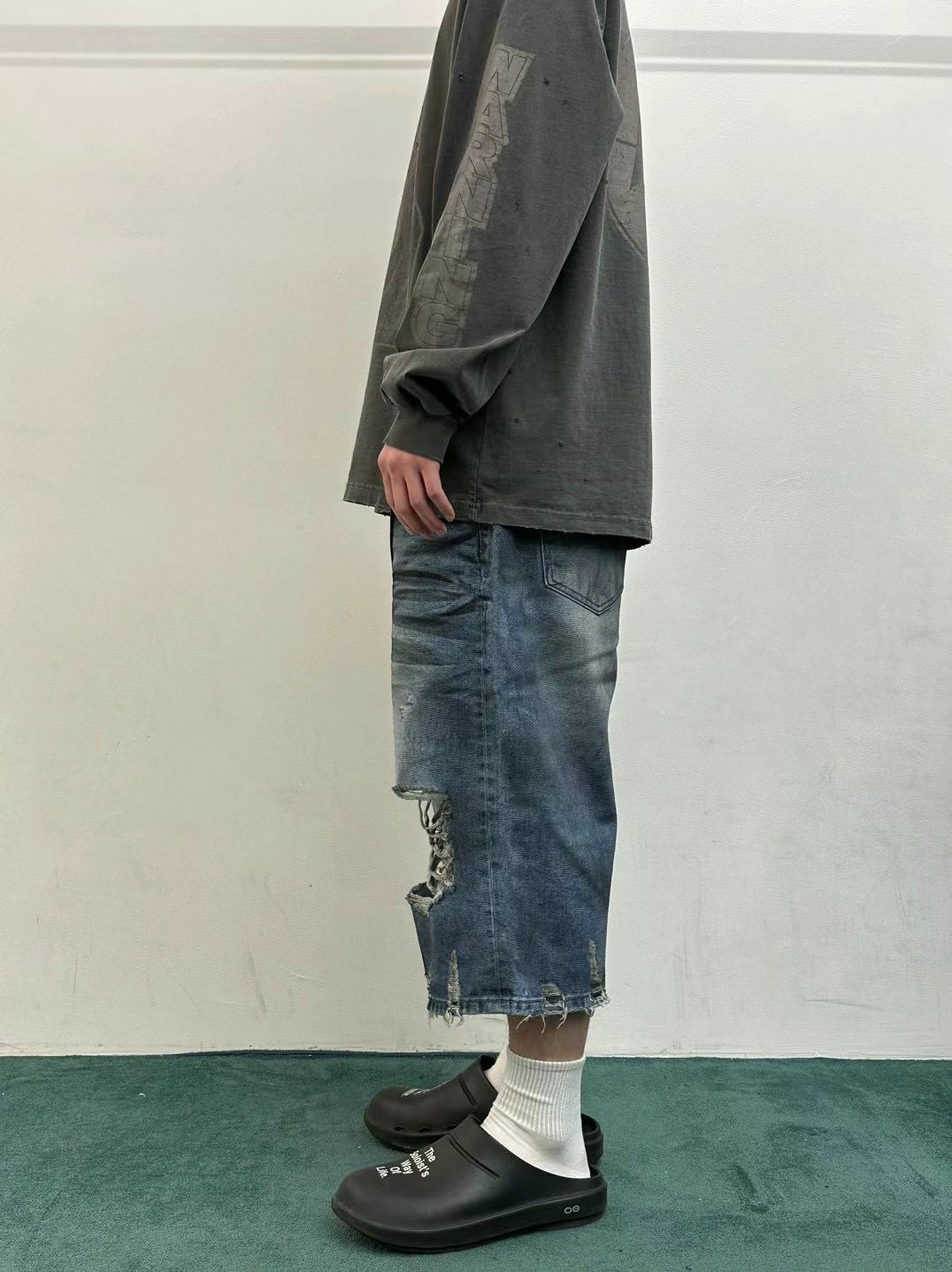 七分洗水破洞牛仔短褲 WELL DONE-049J