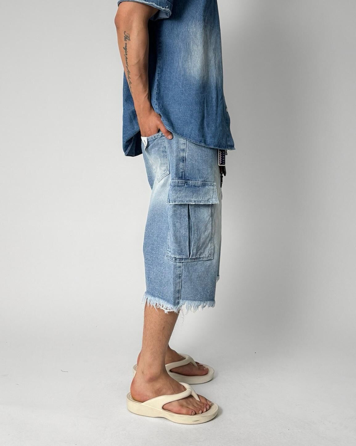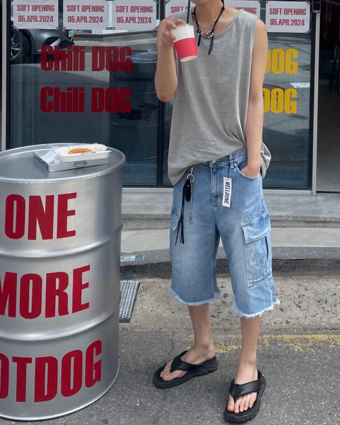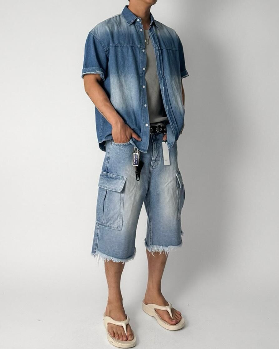 洗水工裝牛仔短褲 WELL DONE-051J