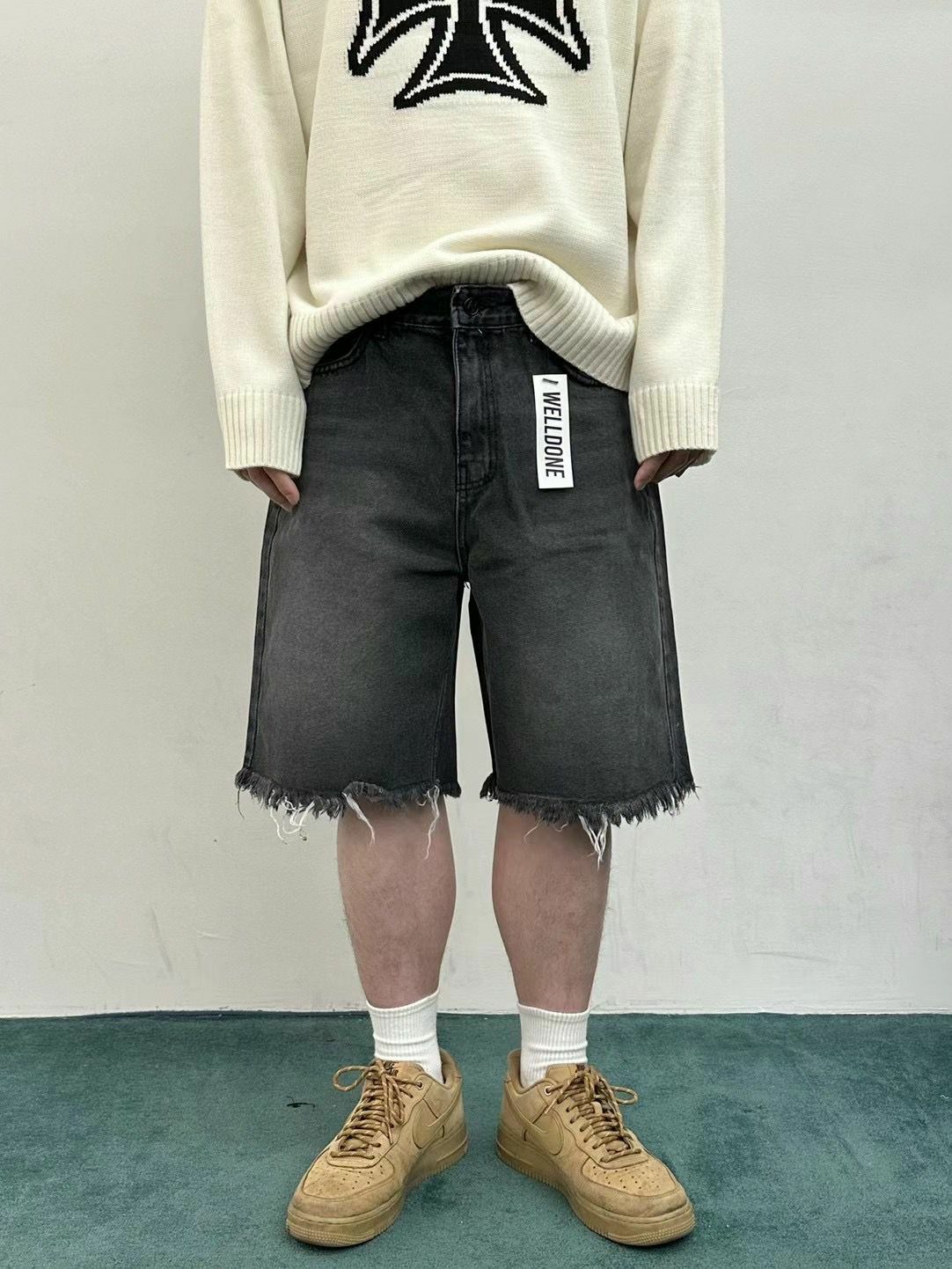 洗水流蘇牛仔短褲 WELL DONE-052J