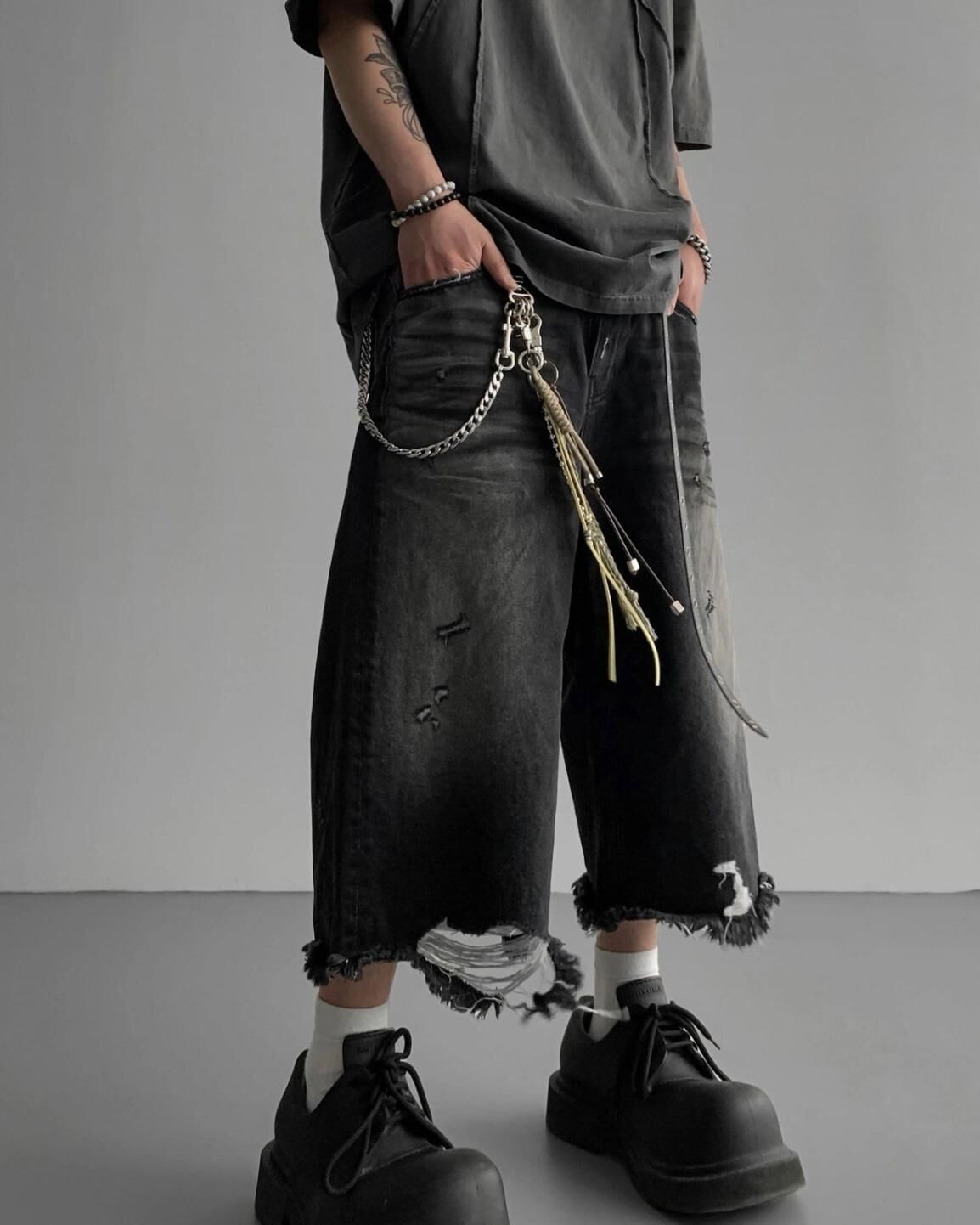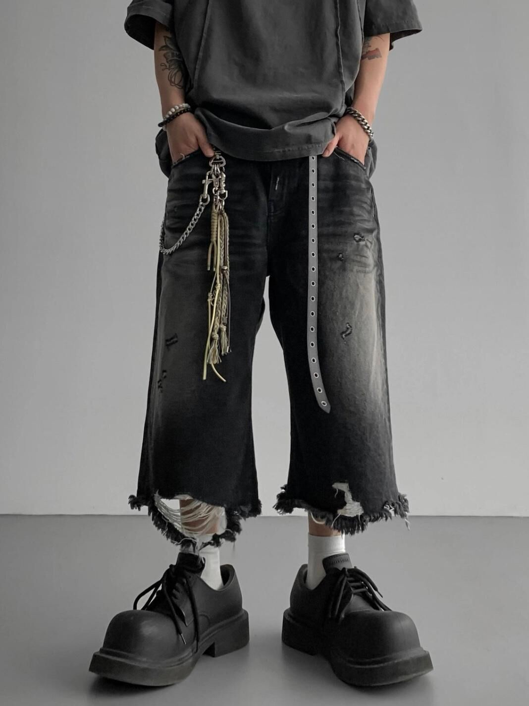 七分洗水流蘇牛仔短褲 WELL DONE-054J