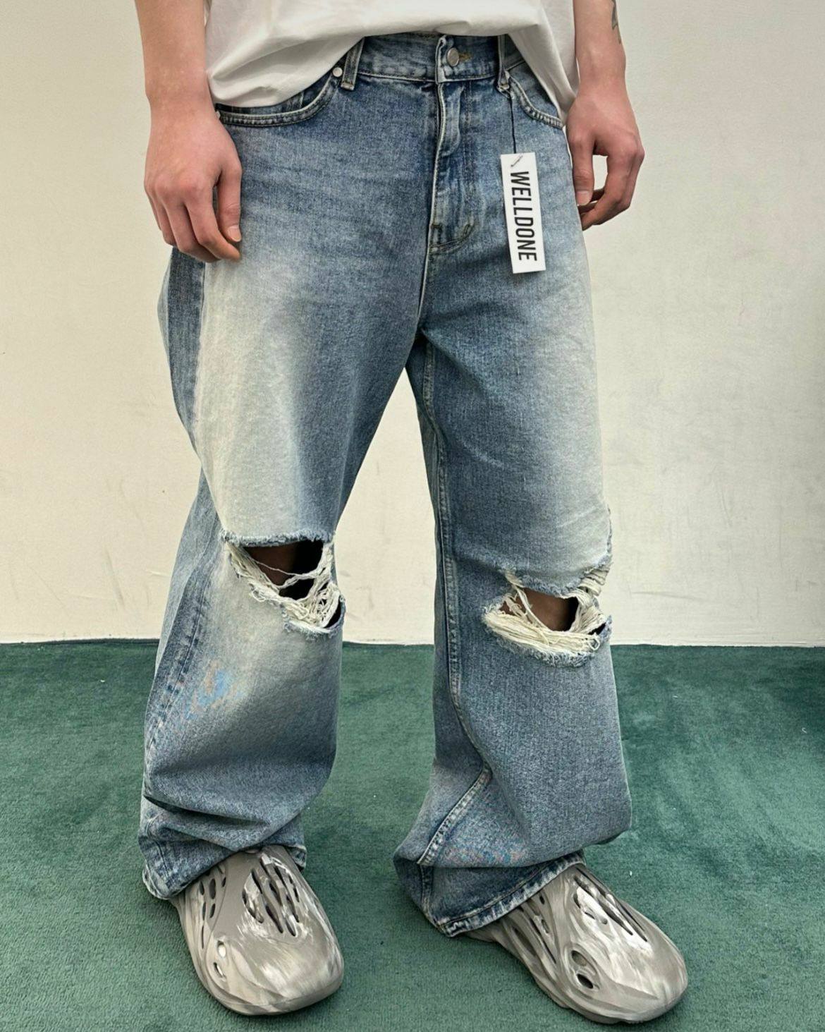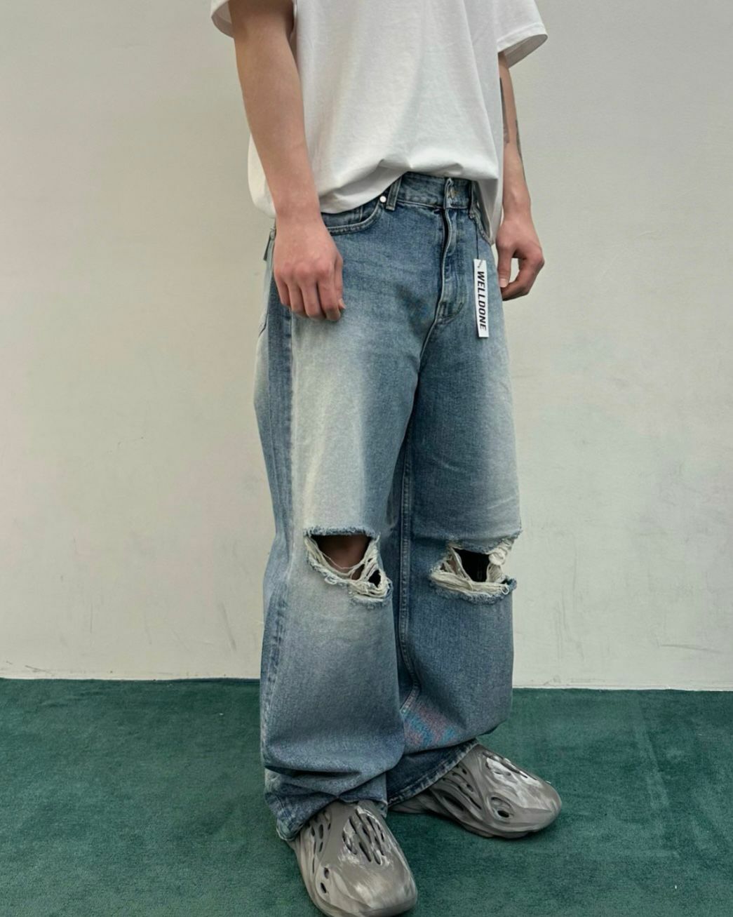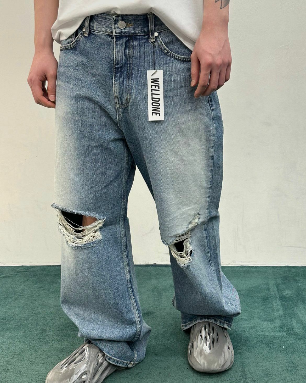 洗水破洞鬆身牛仔褲 WELL DONE-058J