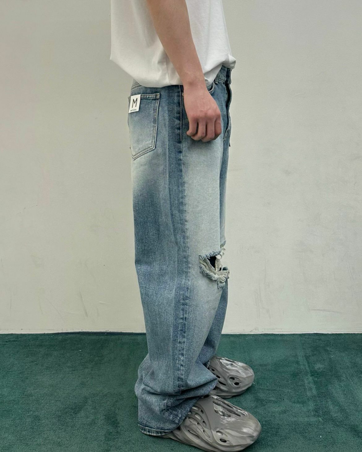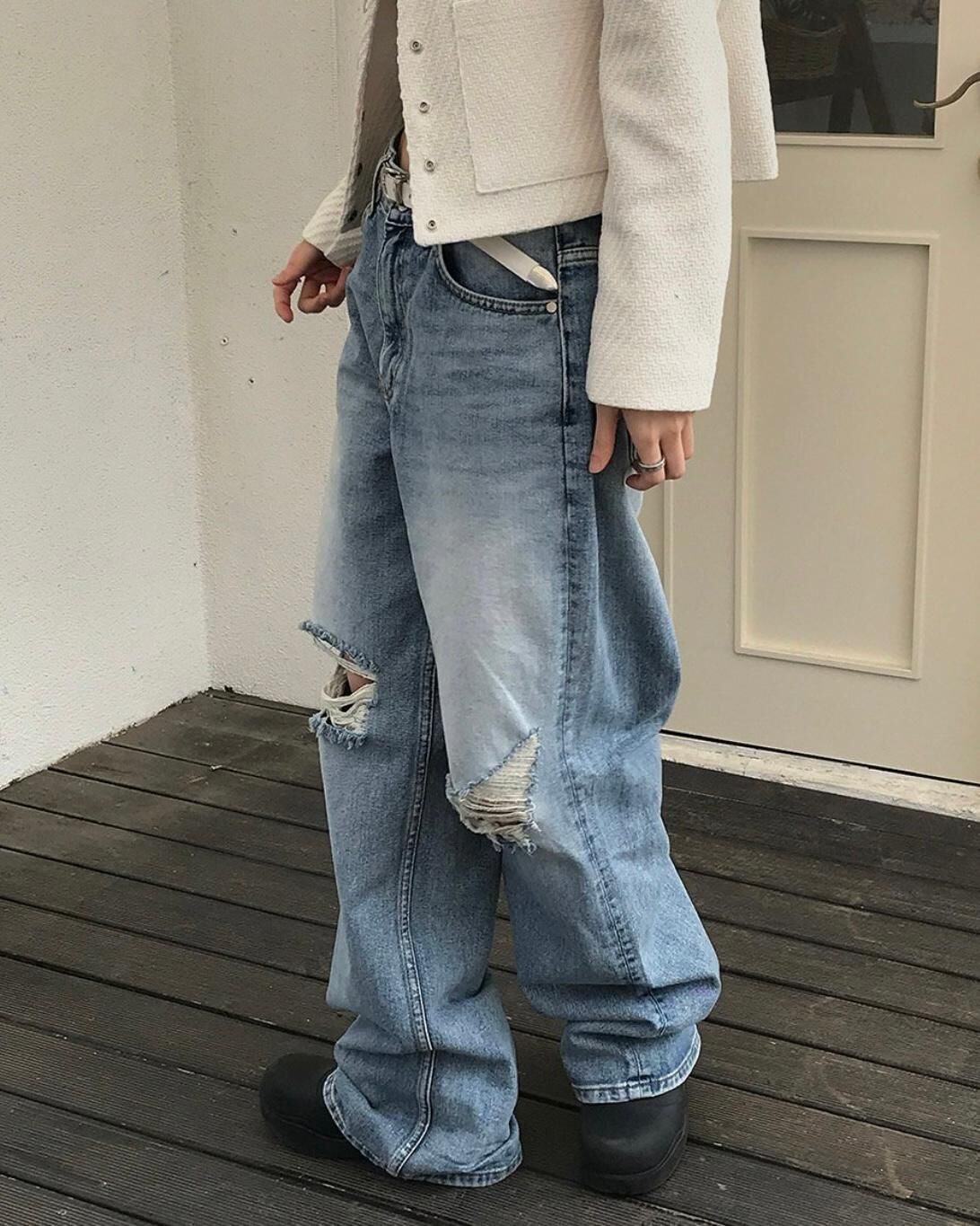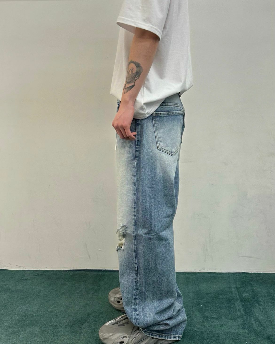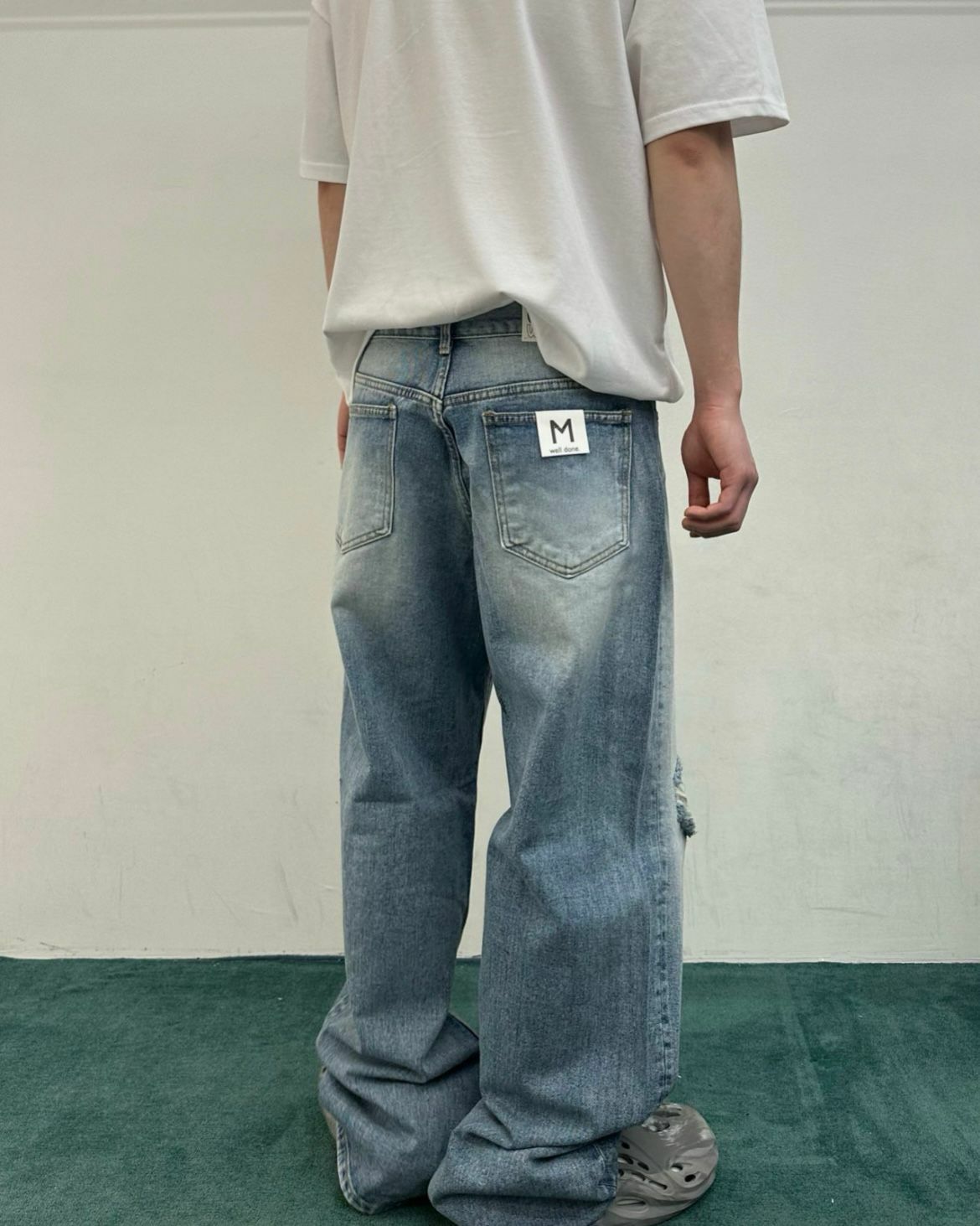 洗水破洞鬆身牛仔褲 WELL DONE-058J