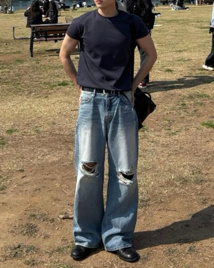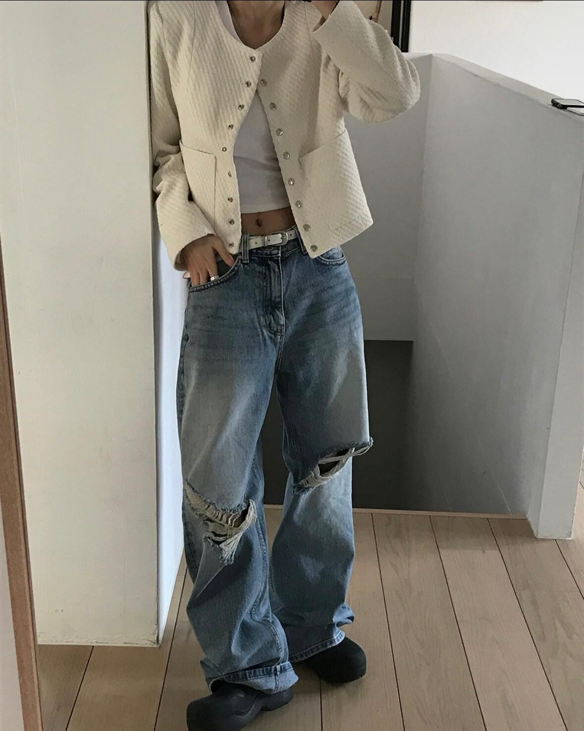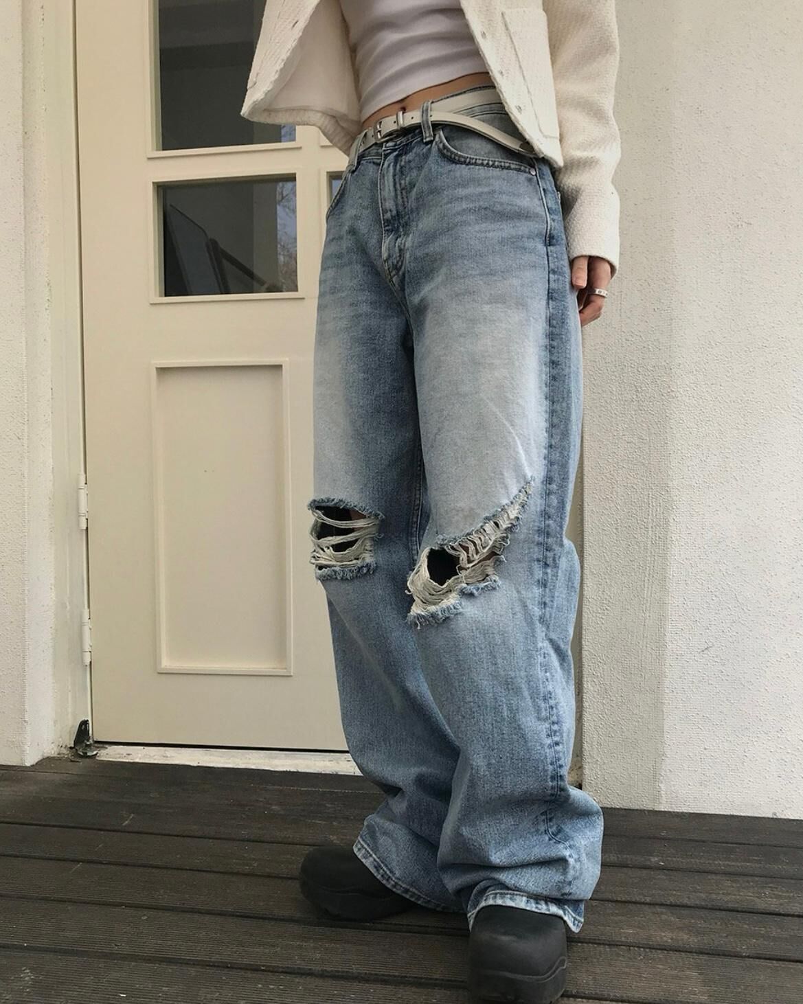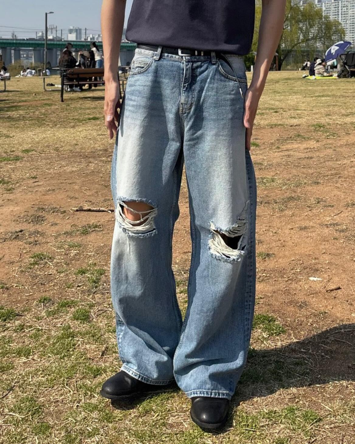 洗水破洞鬆身牛仔褲 WELL DONE-058J
