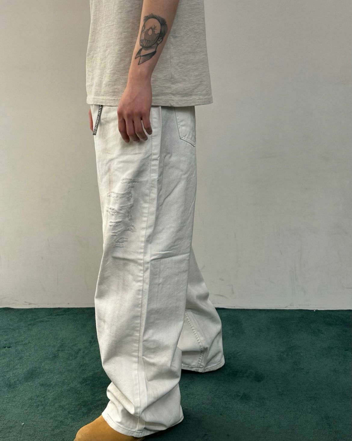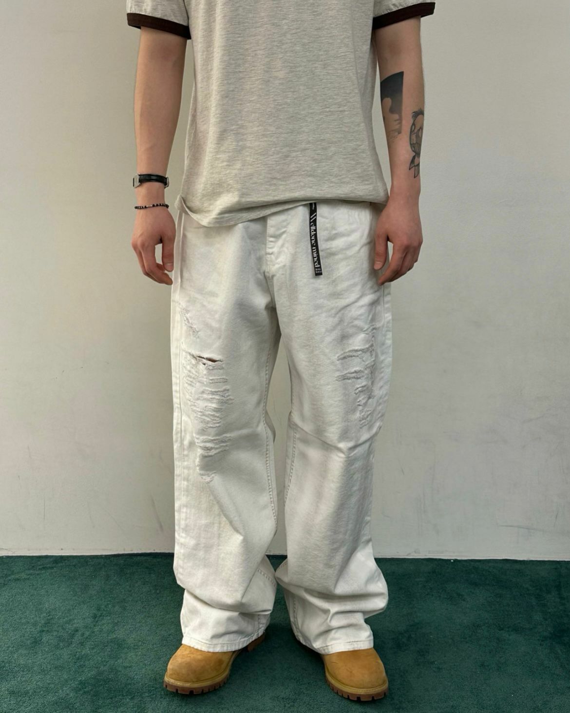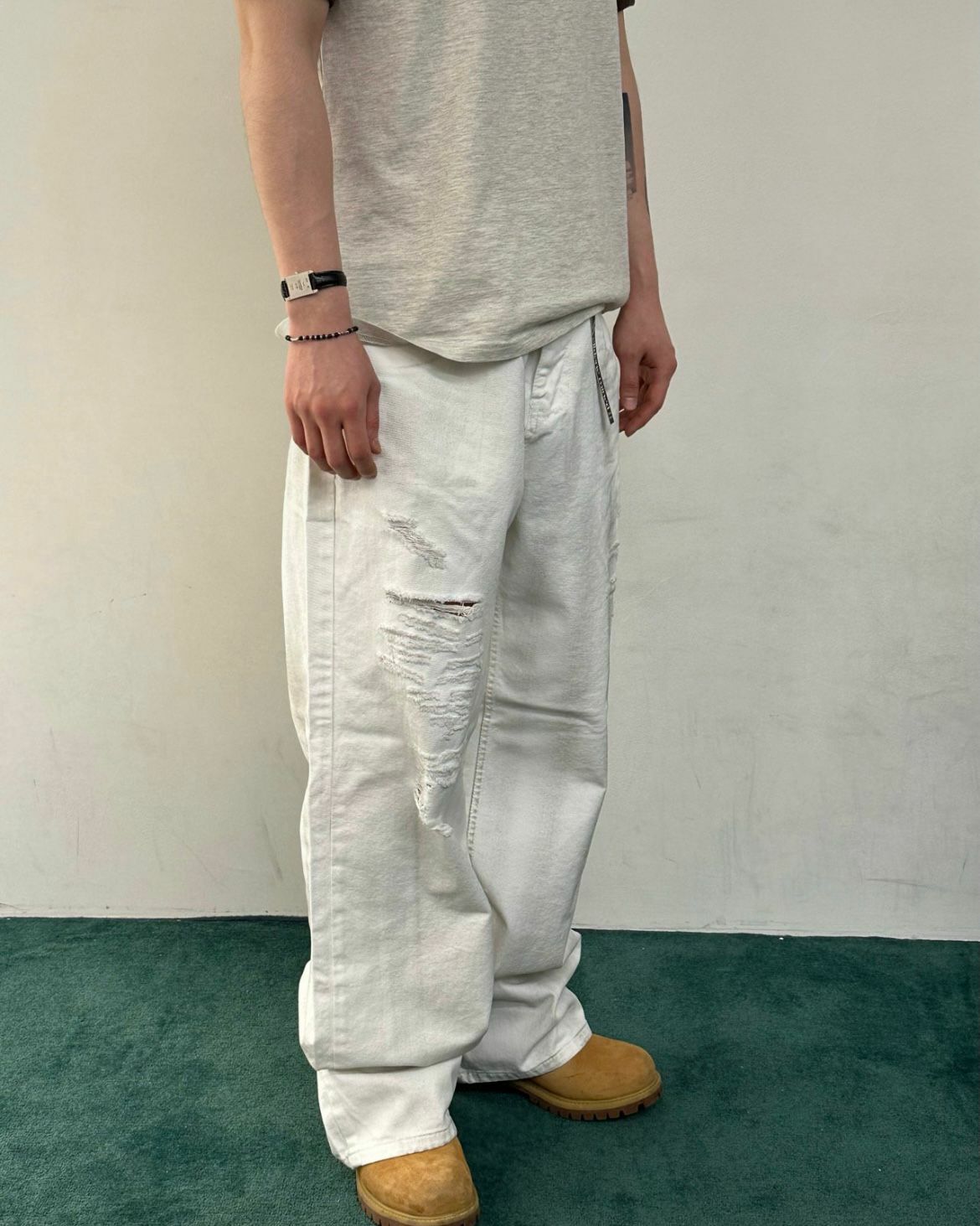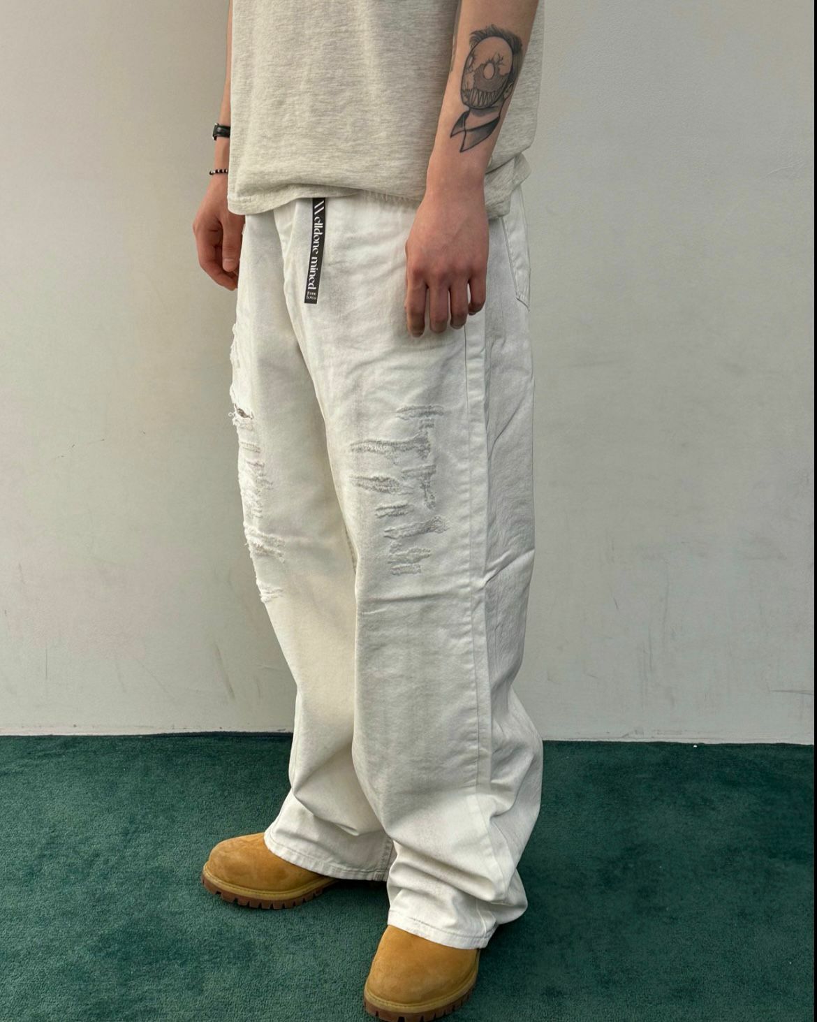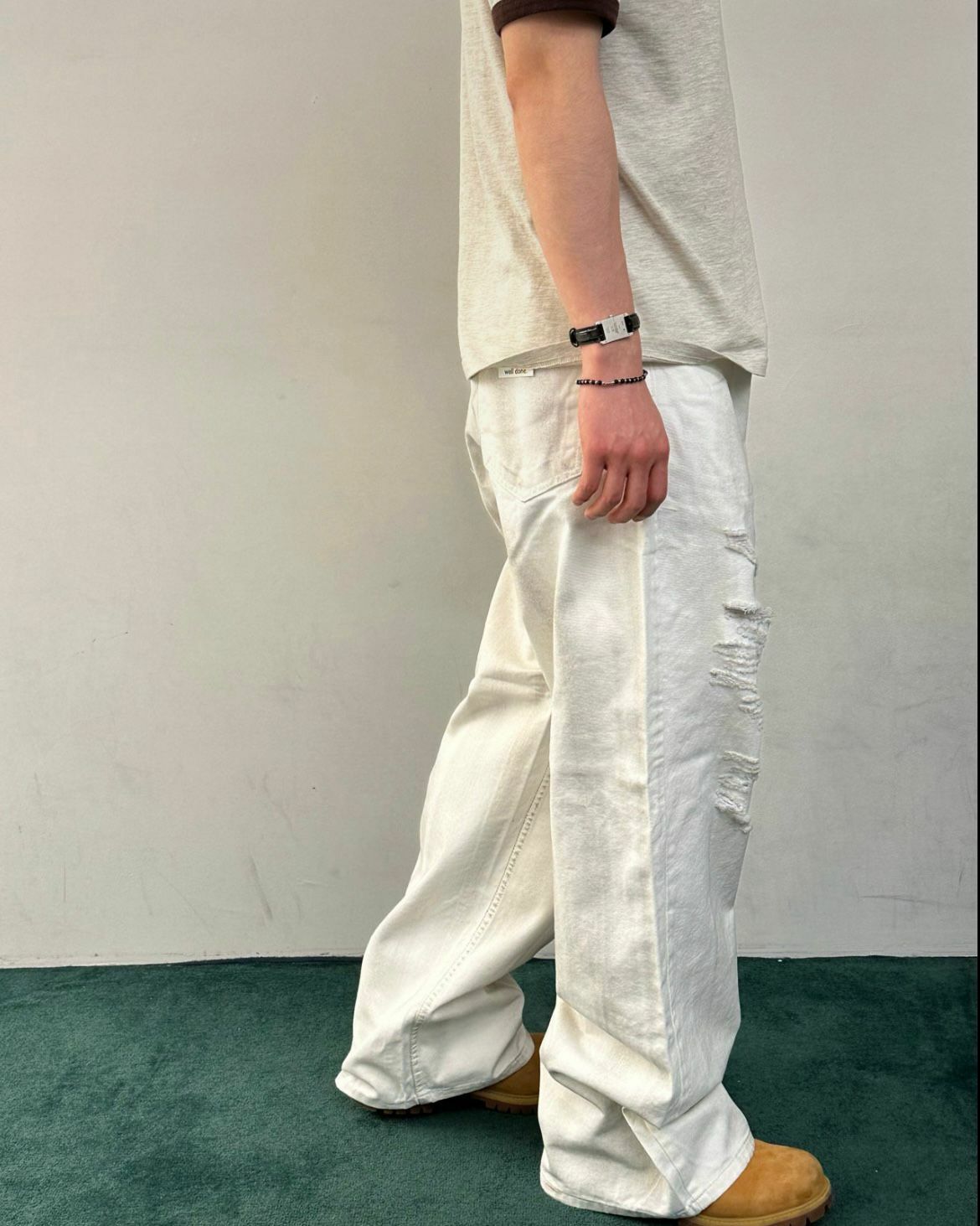 仿污破洞鬆身牛仔褲 WELL DONE-076P