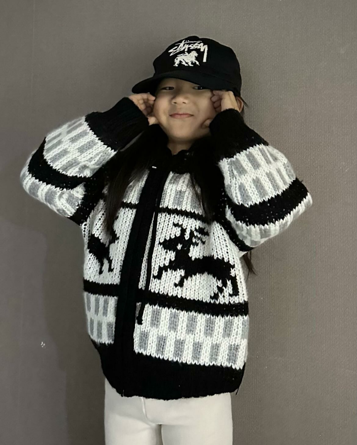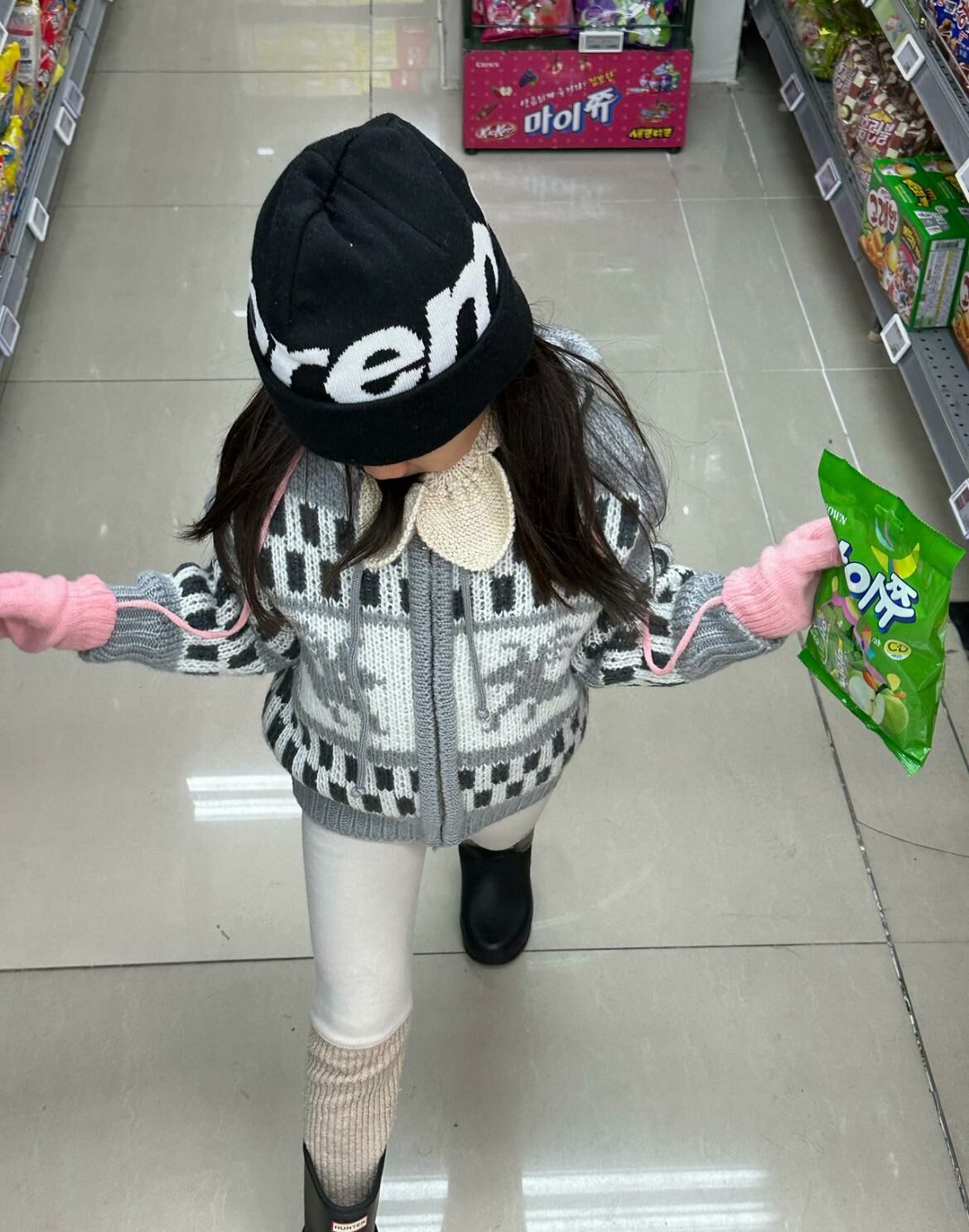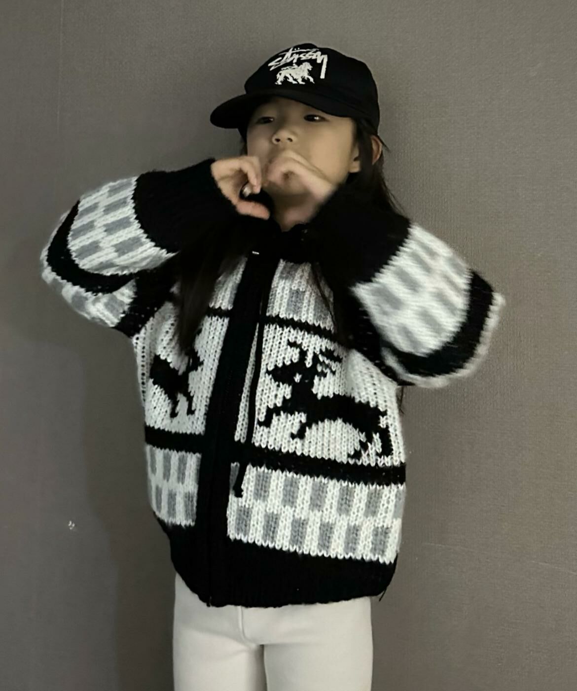 鹿圖案連帽拉鍊針織外套(童裝) WELL DONE-114JK