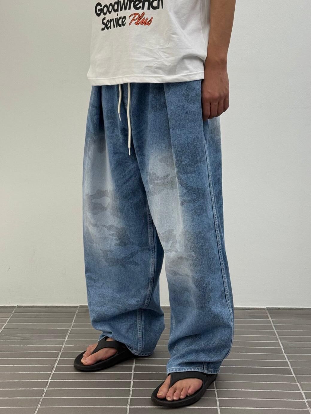 暗迷彩洗水鬆身牛仔褲 WELL DONE-148P