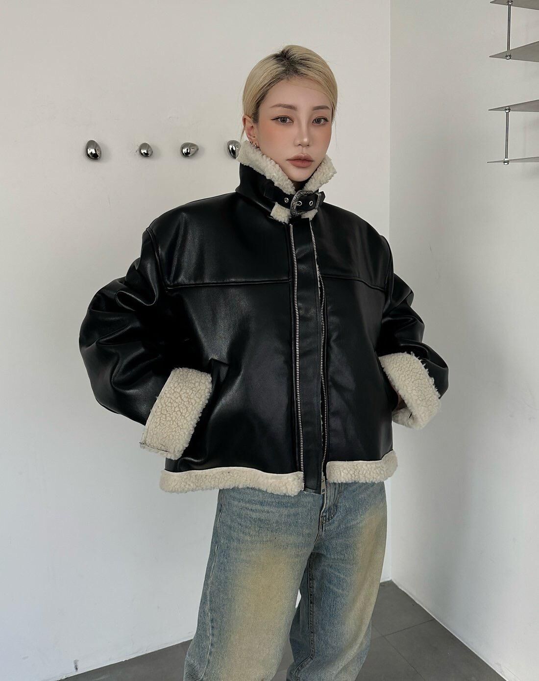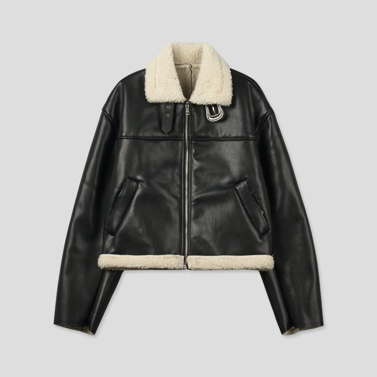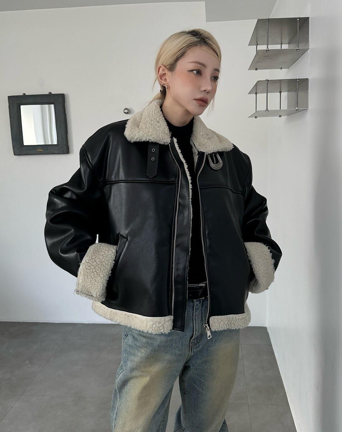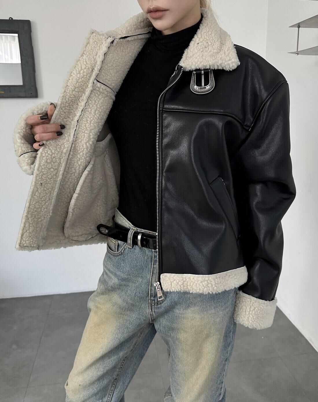 毛毛領拉鍊合成皮褸 1990S-036JK
