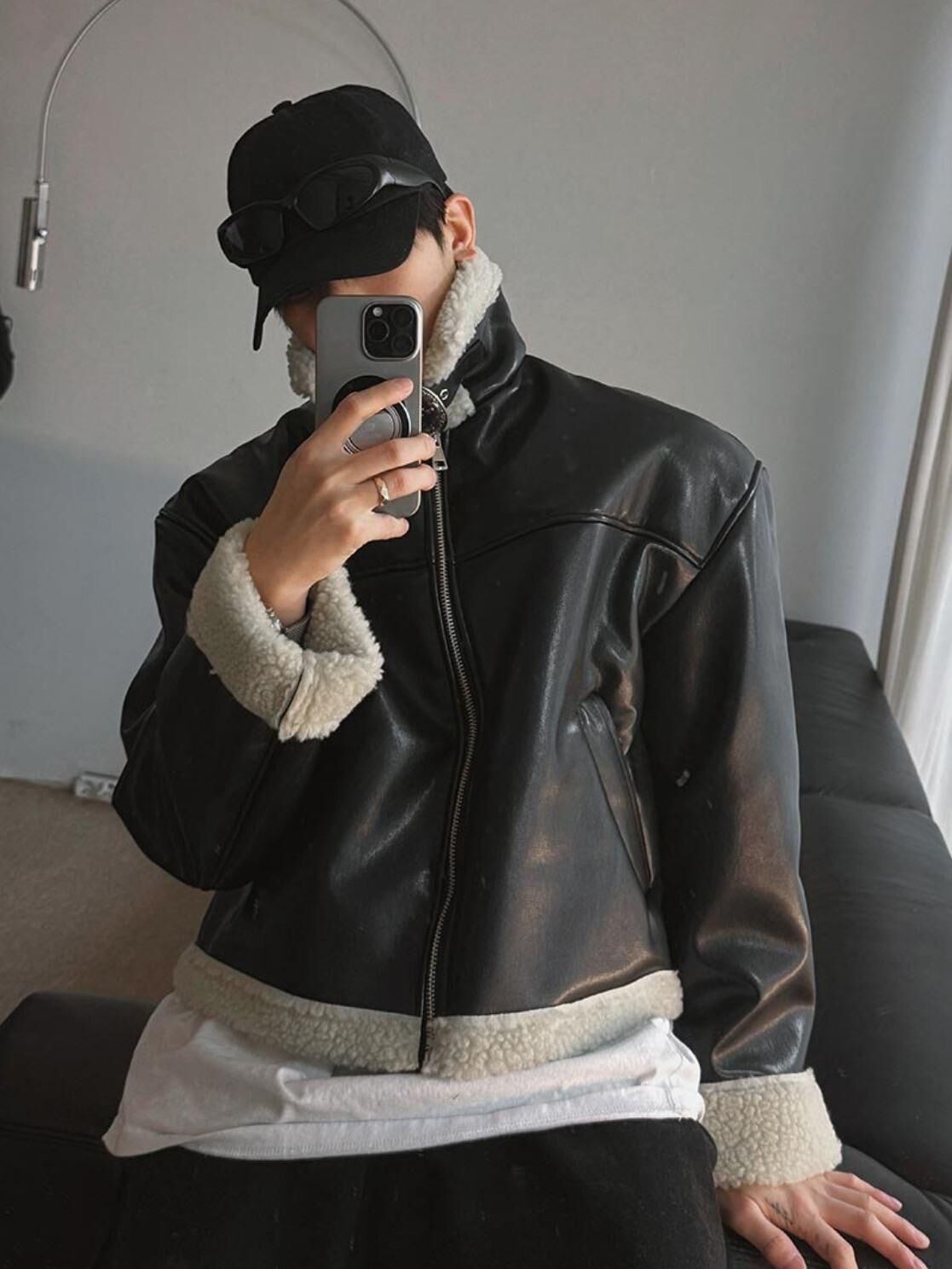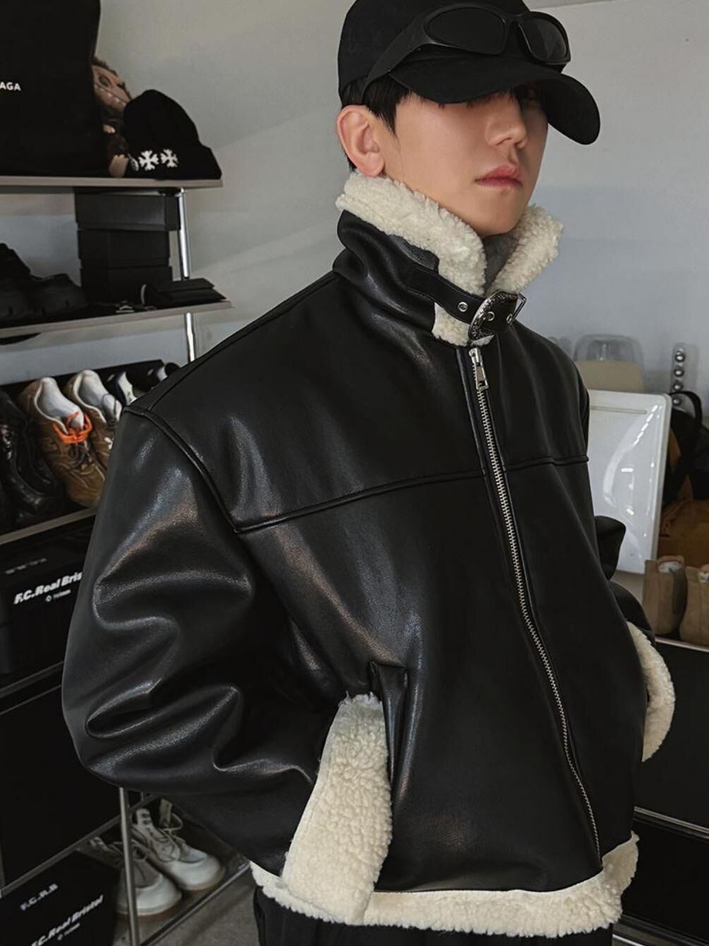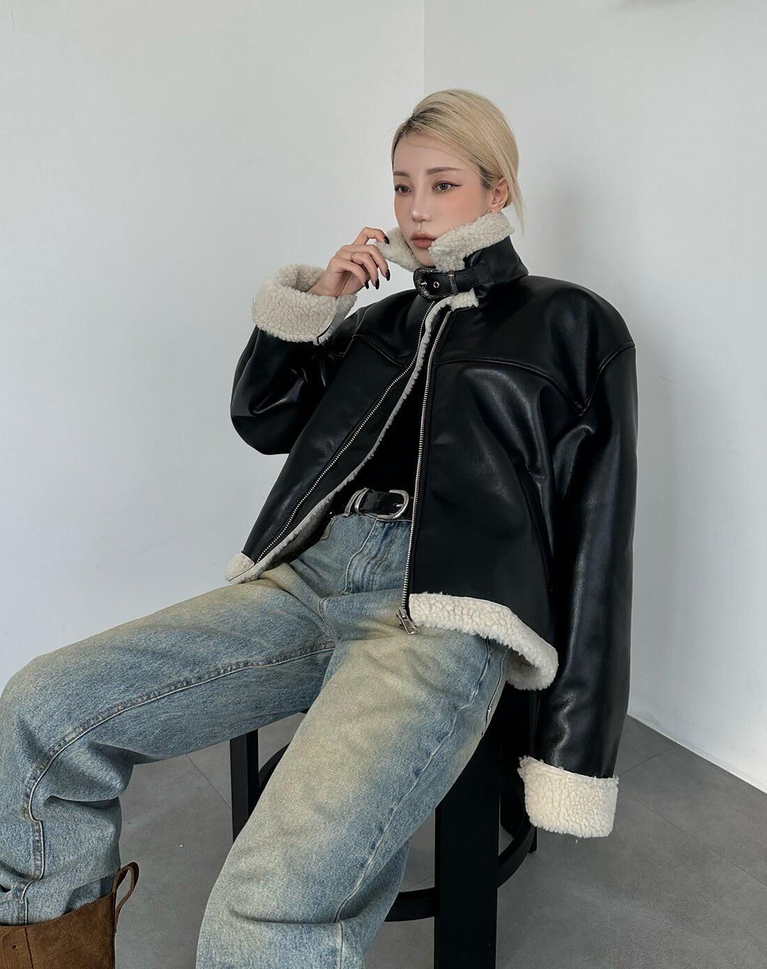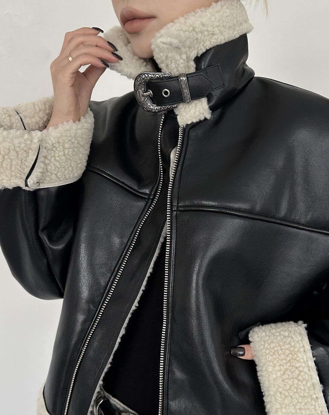 毛毛領拉鍊合成皮褸 1990S-036JK