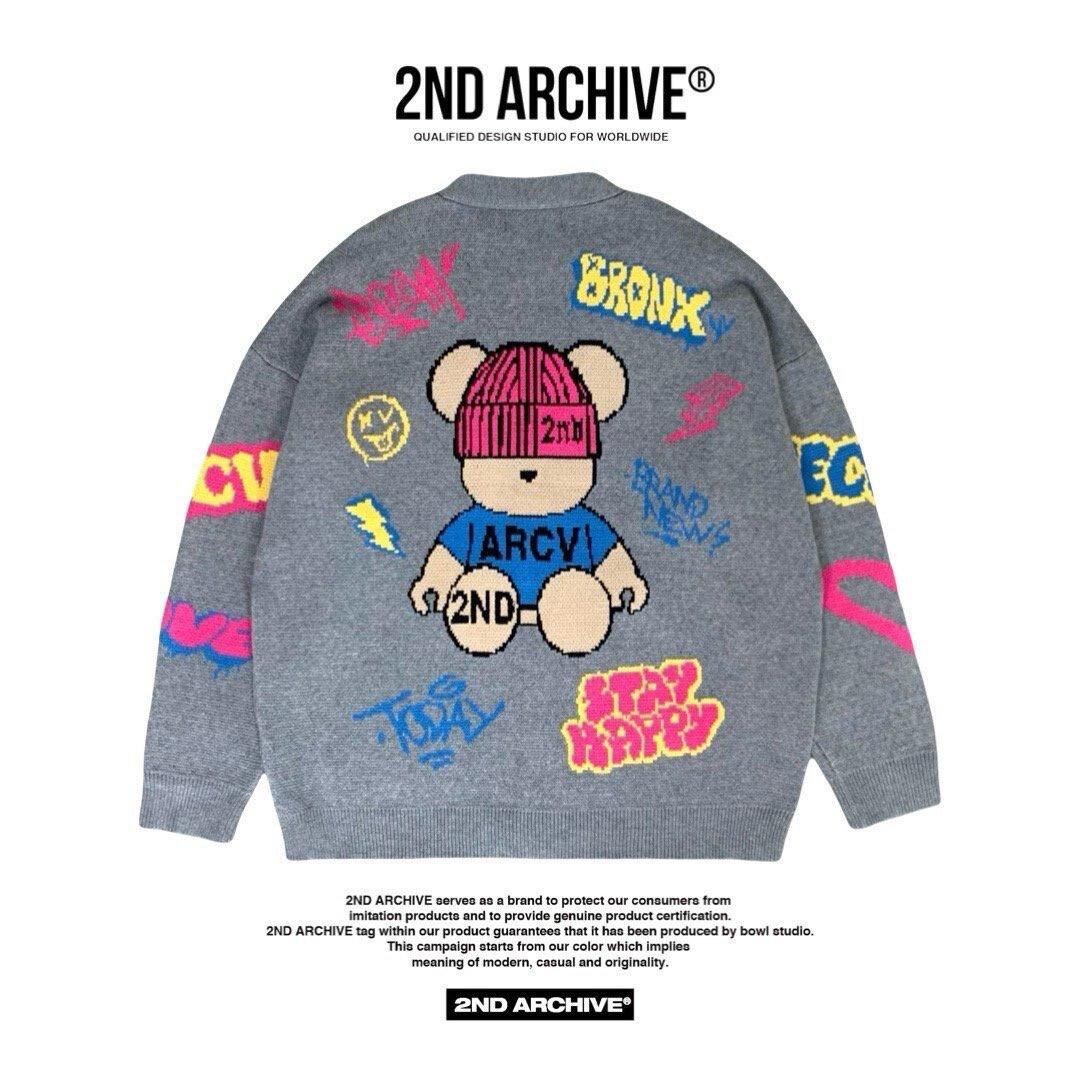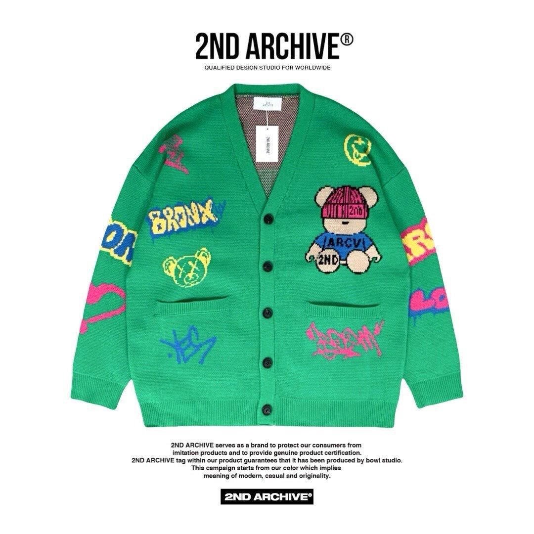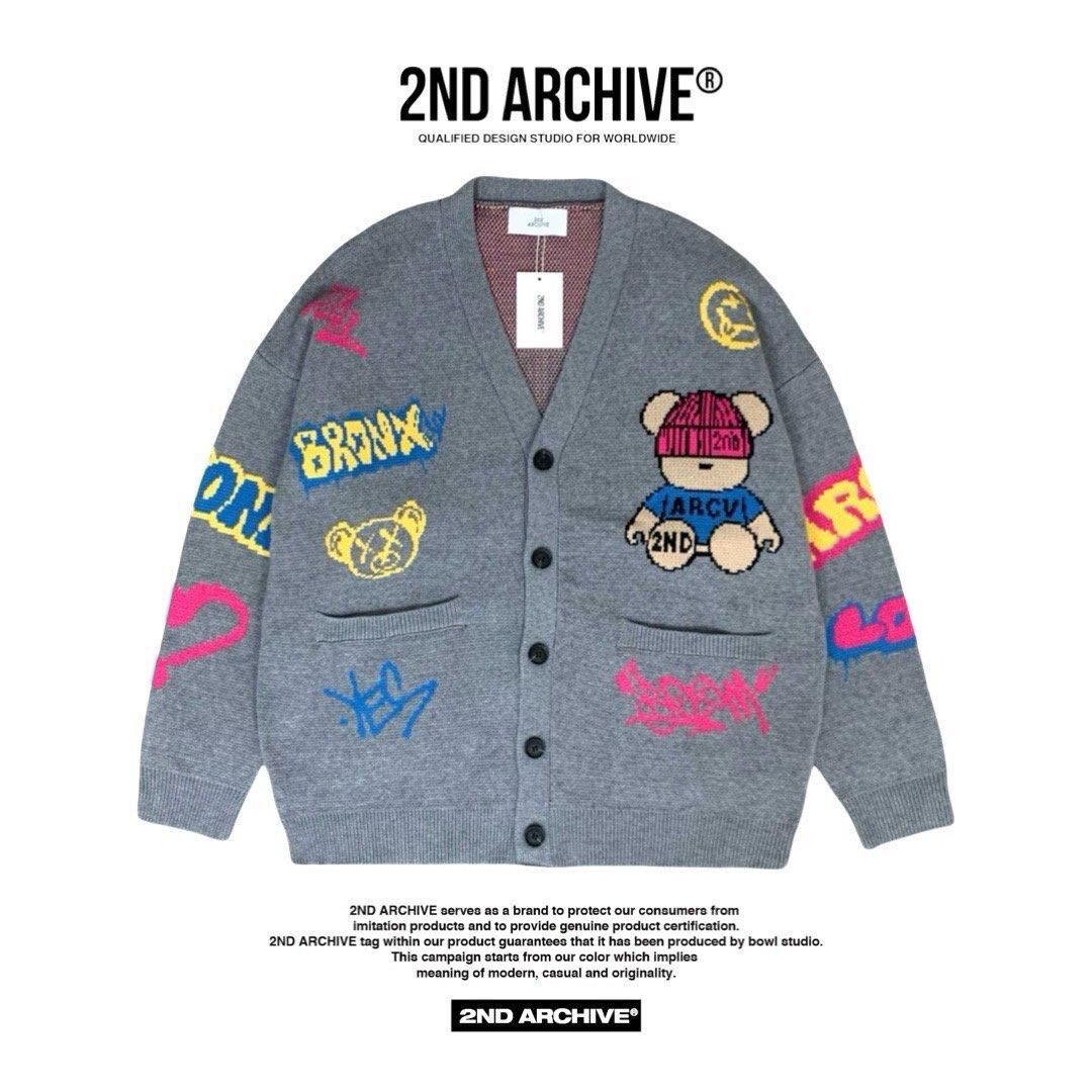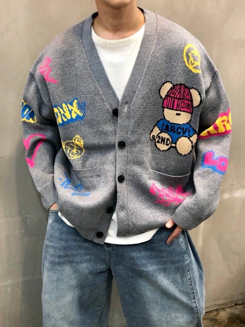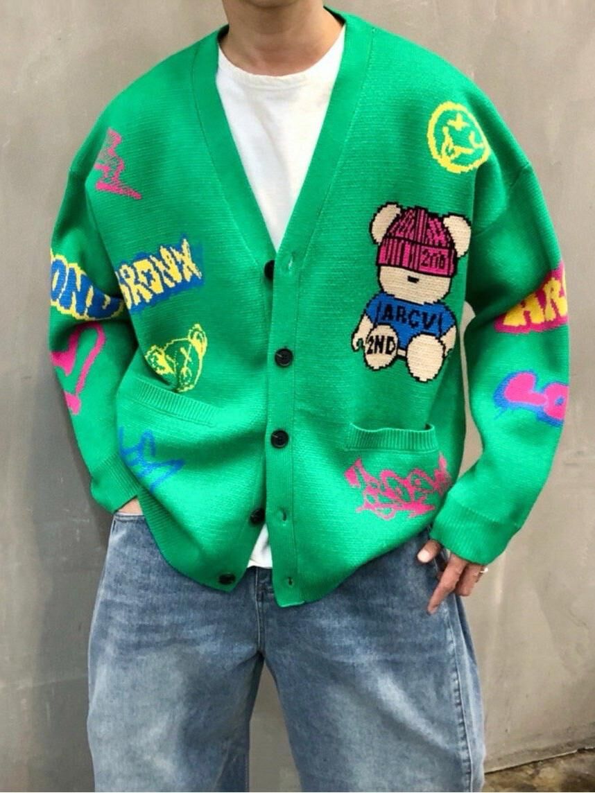 熊仔圖案英文字開胸針織外套 2nd-295JK
