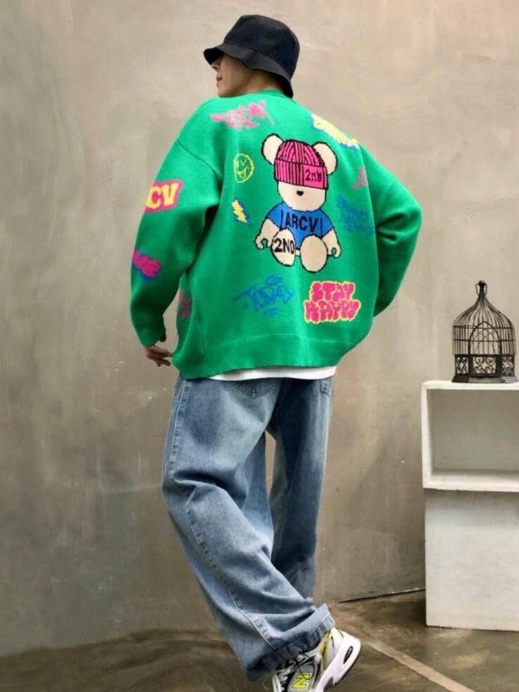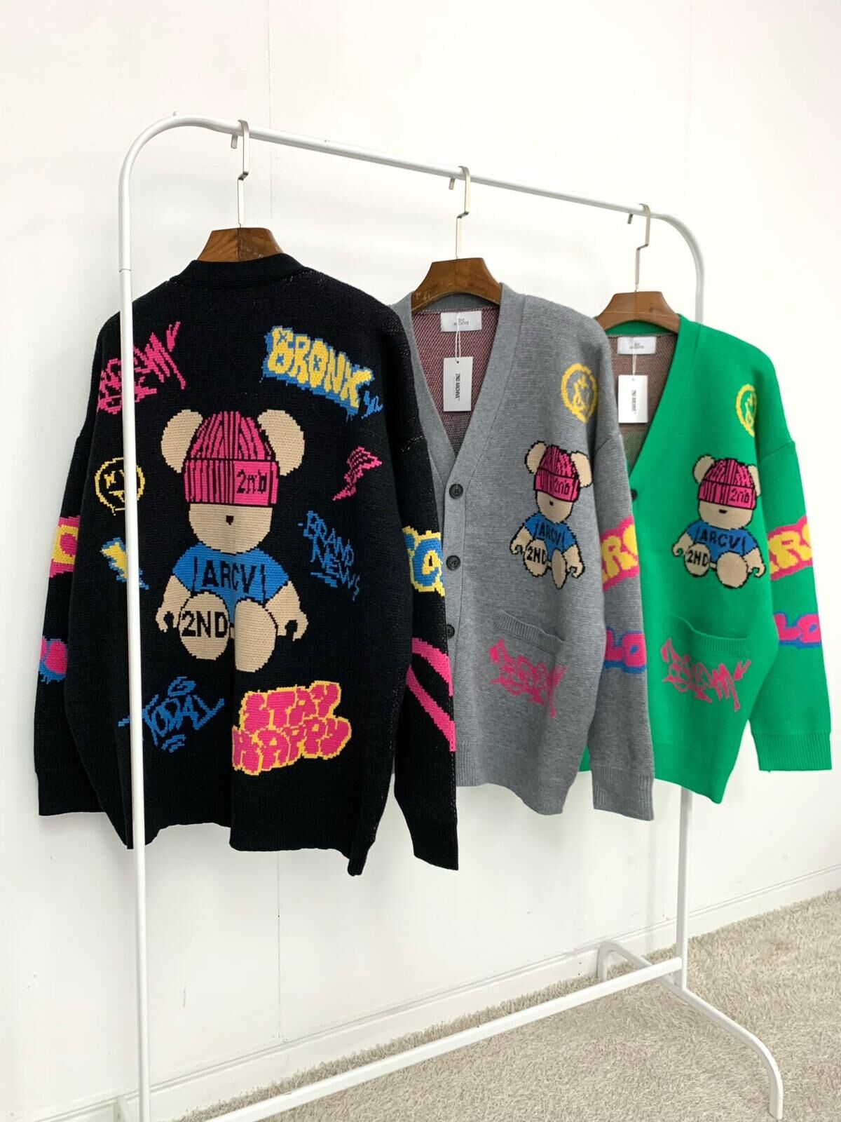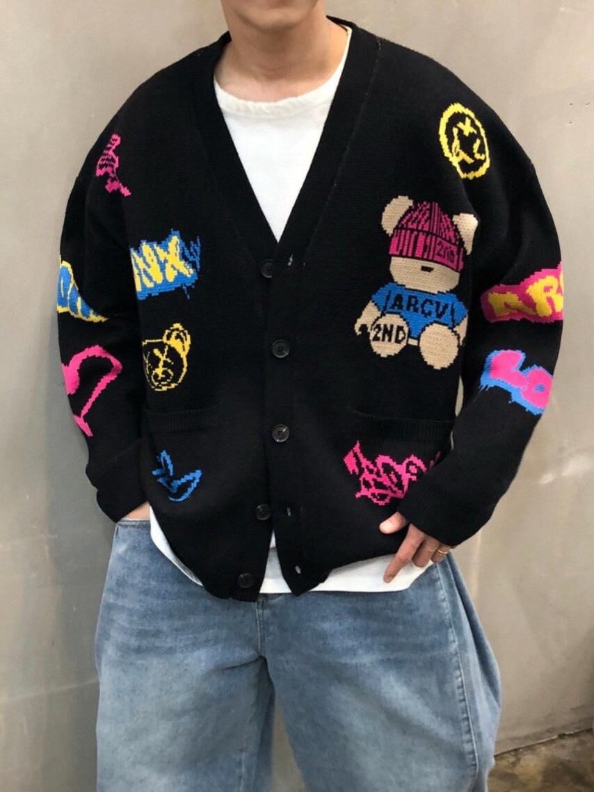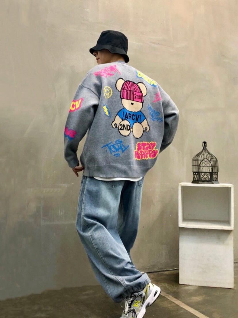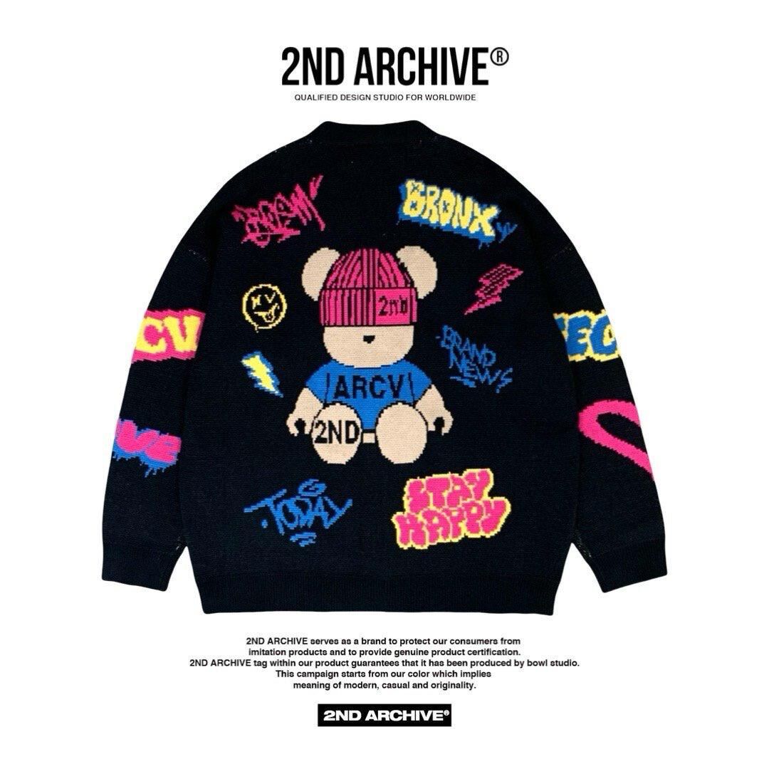 熊仔圖案英文字開胸針織外套 2nd-295JK