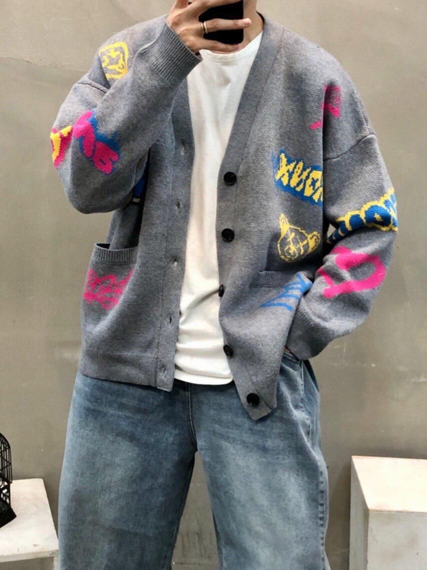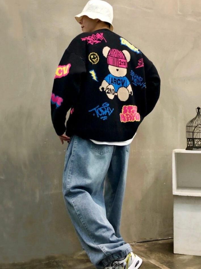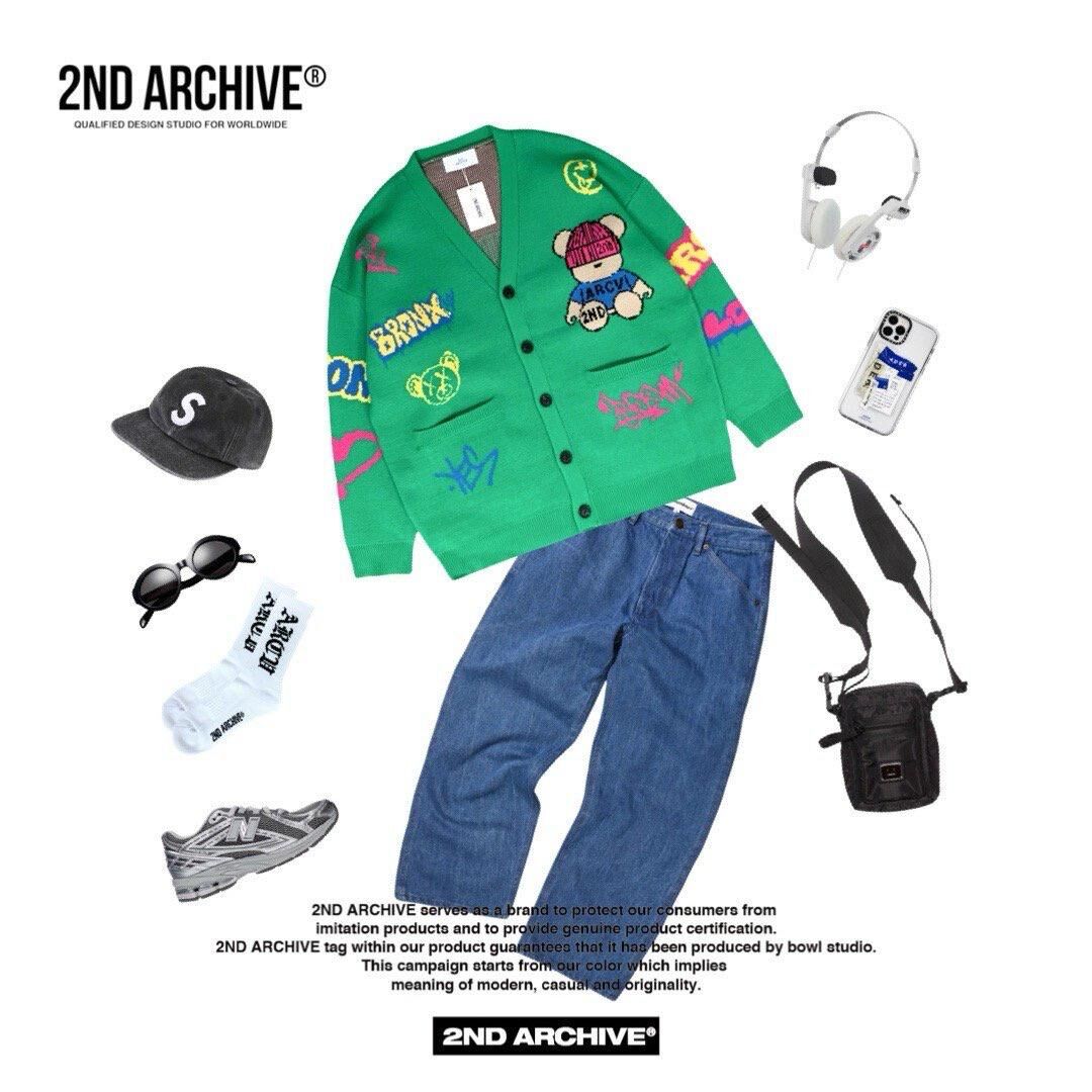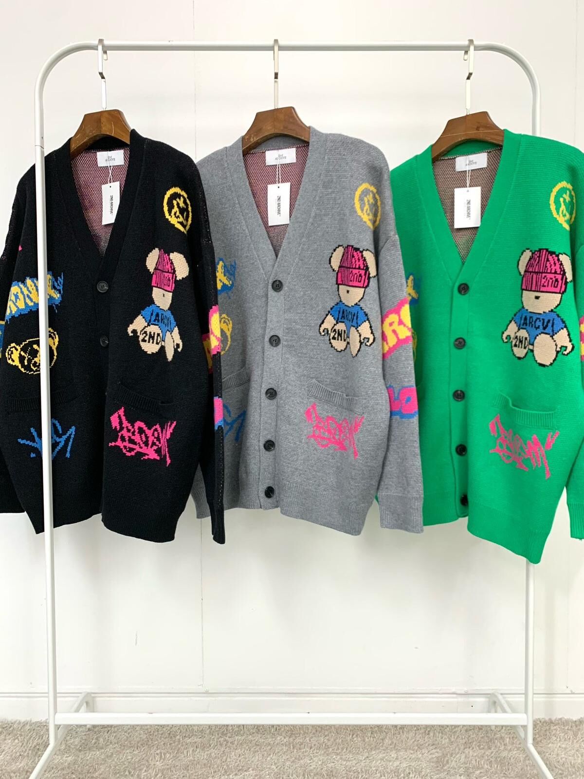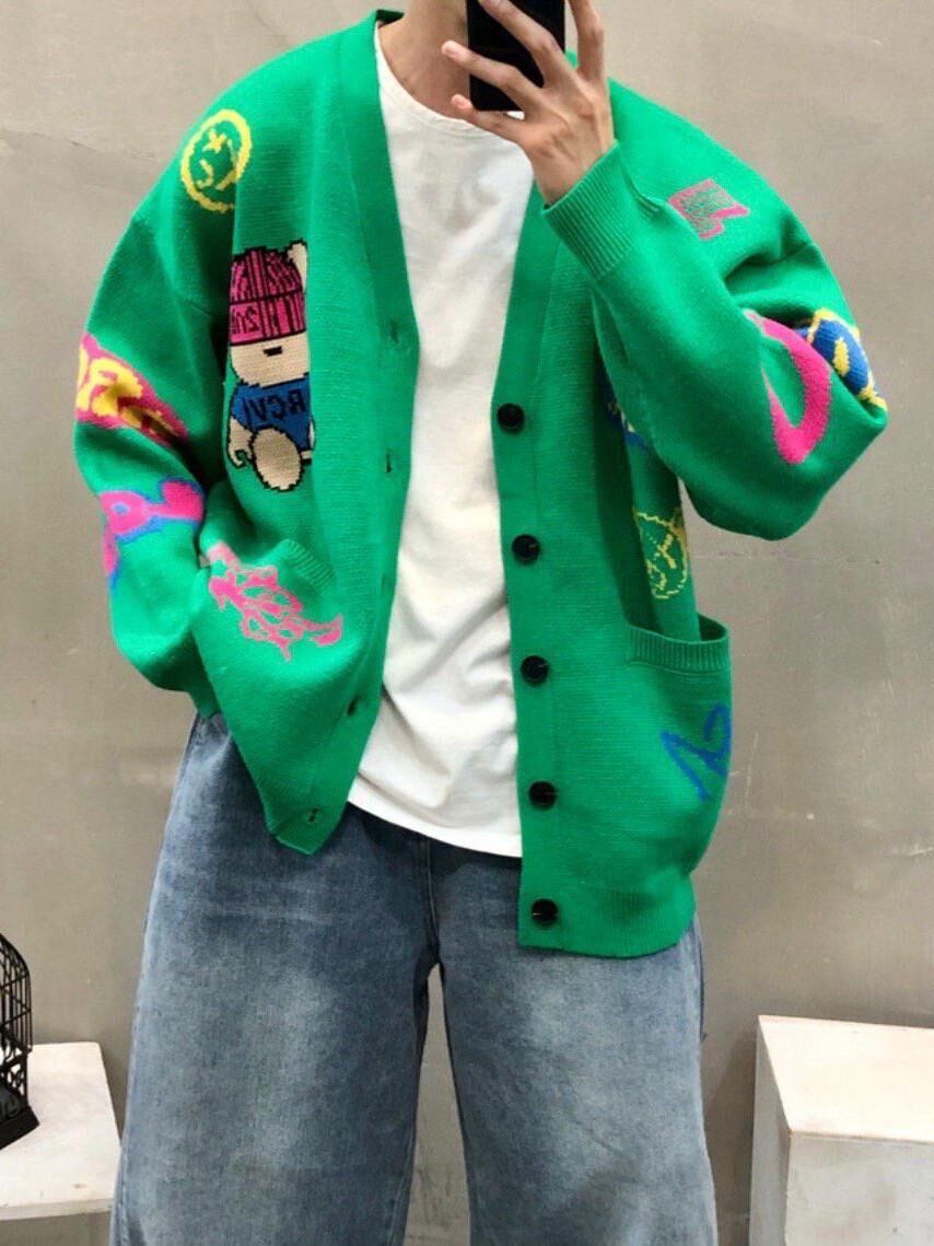 熊仔圖案英文字開胸針織外套 2nd-295JK