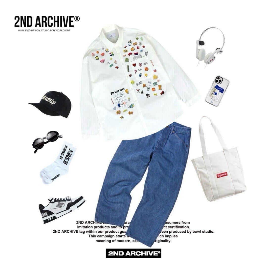 英文字圖案長袖恤衫 2nd-296S
