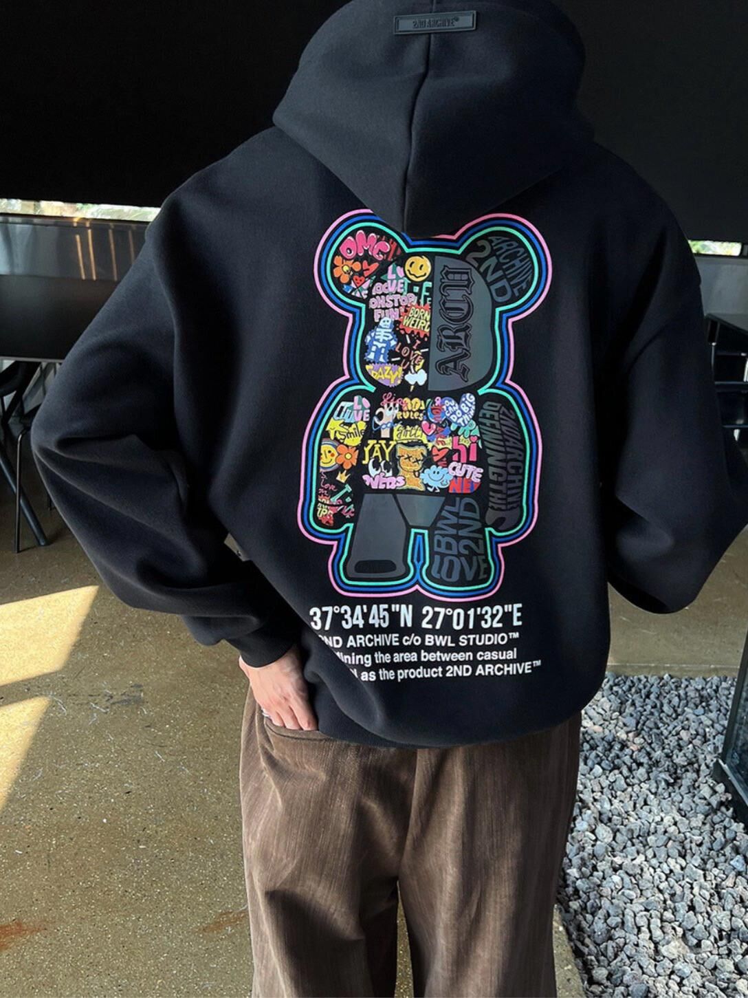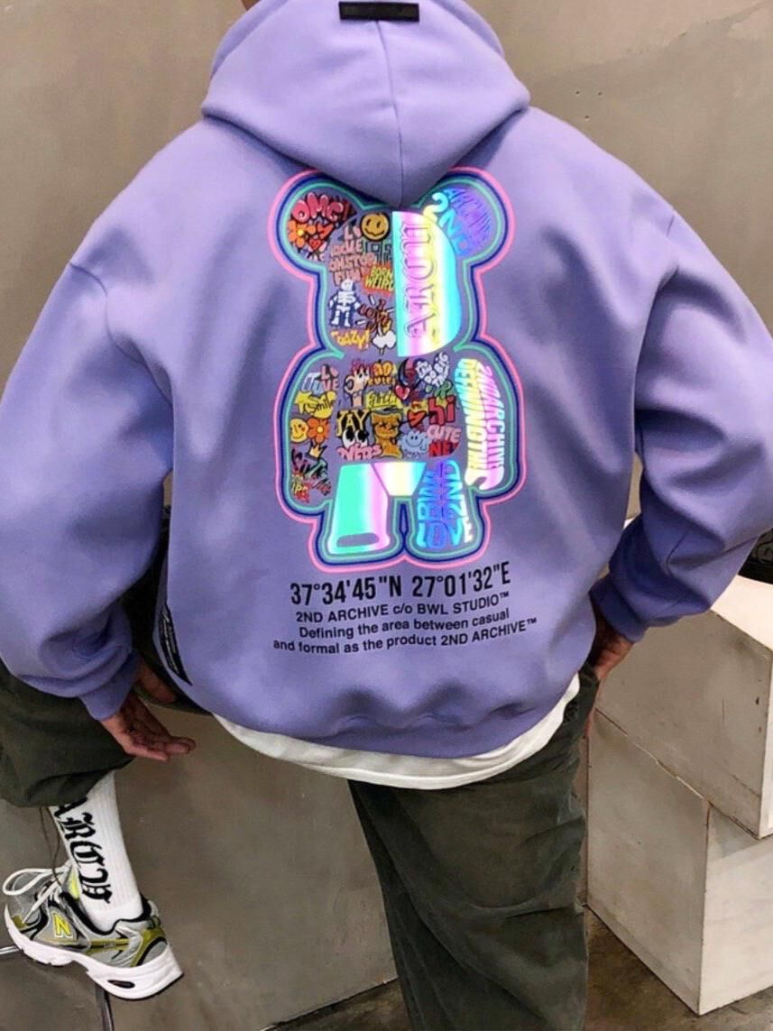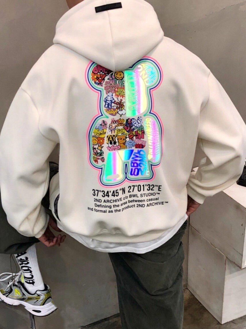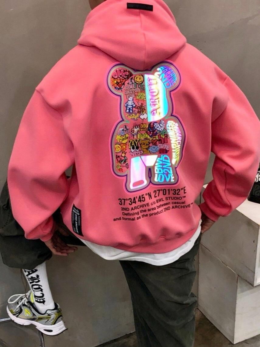 3M反光熊仔圖案英文字連帽衛衣 2nd-297T