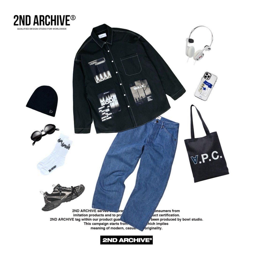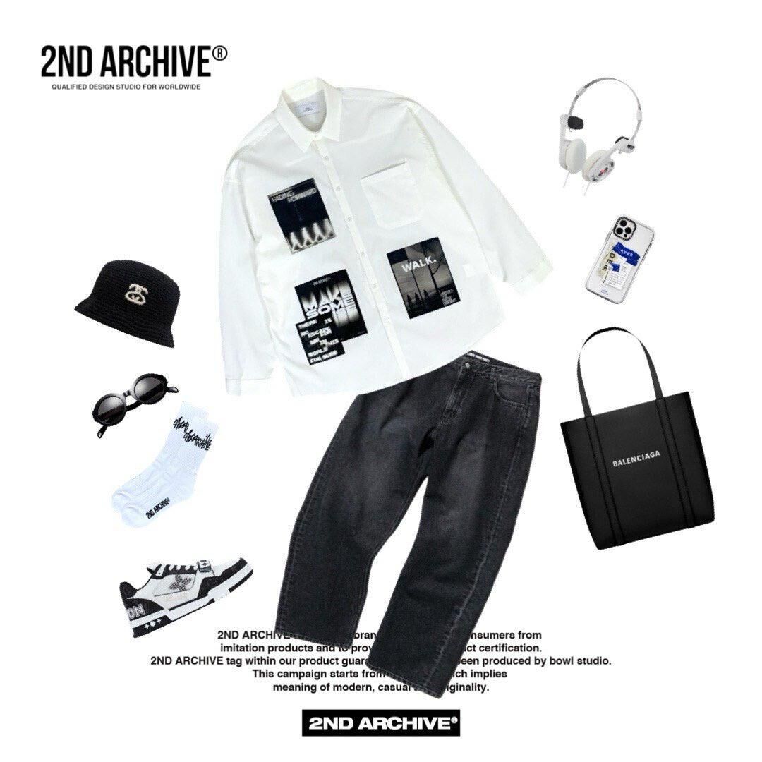 英文字圖案長袖恤衫 2nd-307S