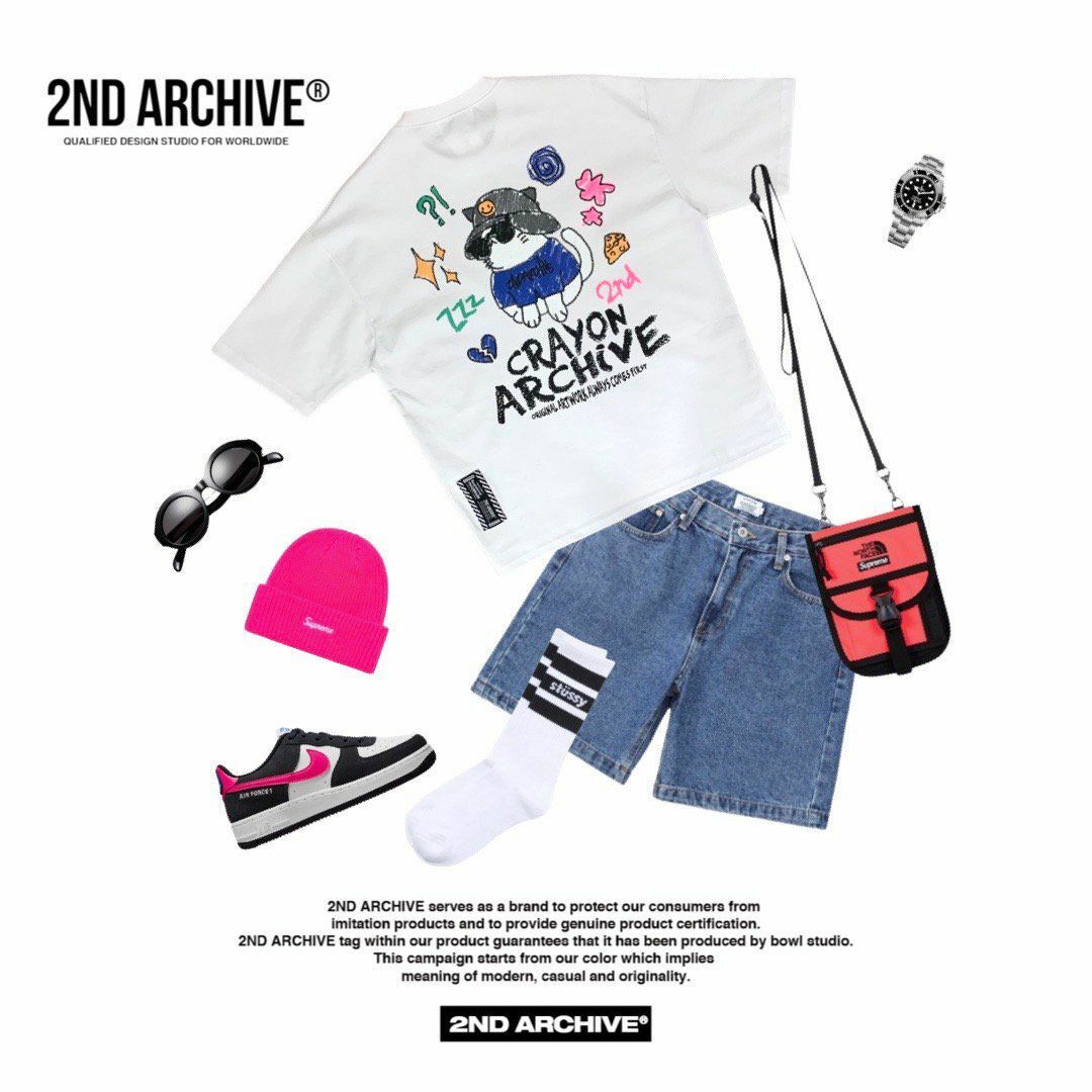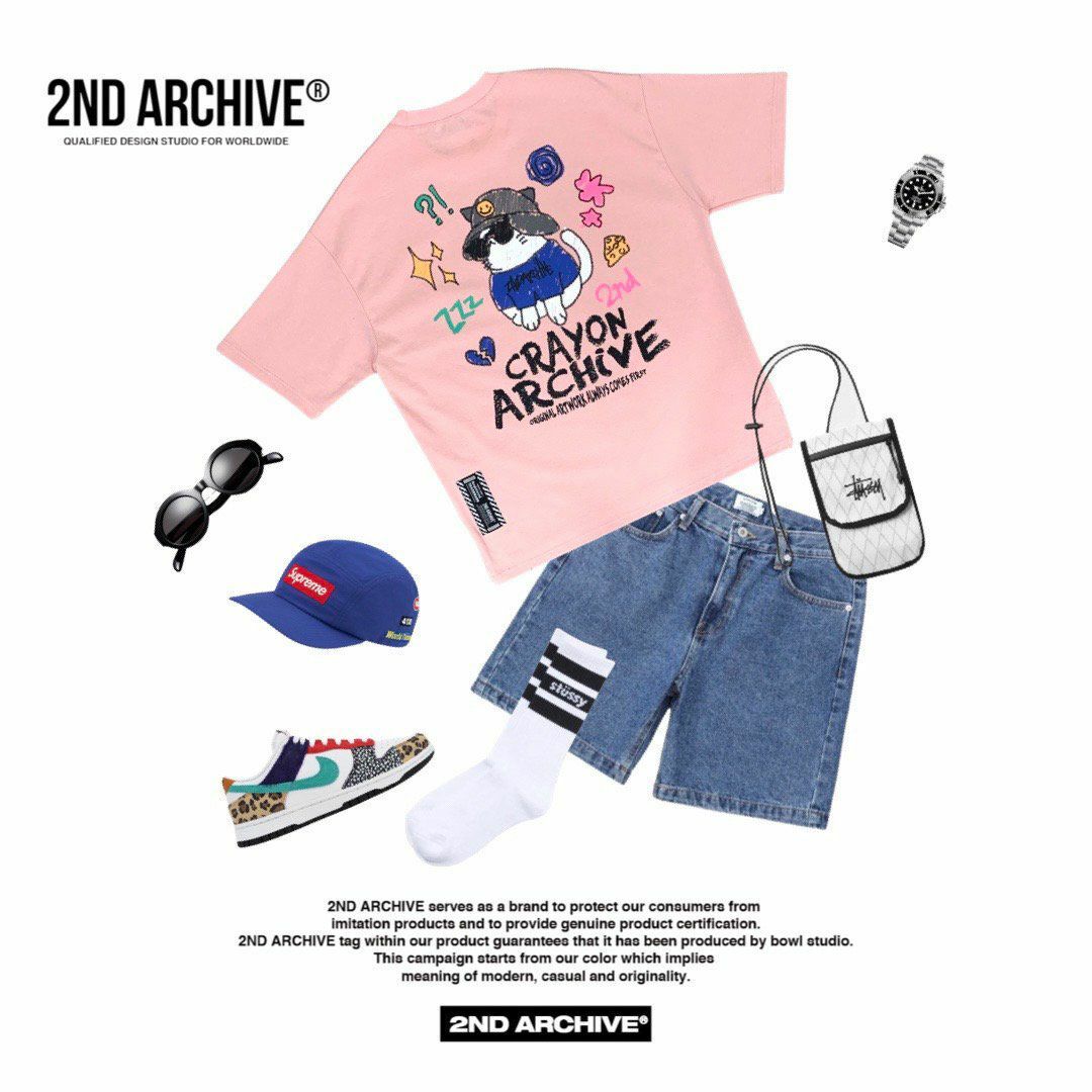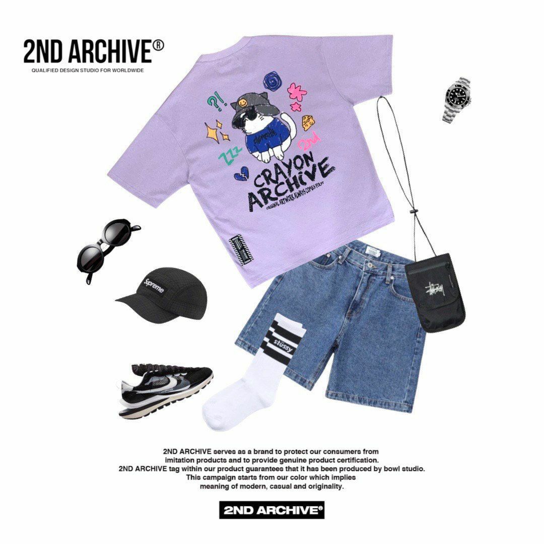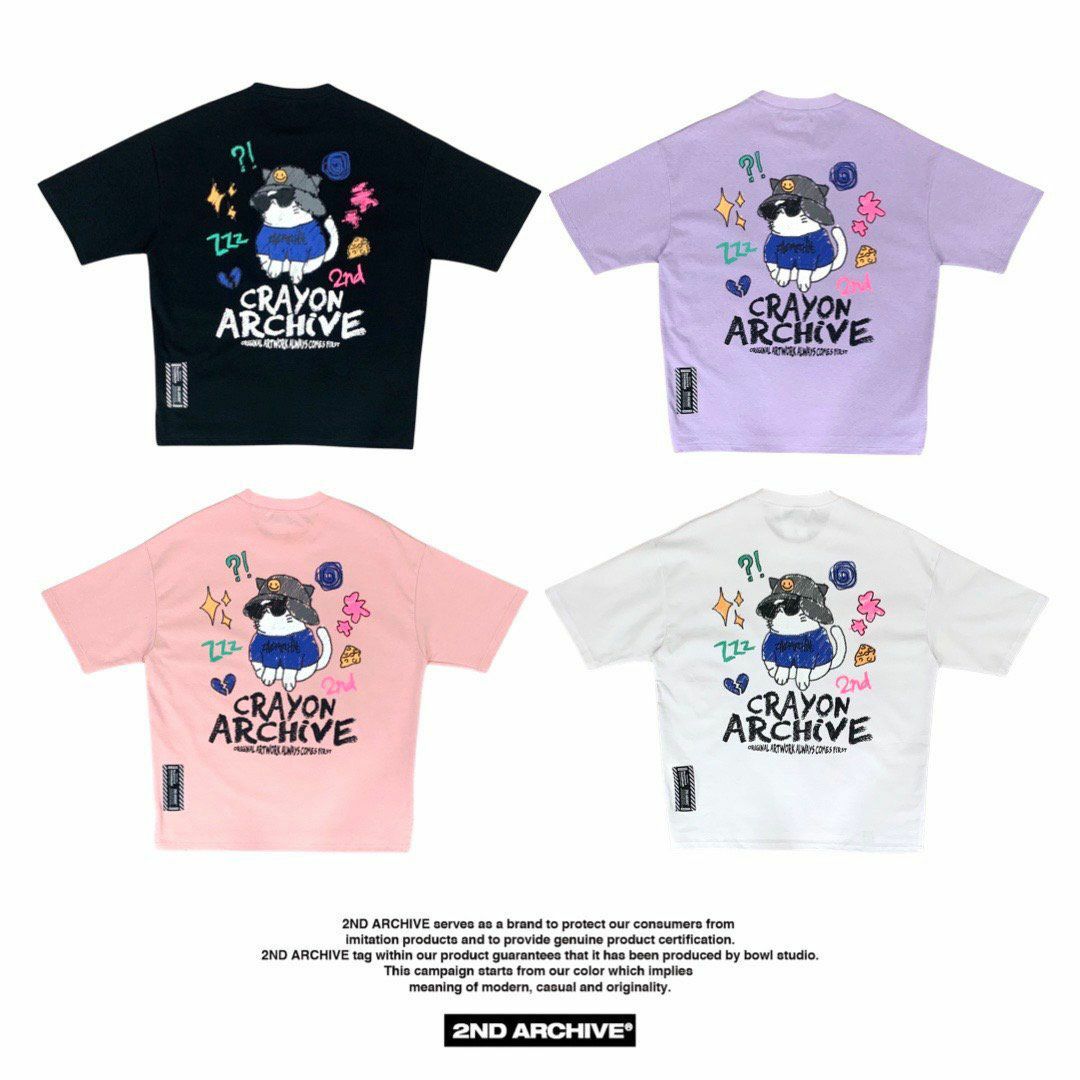 貓仔圖案英文字短袖Tee 2nd ARCHIVE-110T