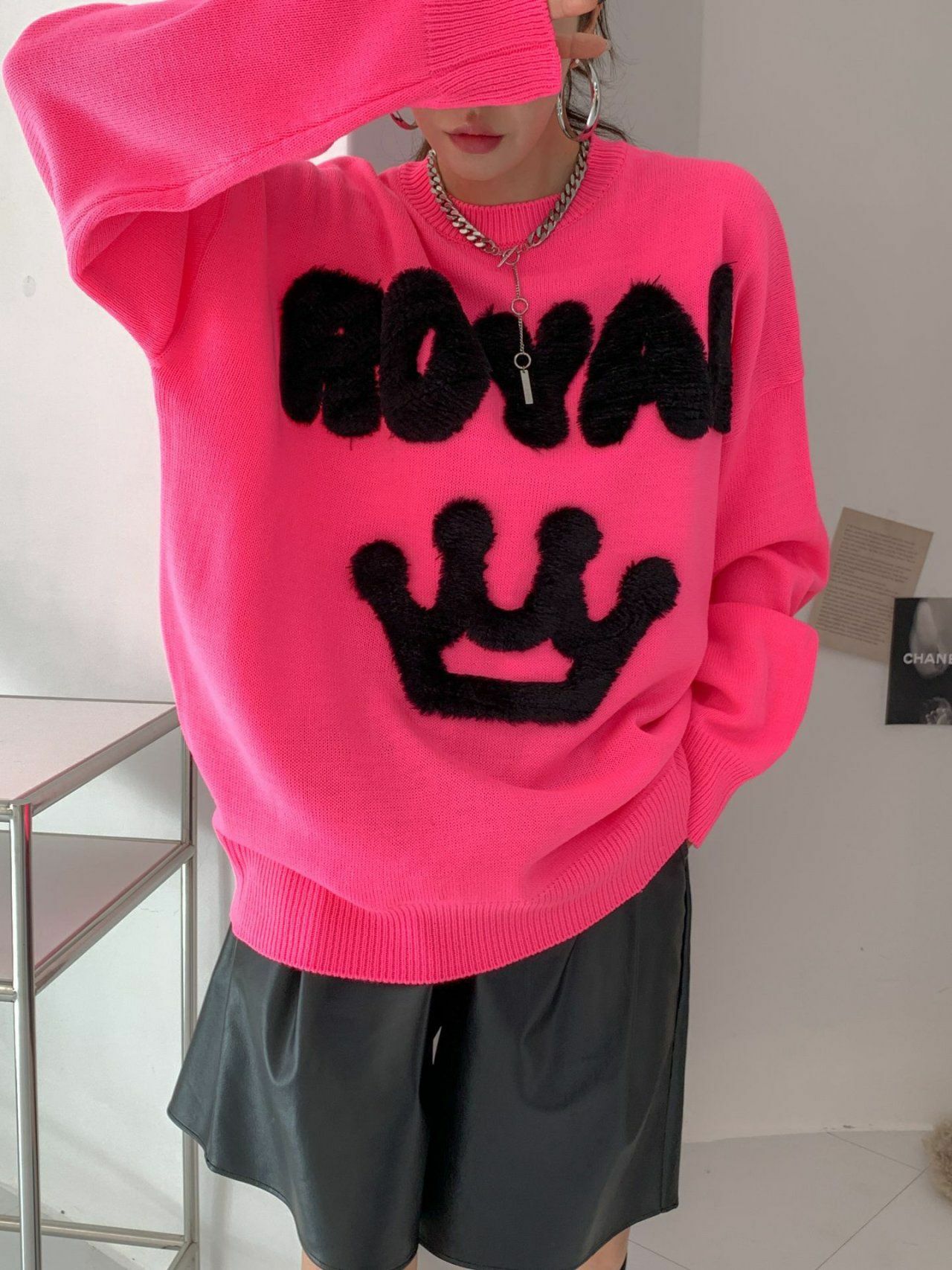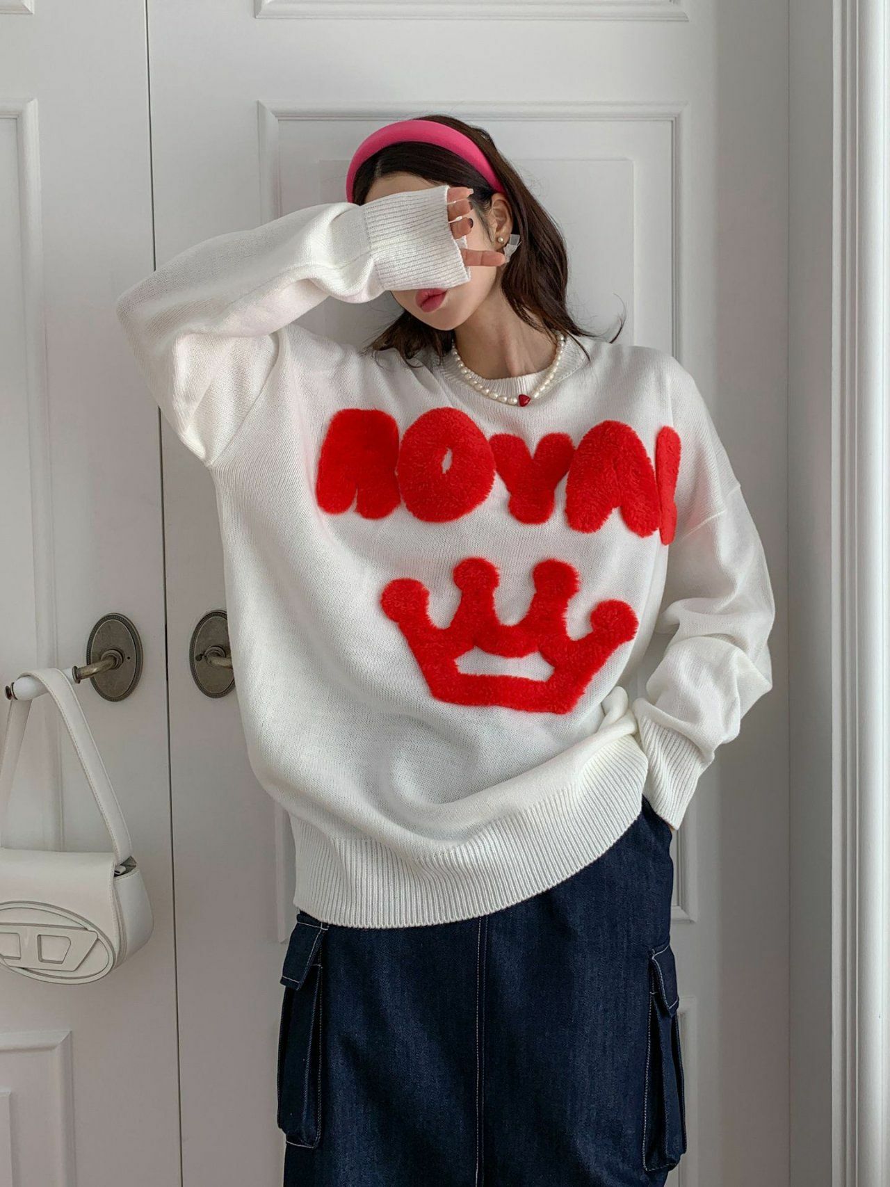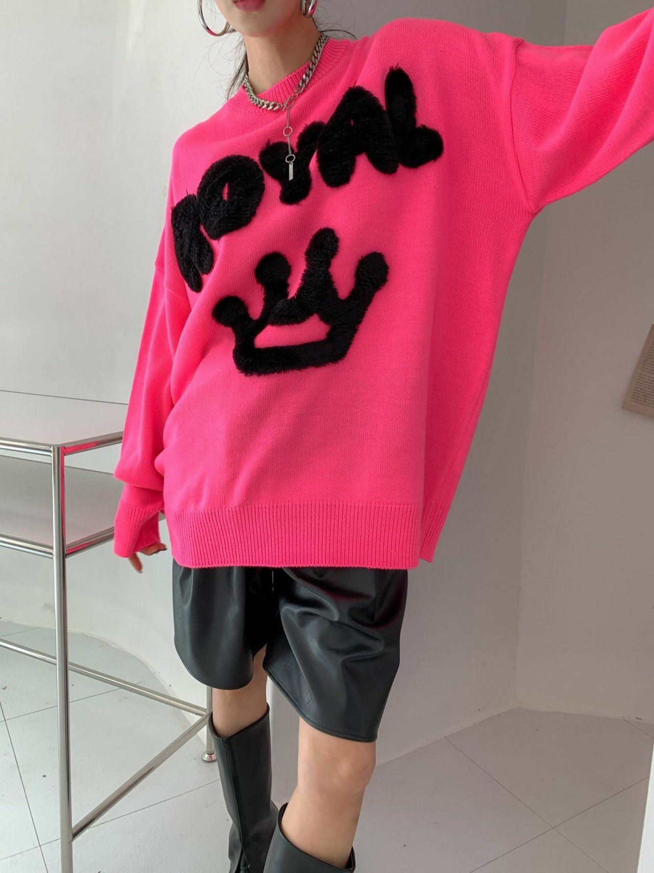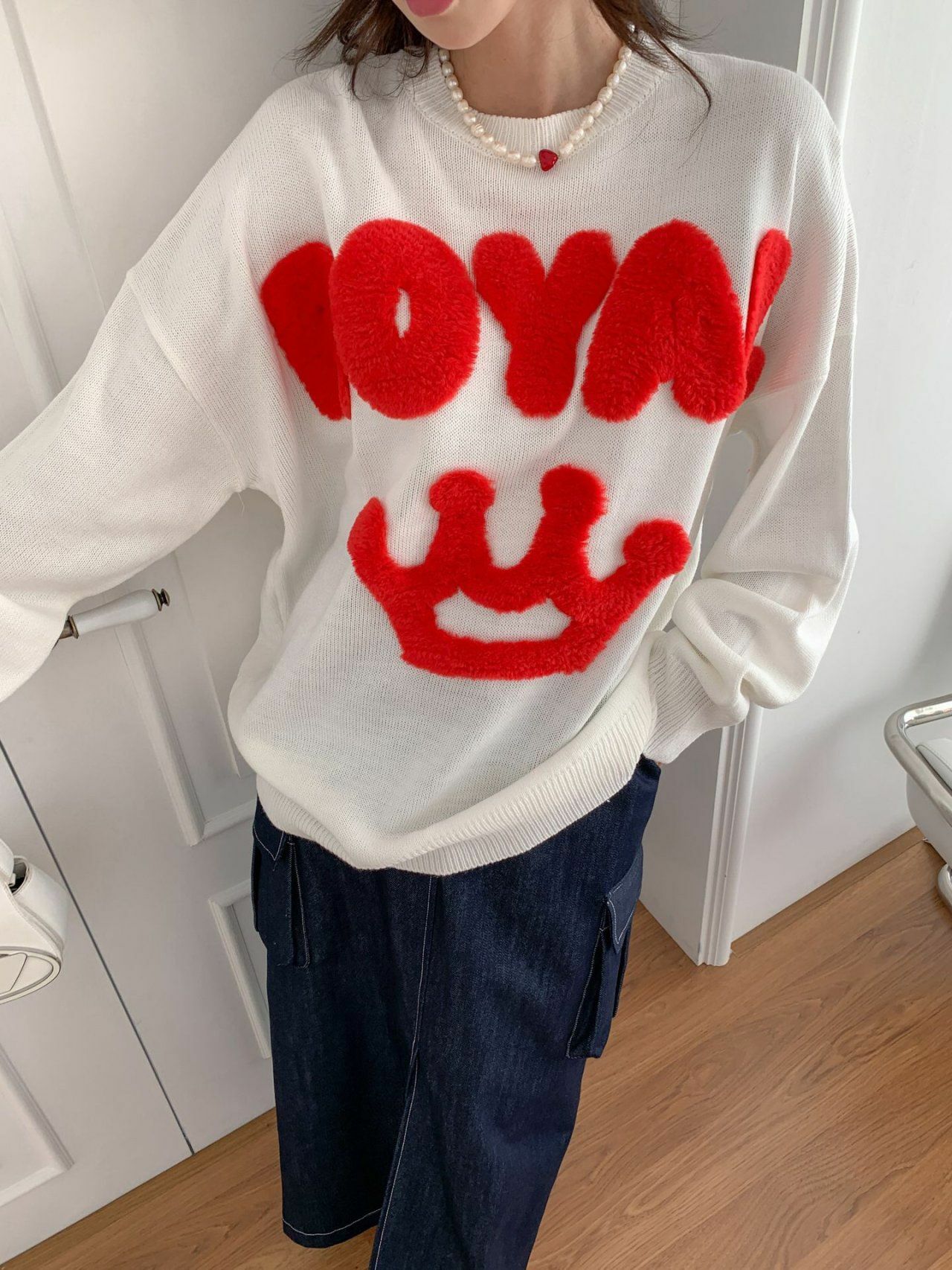 圓領英文字圖案針織衫 3.14-023T