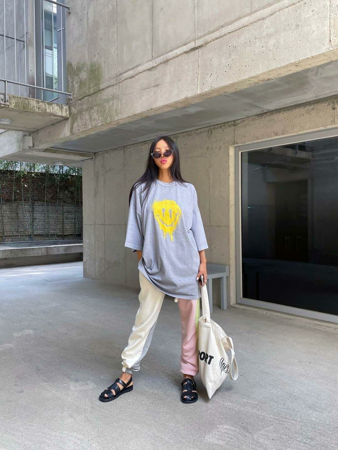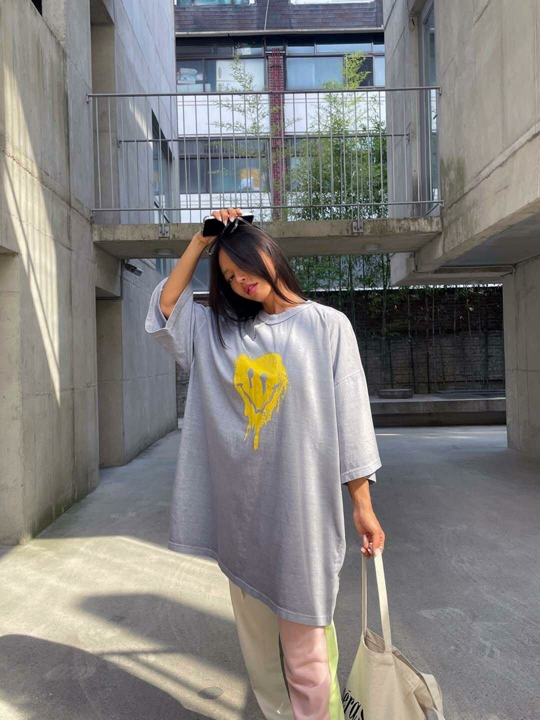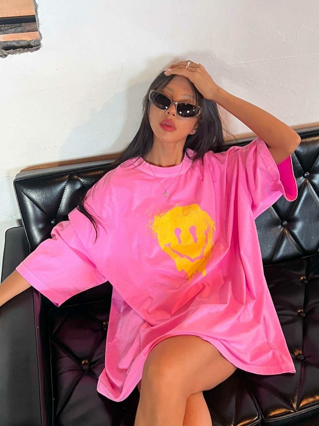 OverSize哈哈笑圖案字短袖Tee 3.14-042T